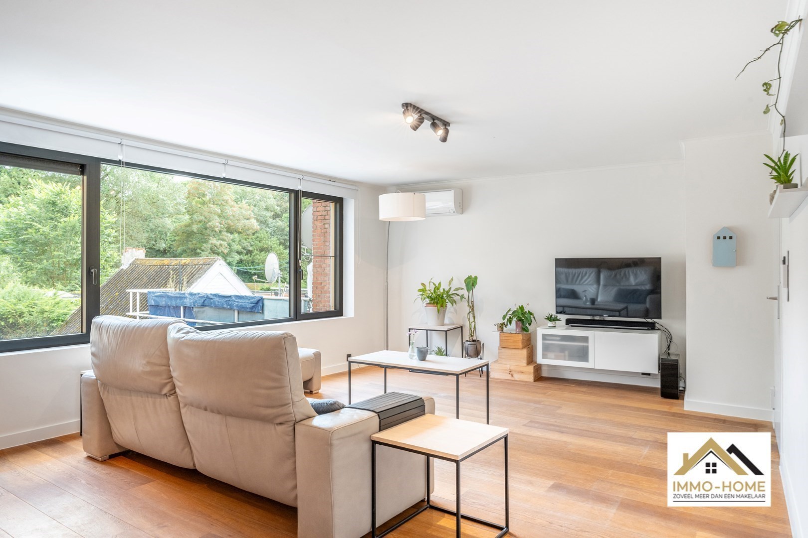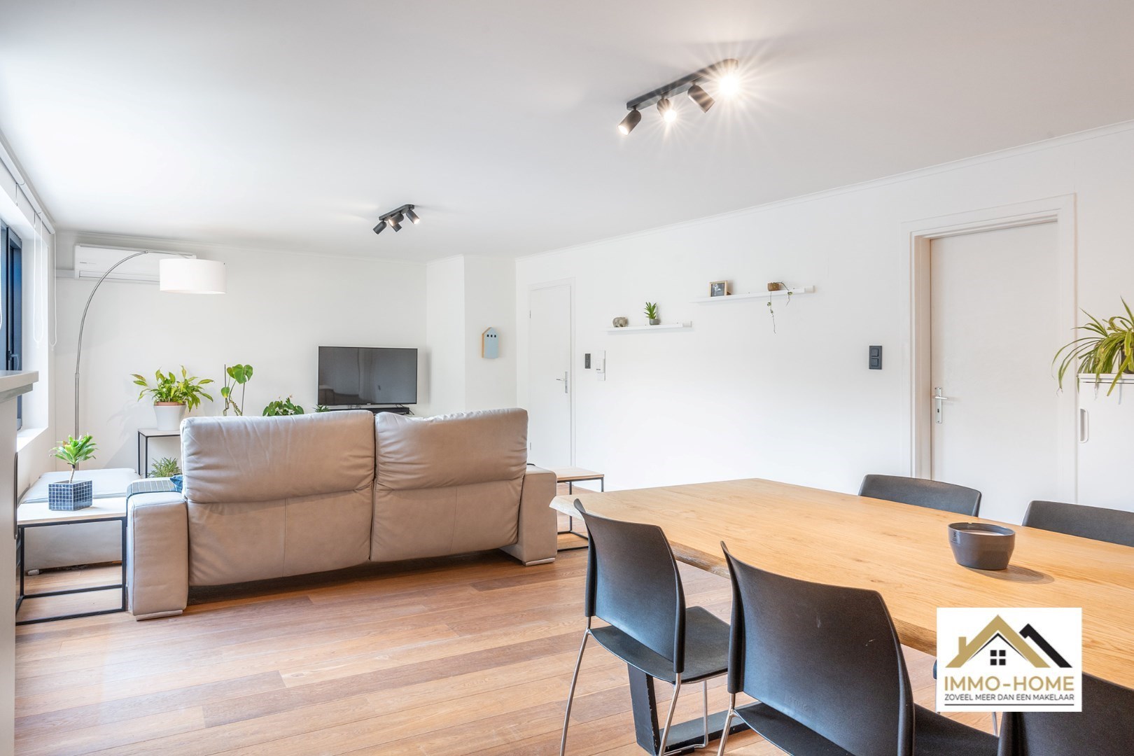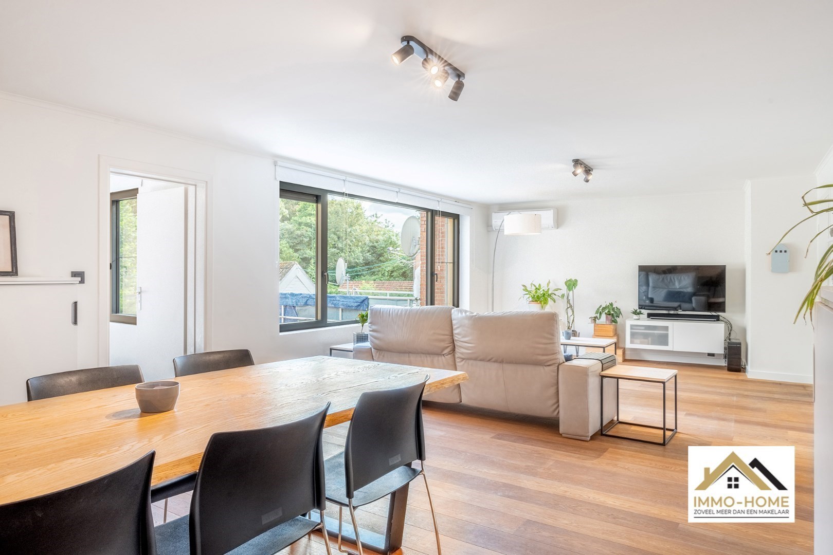 Schrijf u inBEZOEKDAG VOLZET! Dit mooi gerenoveerde appartement, dat gelegen is op de eerste verdieping van het gebouw, bereik je via de gemeenschappelijke inkomhal en trap. Zo kom je tot in de bijzonder lichtrijke leefruimte, waar het grote raam uitzicht biedt op de groene omgeving. De laminaat in de slaapkamers zorgt voor een heel aangenaam en gezellig gevoel. De aanpalende keuken is voorzien van alle comfort, en heeft ruime opbergmogelijkheden. Langs deze weg kom je ook tot op het dakterras, van waarop je het jaar rond kan genieten van de Kalkense Meersen die letterlijk om de hoek liggen. Er zijn twee ruime slaapkamers (waarvan één met wandhoge ingemaakte kasten) die eveneens voorzien zijn van een massief houten vloer. De moderne badkamer met inloopdouche en een dubbel lavabomeubel maken het plaatje compleet. Bij het pand hoort ook een autostaanplaats (met voorziening van elektriciteit) op wandelafstand.