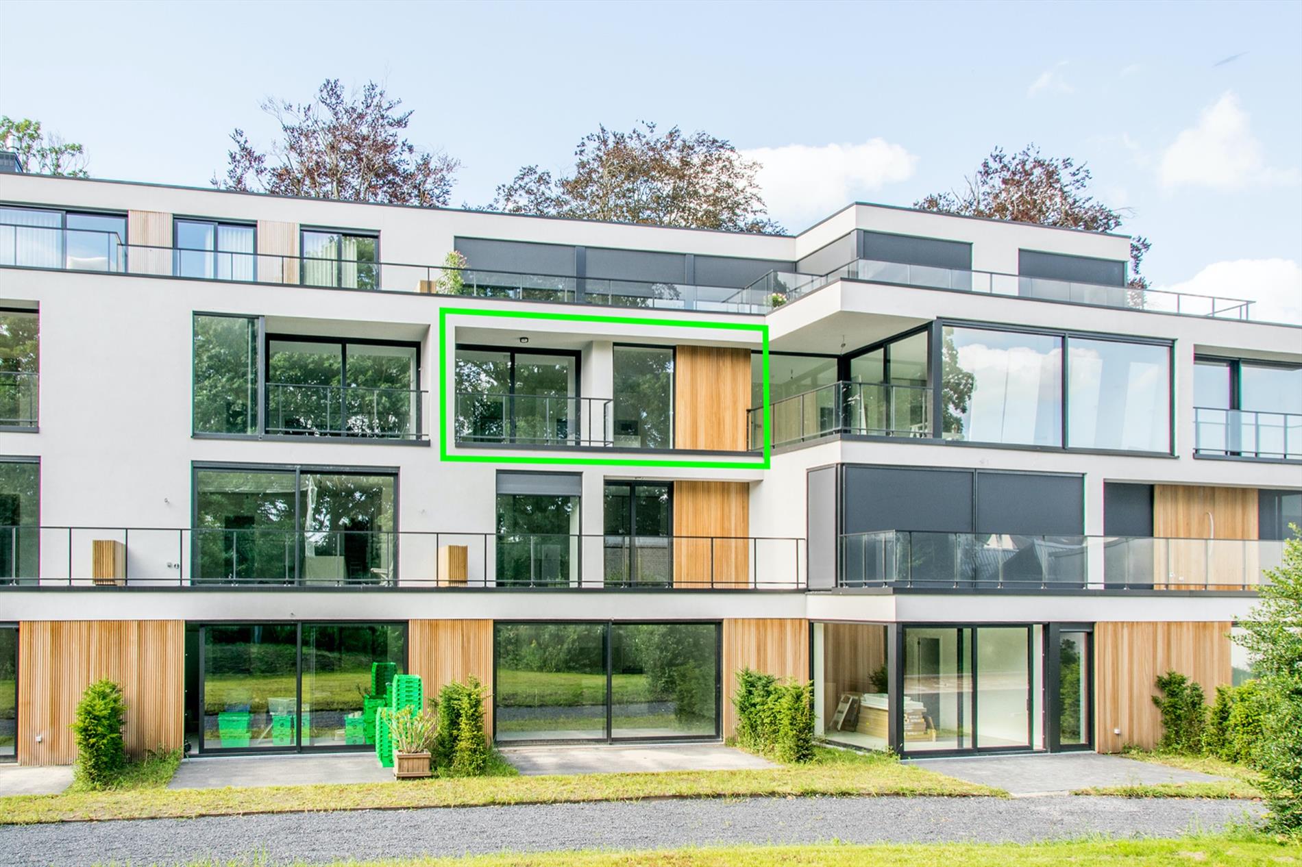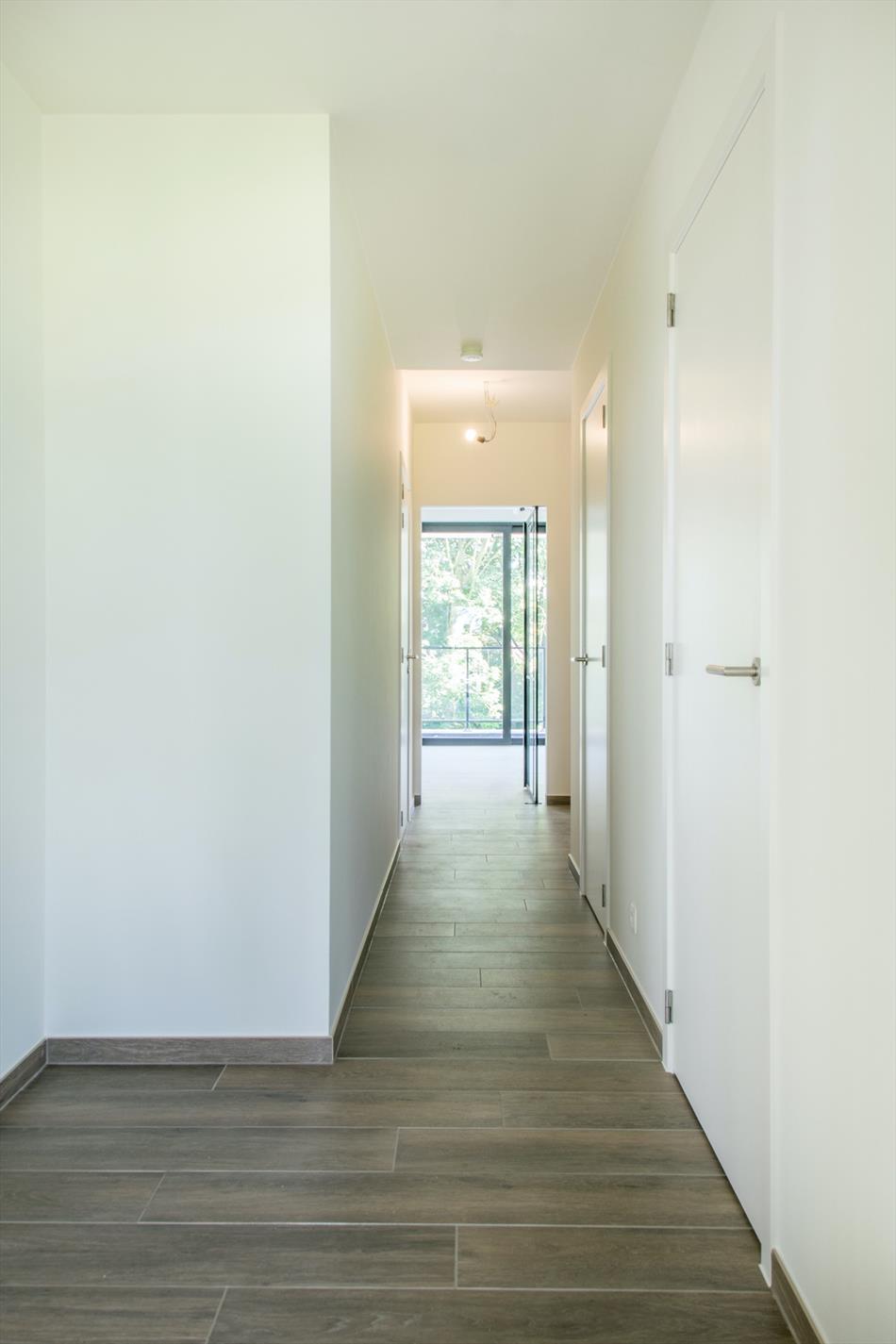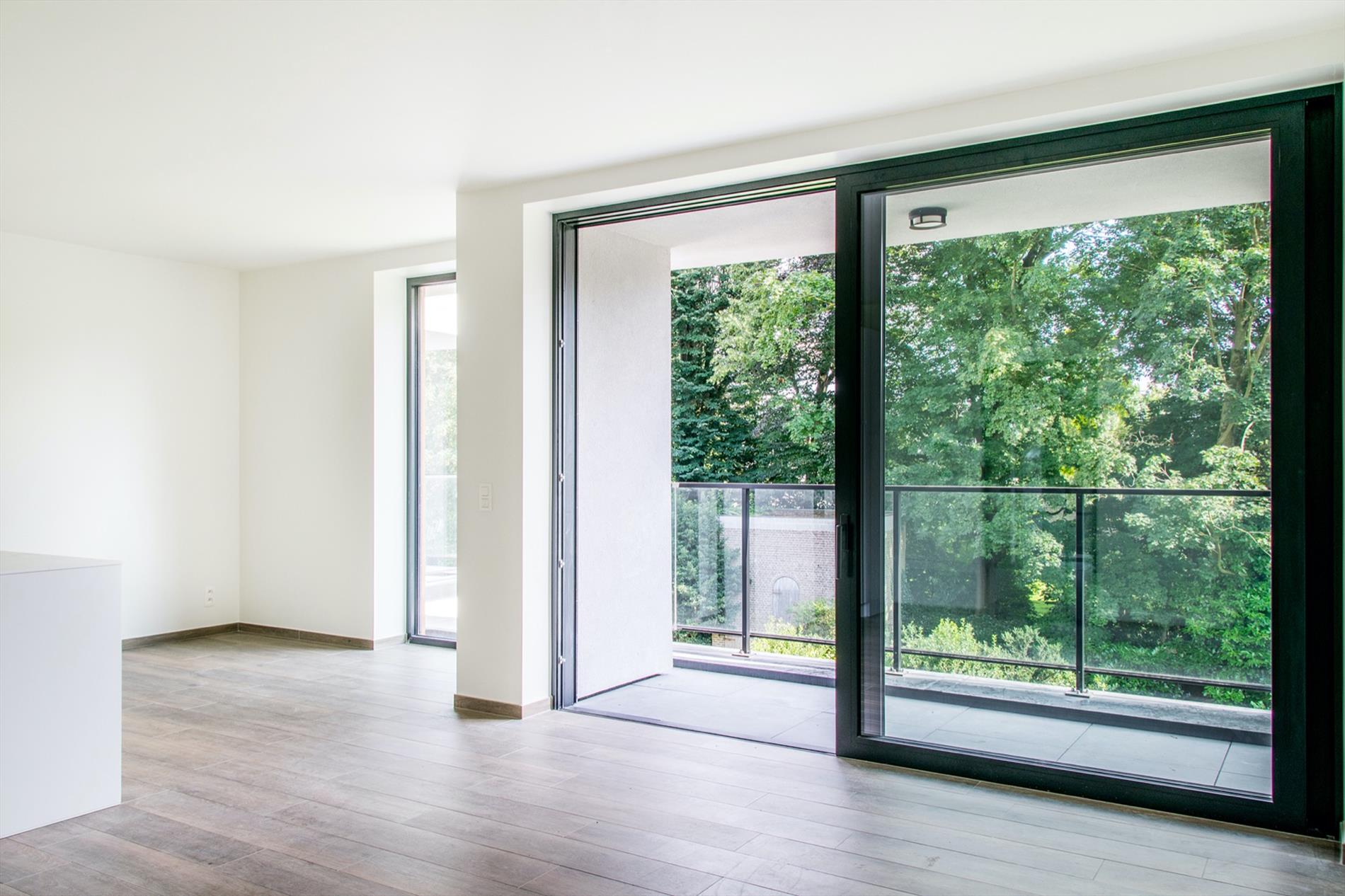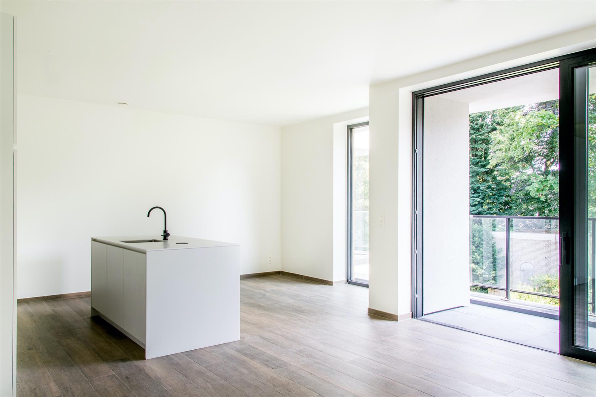 Schrijf u inZegt wonen tussen de bomen je wel iets ? Dan is dit gloednieuw appartement, gelegen op de tweede verdieping, beslist iets voor jou ! De lift in de ruime gemeenschappelijke ruimte brengt je tot aan je voordeur en erachter liggende hall. Via een stijlvolle zwarte stalen glazen deur kom je in de lichtrijke leefruimte met open keuken en kookeiland, van waaruit je een mooi uitzicht hebt op het groen. Het balkon is de ultieme plaats om in de ochtendzon te genieten van je ontbijt. Via de centrale gang (met toilet en technische ruimte) bereik je de andere ruimtes, te beginnen met een praktische badkamer met grote inloopdouche. Daarnaast zijn er twee slaapkamers, beiden met prachtig zicht op de majestueuze bomen. De grootste slaapkamer biedt mogelijkheden voor een inloopdressing, én beschikt over een eigen overdekt balkon. Overal ligt een keramische houtlook vloer die samen met de vloerverwarming zorgt voor een gezellige, klassevolle uitstraling. Ondergrondse parkeerplaats en fietsenstalling. Gem.kosten 60,00 euro/maand.