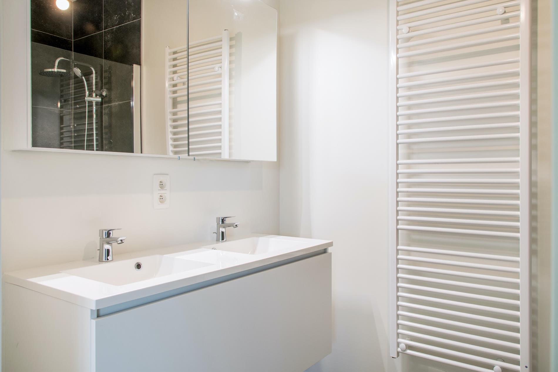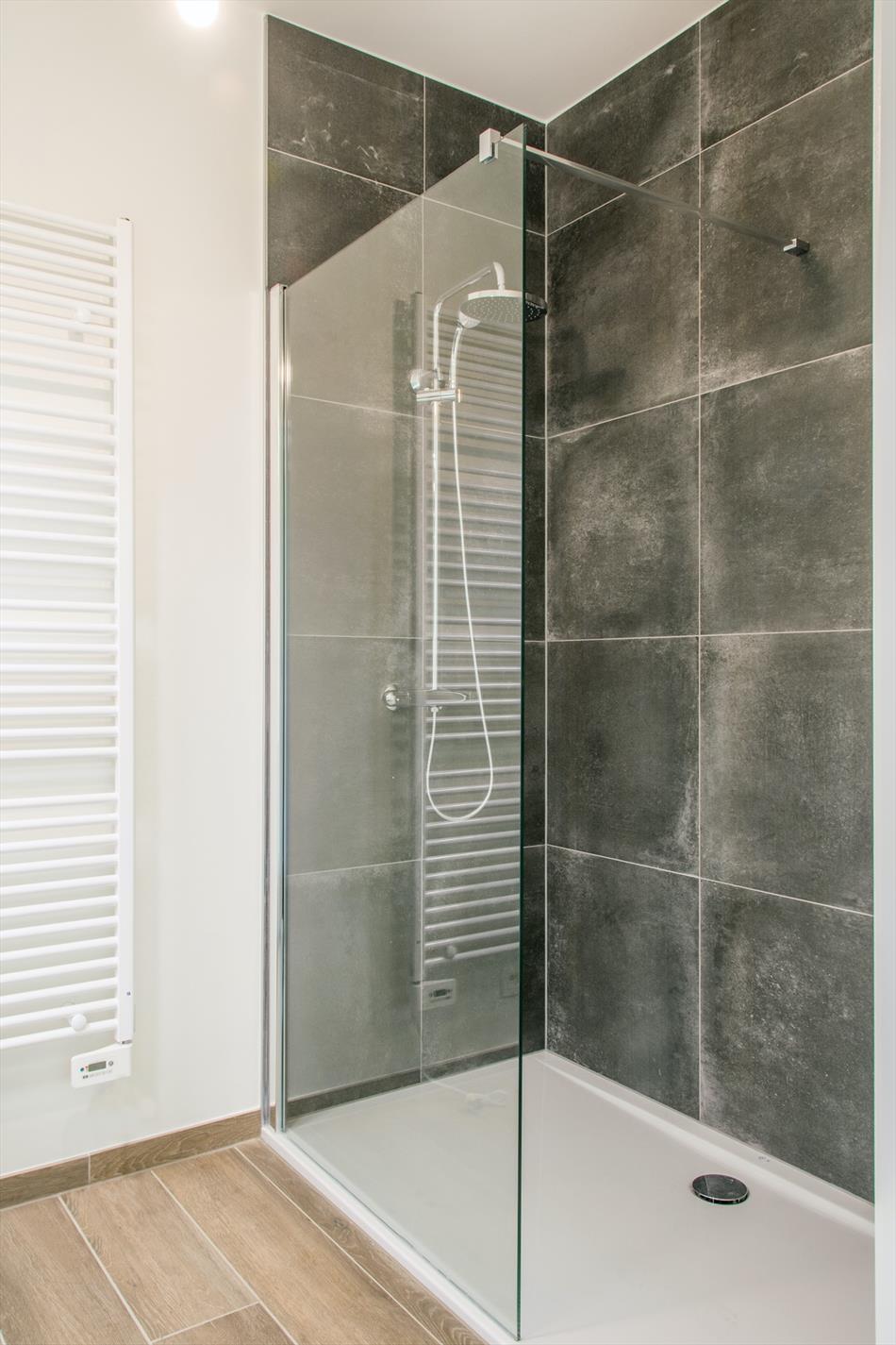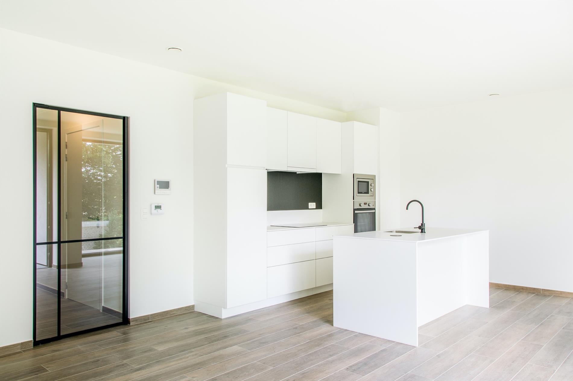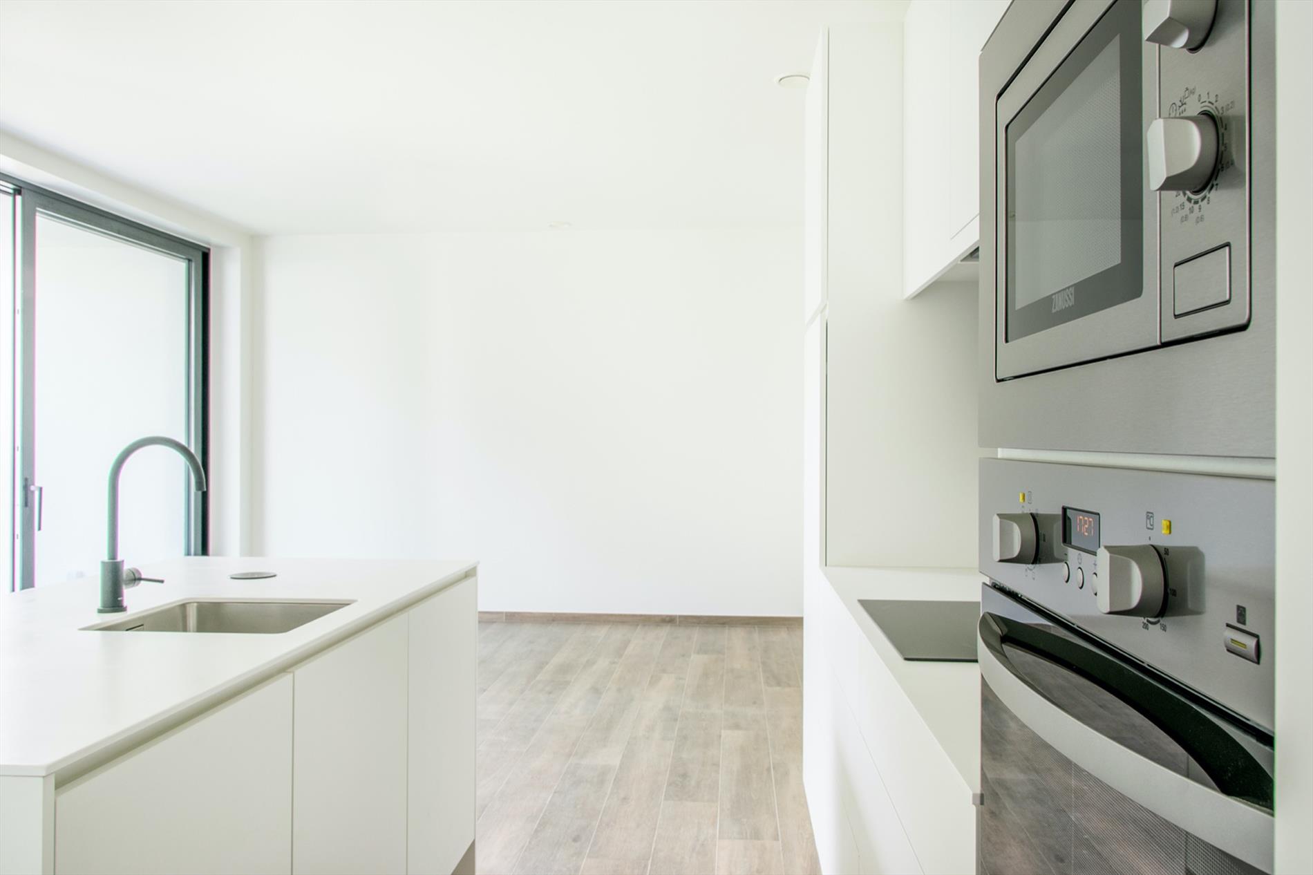 Schrijf u inZegt wonen tussen de bomen je wel iets ? Dan is dit gloednieuw appartement, gelegen op de tweede verdieping, beslist iets voor jou ! De lift in de ruime gemeenschappelijke ruimte brengt je tot aan je voordeur en erachter liggende hall. Via een stijlvolle zwarte stalen glazen deur kom je in de lichtrijke leefruimte met open keuken en kookeiland, van waaruit je een mooi uitzicht hebt op het groen. Het balkon is de ultieme plaats om in de ochtendzon te genieten van je ontbijt. Via de centrale gang (met toilet en technische ruimte) bereik je de andere ruimtes, te beginnen met een praktische badkamer met grote inloopdouche. Daarnaast zijn er twee slaapkamers, beiden met prachtig zicht op de majestueuze bomen. De grootste slaapkamer biedt mogelijkheden voor een inloopdressing, én beschikt over een eigen overdekt balkon. Overal ligt een keramische houtlook vloer die samen met de vloerverwarming zorgt voor een gezellige, klassevolle uitstraling. Ondergrondse parkeerplaats en fietsenstalling. Gem.kosten 60,00 euro/maand.