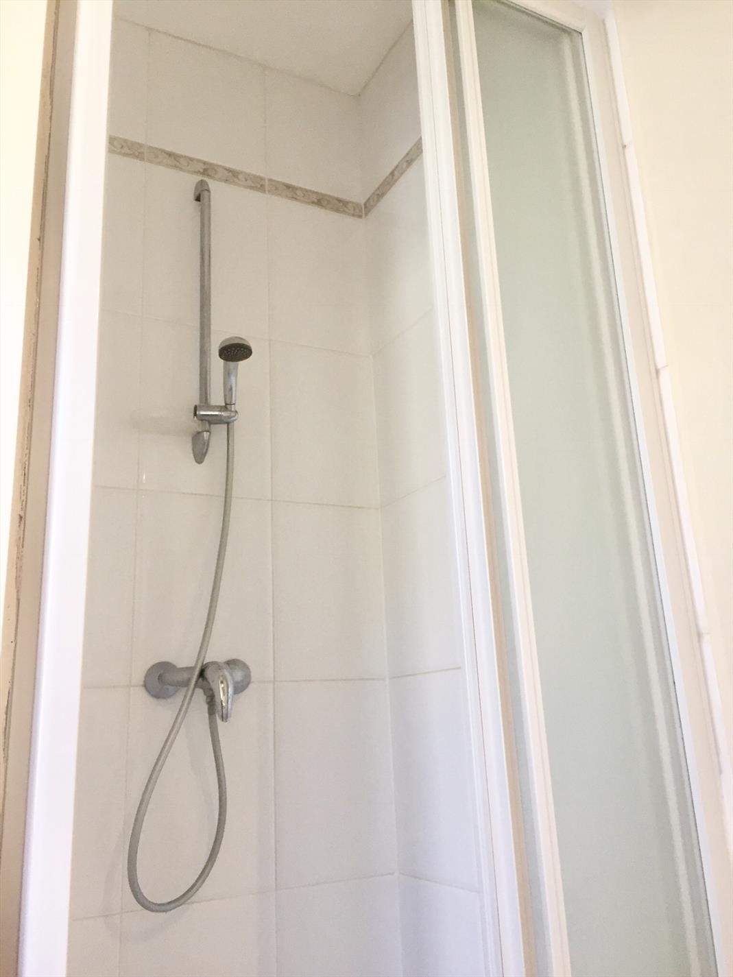 Via de gang gaat u naar de zeer grote slaapkamer, mogelijkheid om er 2 slaapkamers van te maken!, waar de badkamer op aansluit. Hier is een douche voorzien en een enkel lavabomeubel met kastje.