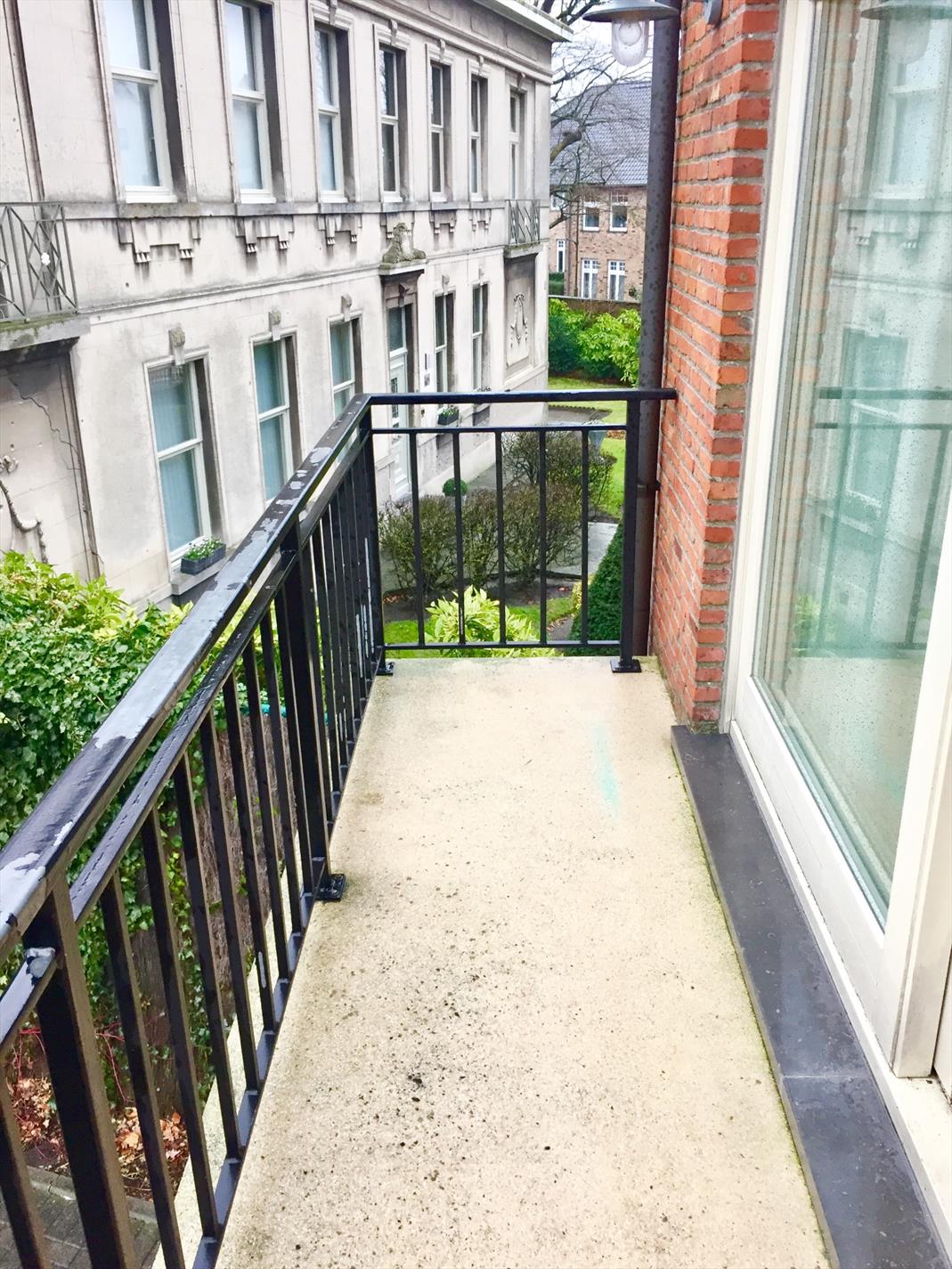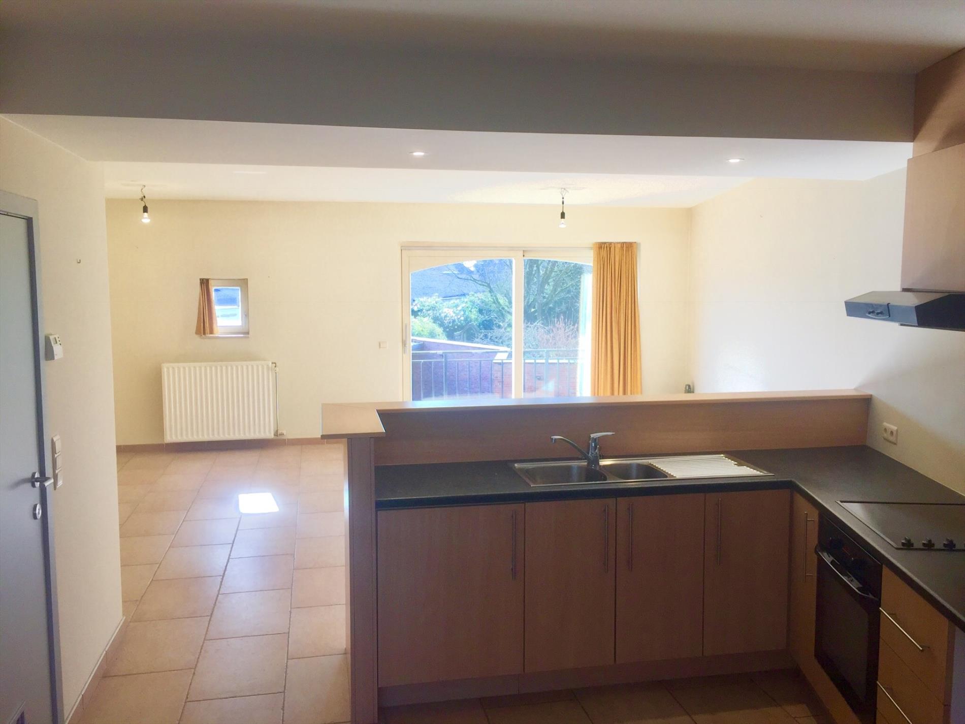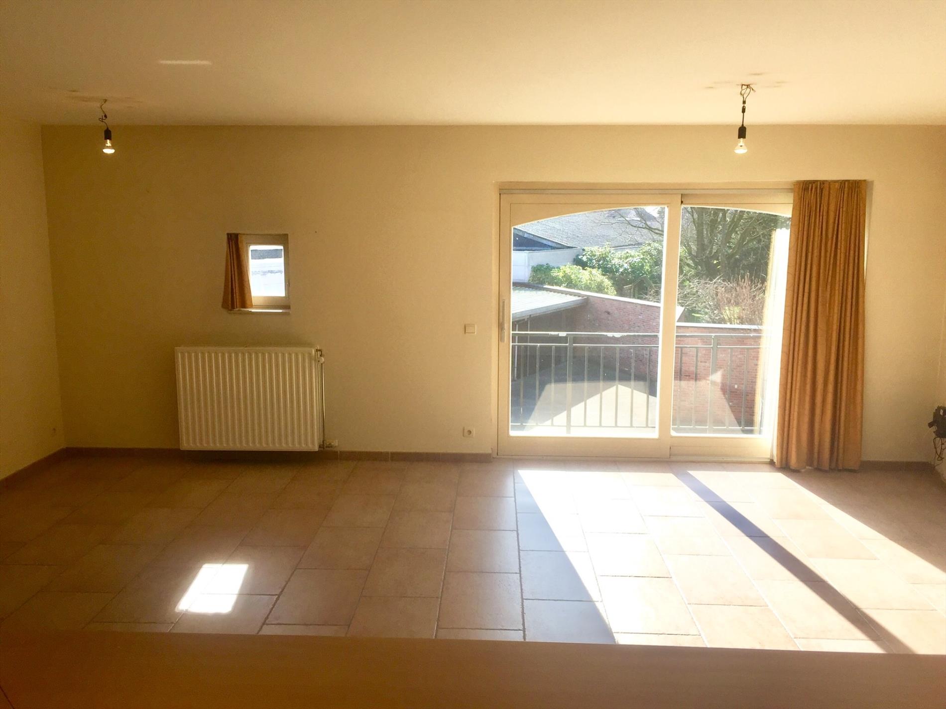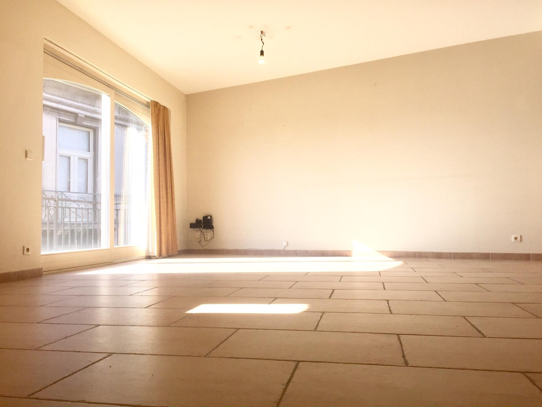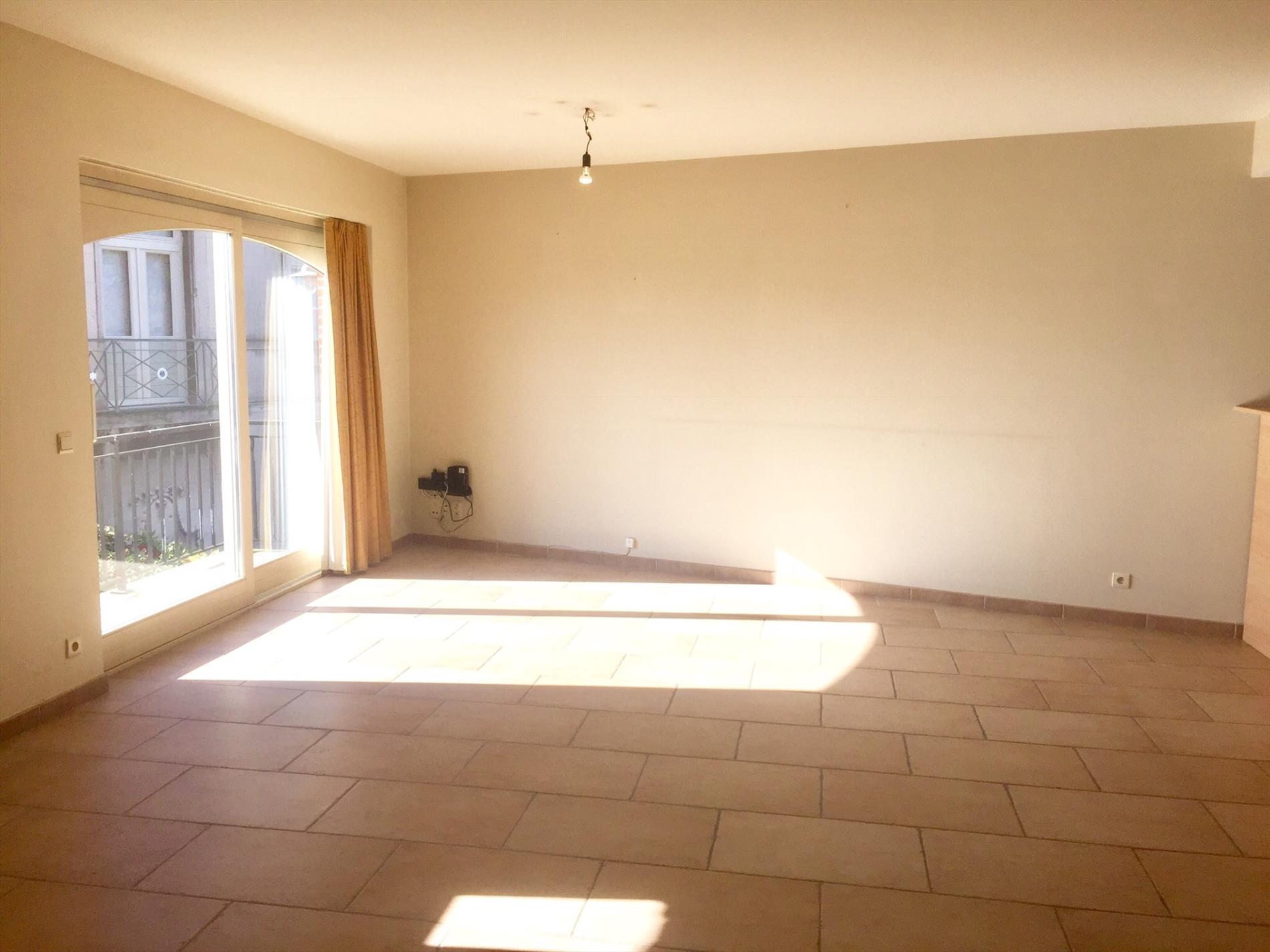 Het appartement is zeer ruim, u komt terecht in de living met open keuken voorzien van alle nodige toestellen. Er is zeer veel lichtinval is langs beide kanten. In de living kan u via het grote schuifraam rechtstreeks op het terrasje dat uitgeeft op de zeer rustige binnenkoer.