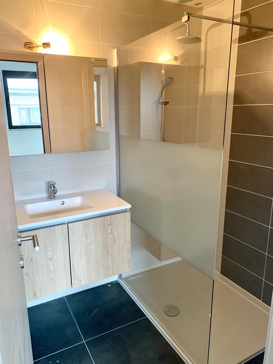 Op de 1ste verdieping bevindt zich dit schitterende "éénslaapkamer" appartement, met mooi terras!