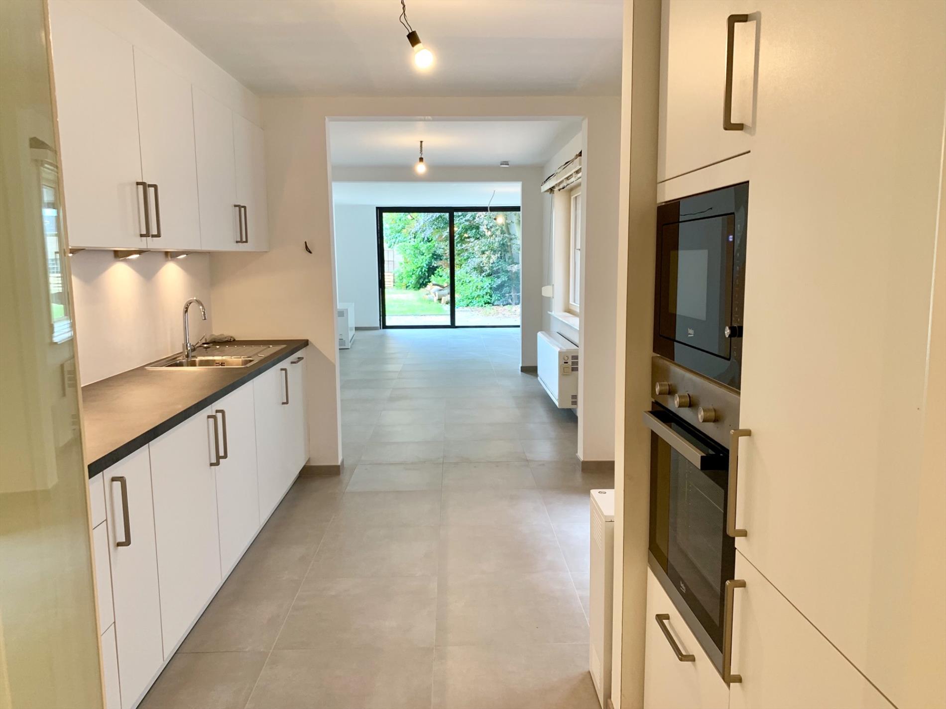 Van zodra u binnenkomt zal u versteld staan van zowel de lichtinval als het volume. Via de open gang met glazen deur komt u in de prachtige nieuwe open keuken die voorzien is van een vaatwasser, koelkast, vriezer, microgolfoven, hete lucht oven, kookplaat en dampkap. Vanuit de keuken loopt u door via de eethoek naar de enorm ruime woonkamer met openhaard/ cassette en uitzicht op een groot terras van 20m2. Ook aan de keuken zijde is een terrasje voorzien van 15 m2.