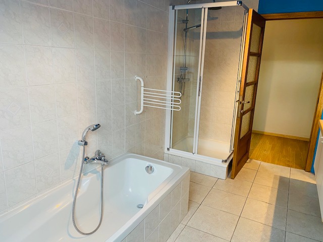 3 Héél ruime slaapkamers en een badkamer met bad, douche, dubbel meubel en toilet.