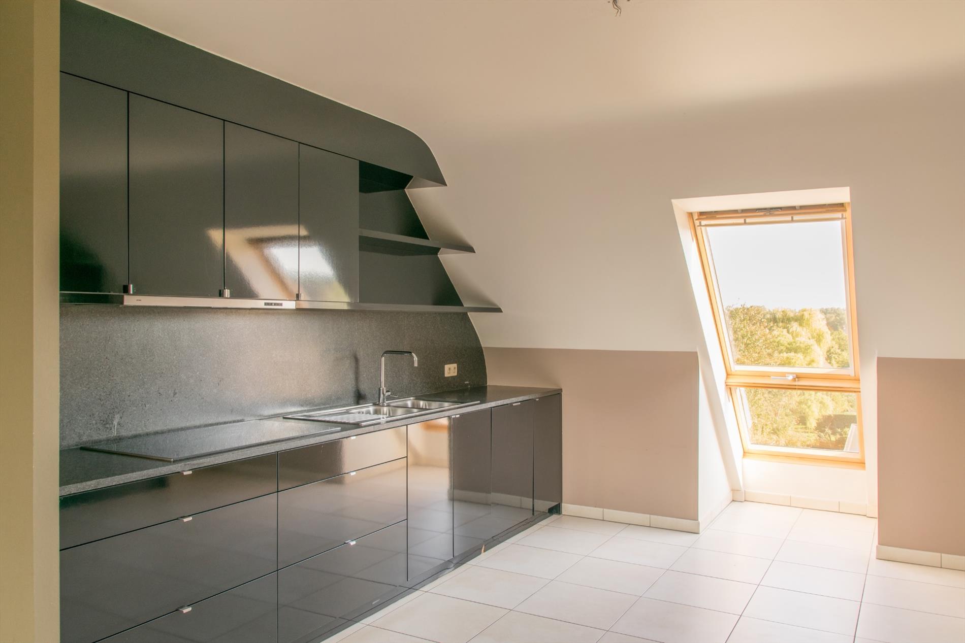 Vanuit de volledig ingerichte keuken (toestellen ATAG) heb je zicht op de iconische bomenrijen van de Kasteeldreef en de aansluitende zeer open leefruimte biedt een magistraal uitzicht op de skyline van het dorp.