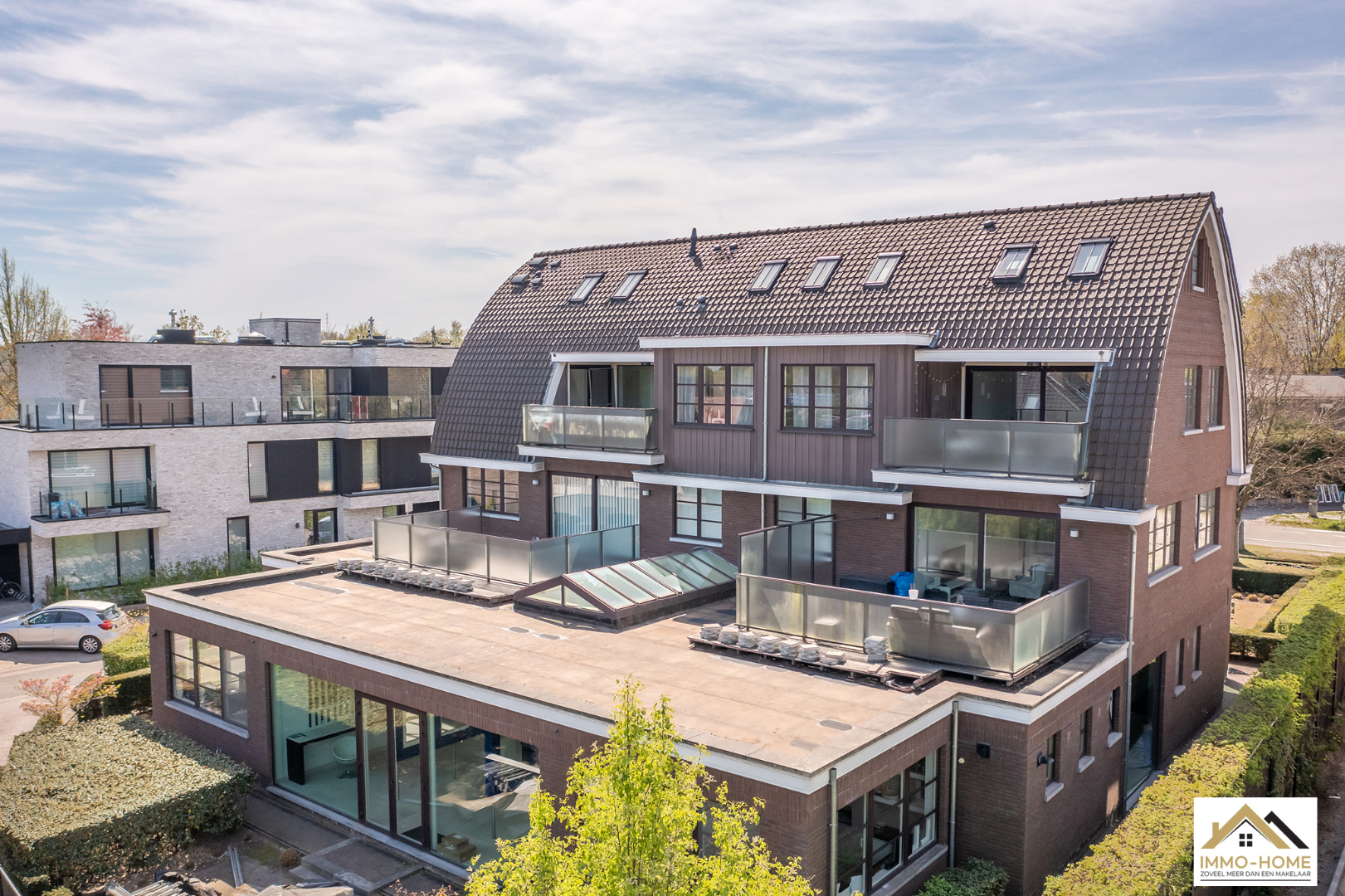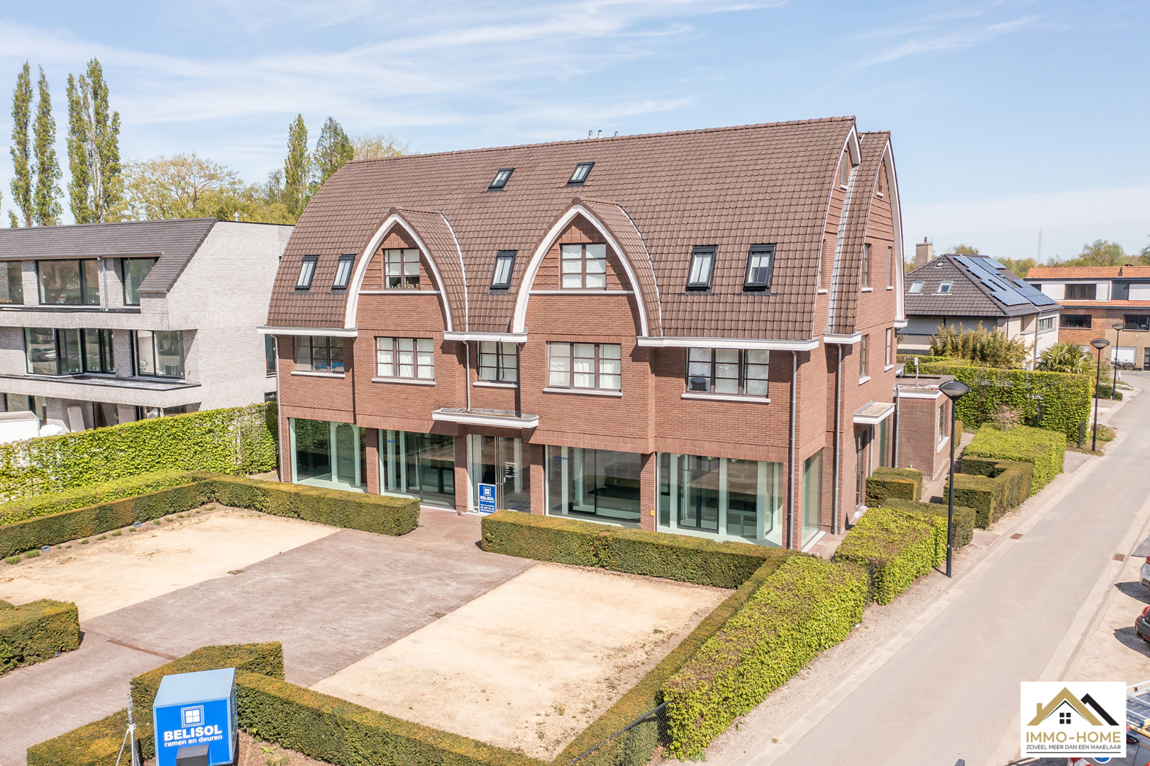Schrijf u inDit unieke complex is gelegen op een zeer goede commerciële locatie, op een grote invalsweg naar Gent én dichtbij de R4. Op het gelijkvloers is er een grote commerciële ruimte van 416 m² met 6 private parkeerplaatsen. Op de tweede verdieping bevindt zich dit duplex-appartementen van 147 m², met 2 slaapkamers die beiden een en-suite badkamer hebben. Uiteraard is ook hier een heel mooie leefruimte met open keuken voorzien, net als toilet en berging. Alles is met oog voor detail afgewerkt en de gebruikte materialen zijn degelijk én stijlvol. Het appartement heeft een mooi terras én een extra berging in de kelder waar ook 1 autostaanplaats is. Het gebouw beschikt over een lift en is omgeven door een mooie aangelegde tuin. Vor bezoek : inschrijvingen via mail naar info@immo-home.be, geen telefonische inschrijvingen! Volg ons op Fb en insta. Voor meer info: www.immo-home.be