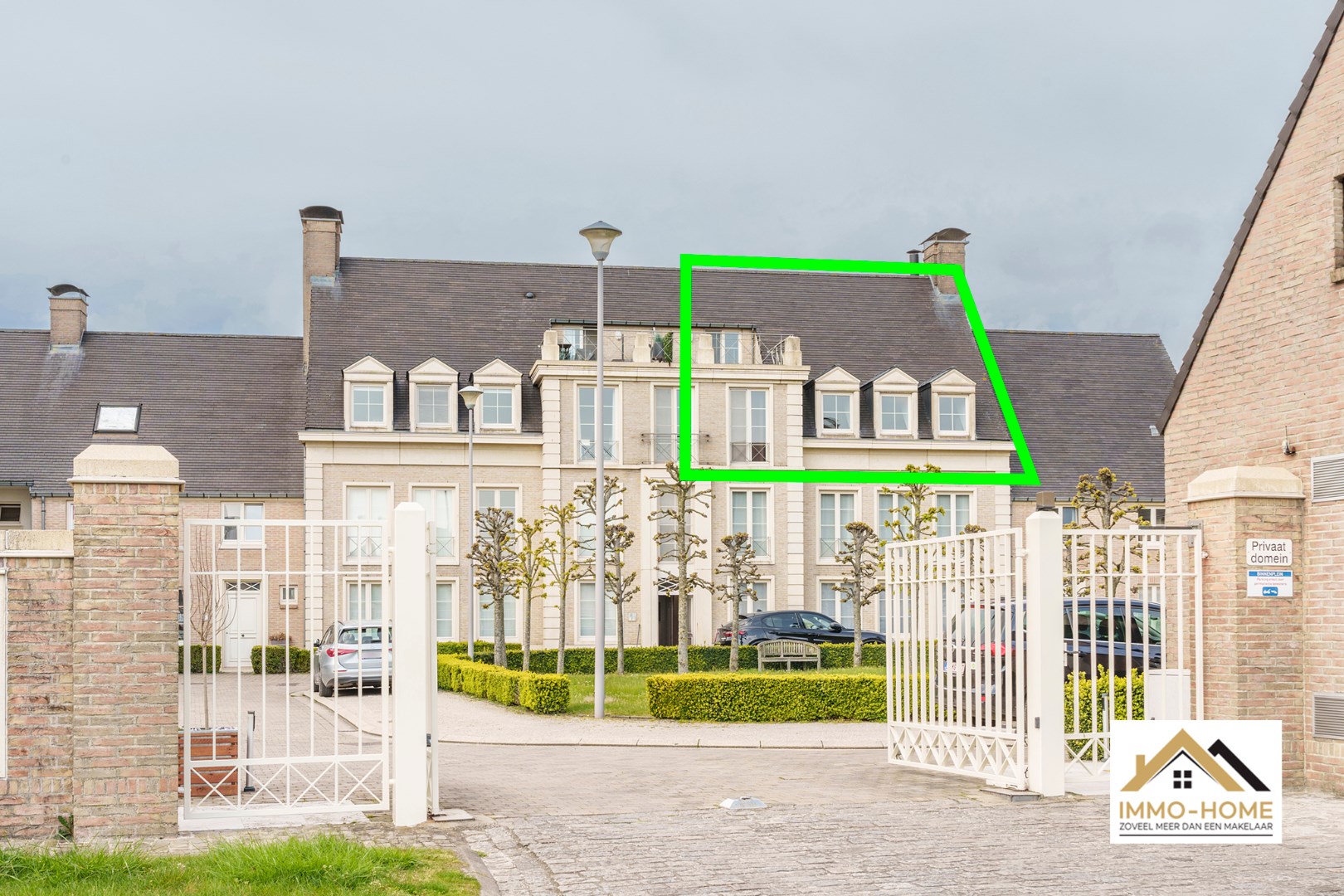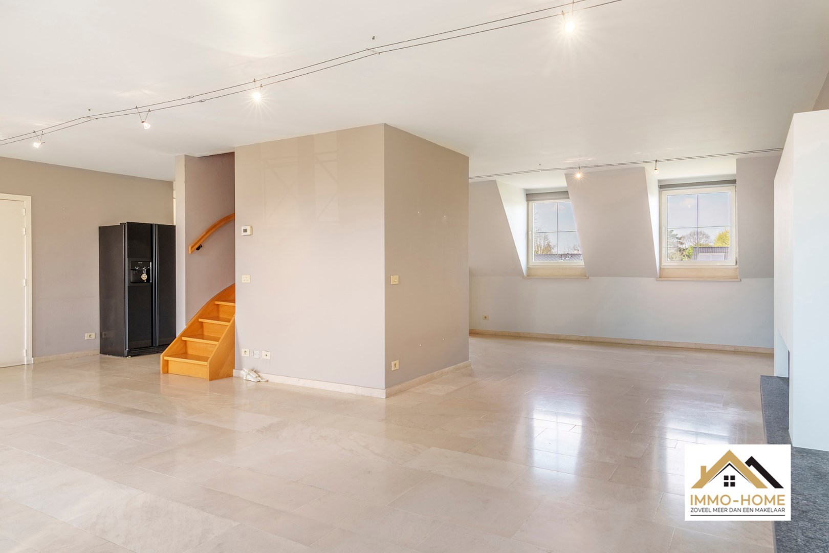 Schrijf u inDit duplex appartement is gelegen in een prachtig complex, aan de buitenrand van het landelijke Laarne. Via de centrale traphal of lift kom je op de derde verdieping direct in de grote open leefruimte. De vele ramen zorgen voor een aangename lichtinval, en de open haard bezorgt het appartement nog extra sfeer in donkere dagen. Vanuit de aanpalende keuken heb je een mooi uitzicht op de omgeving, en dat is er ook op het eerste terrasje dat je ook via de leefruimte kan bereiken. Op de bovenste verdieping is er voorzien in ingemaakte kasten in zowel de overloop als de grote slaapkamer. Deze heeft een en-suite badkamer met ligbad en douche, en een tweede toilet. Vanuit een tweede kleine slaapkamer kom je op het tweede, ruime terras van waarop je alweer een prachtig uitzicht hebt. Bij het appartement hoort een kleine wasplaats/berging in de kelder, en een autostaanplaats. Er hangt rond het gemeenschappelijke binnenplein een leuke vibe, waardoor het hier zeer relaxt wonen is. Bezoekmoment: 28/06: Inschrijvingen via mail naar kim@immo-home.be, geen telefonische inschrijvingen! Volg ons op Fb en insta. Voor meer info: www.immo-home.be