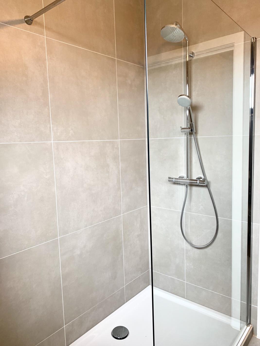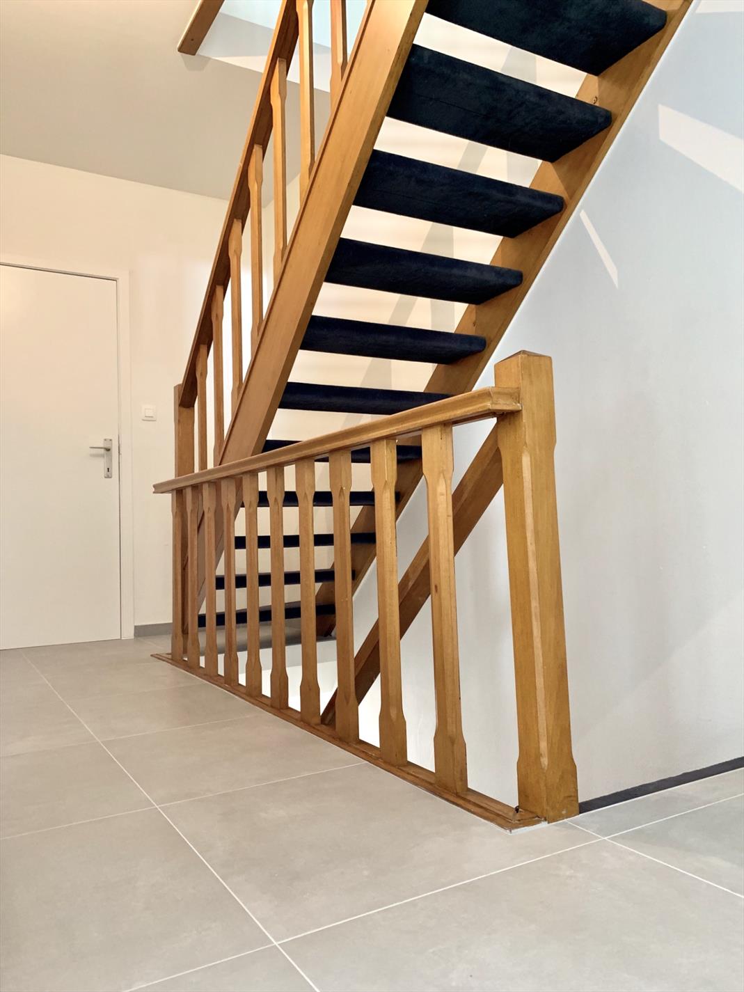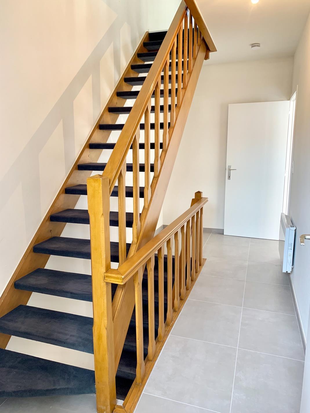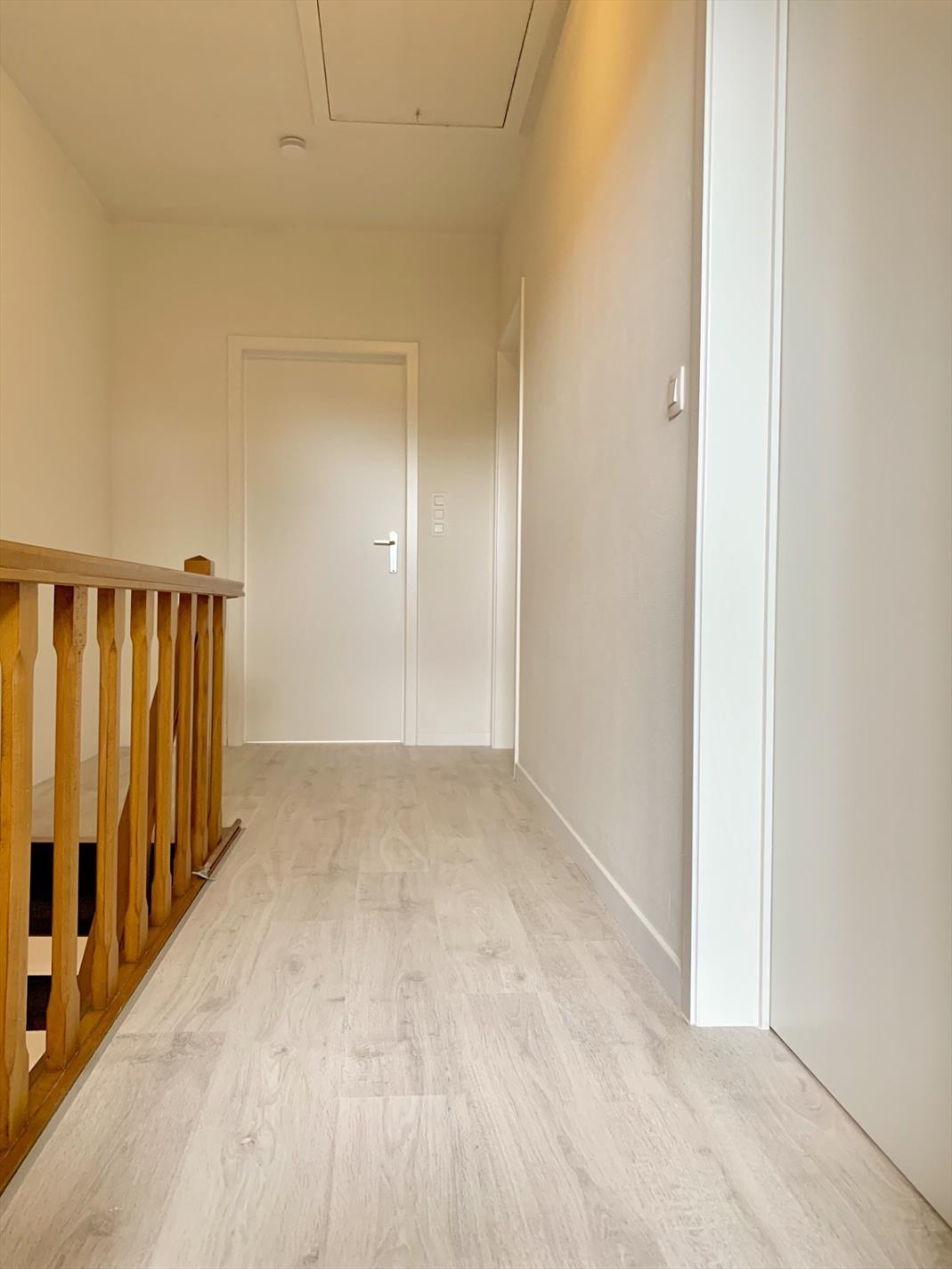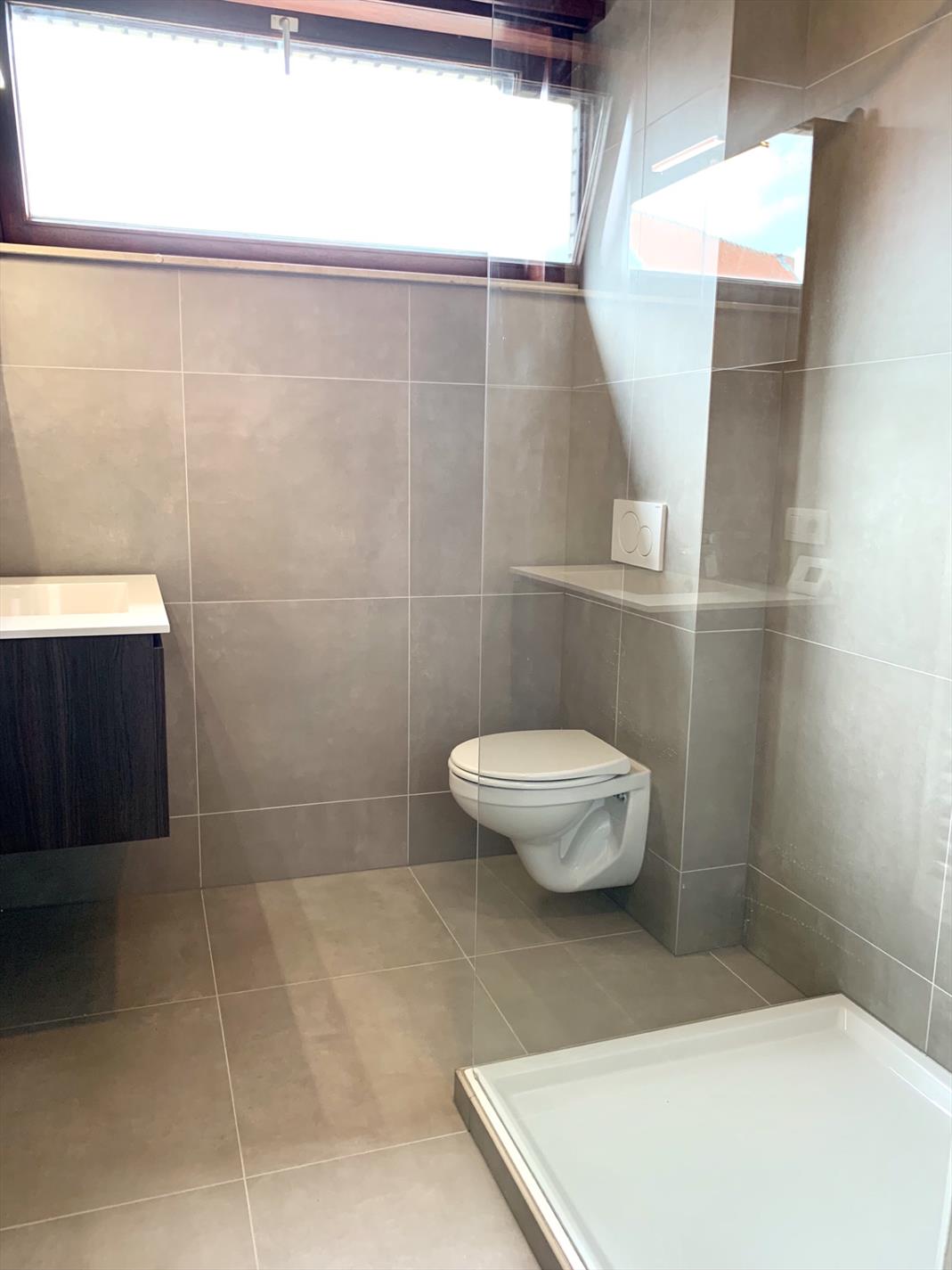 Via de gang waar ook een apart gastentoilet is gaat u naar de 2de verdieping. Hier bevinden zich 2 grote slpkmrs en 1 kleinere. De badkamer heeft een inloopdouche, lavabo meubel met ladekast, handdoekdroger en 2de toilet. De zolder werd volledig geïsoleerd.