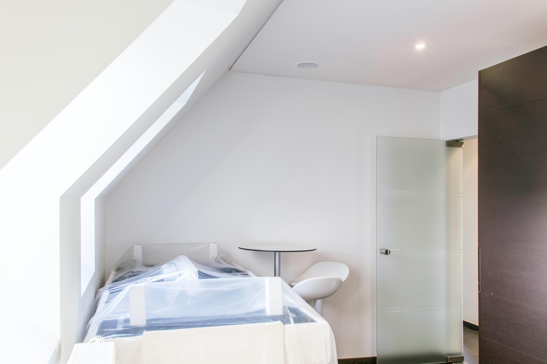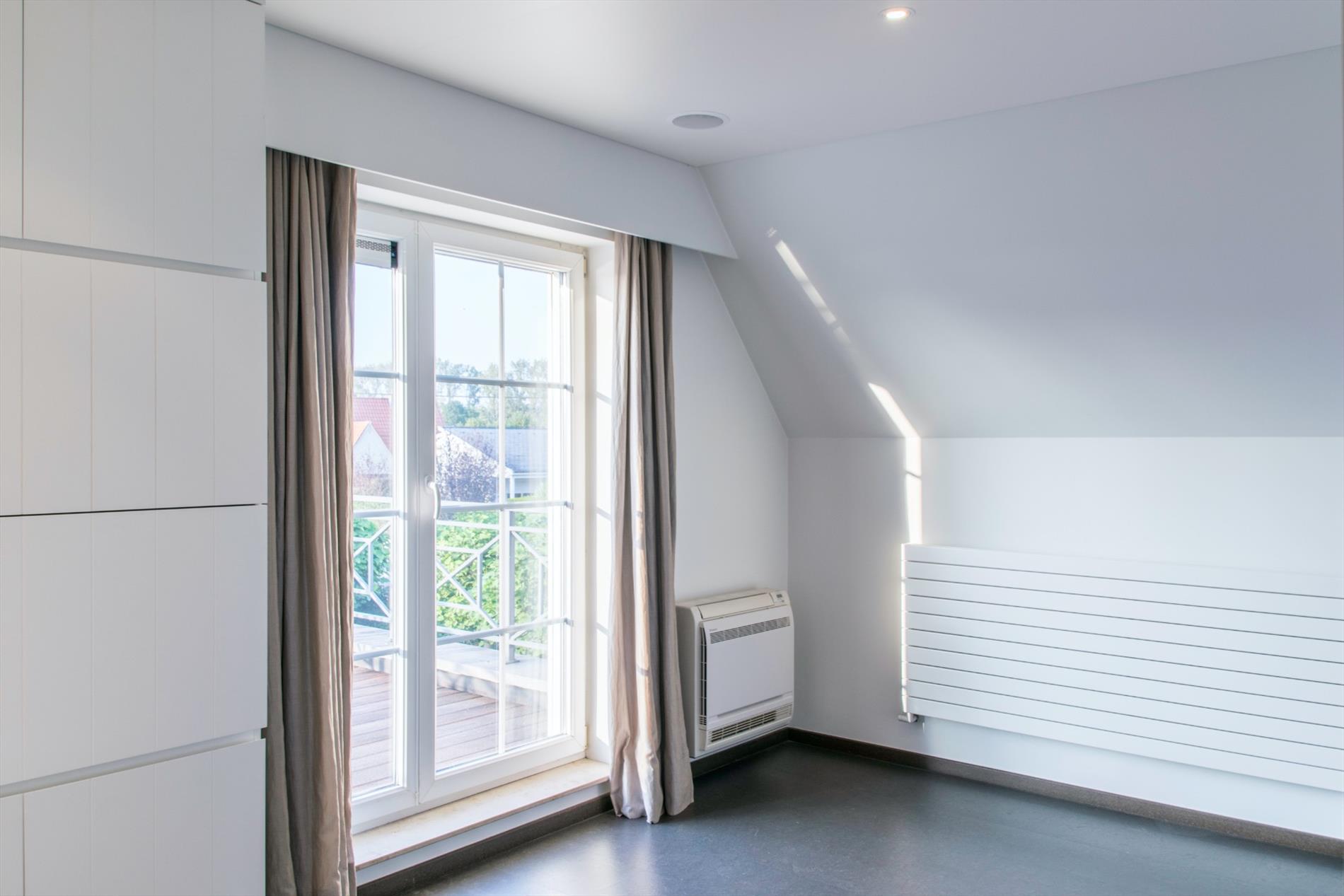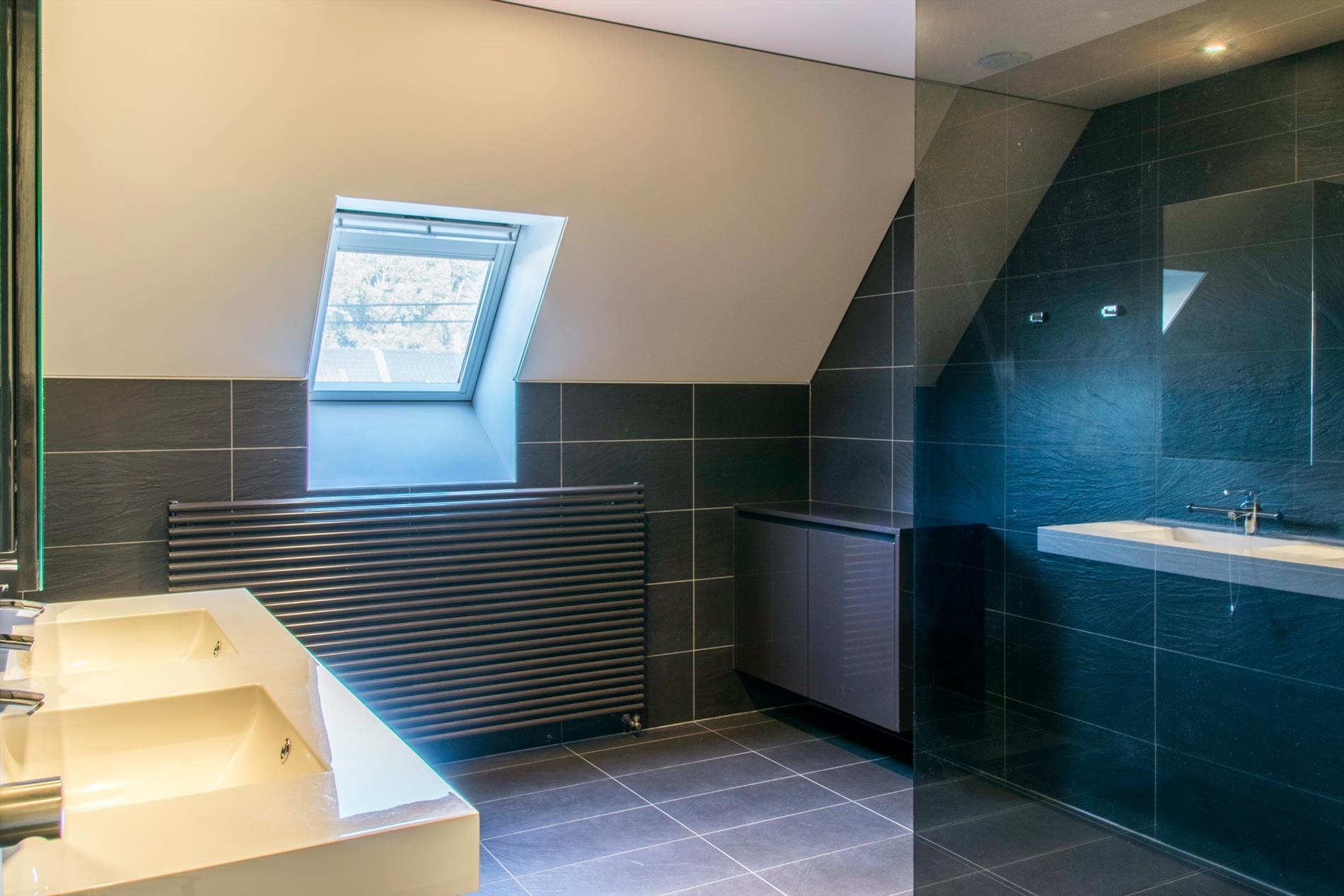 Schrijf u inDeze eigentijdse woning betreed je via een zeer ruime inkomhal, waar de ingemaakte kasten een zee aan bergruimte verbergen. Zelfs aan het gastentoilet merk je het : hier is heel stijlvol omgesprongen met kwaliteitsmaterialen.