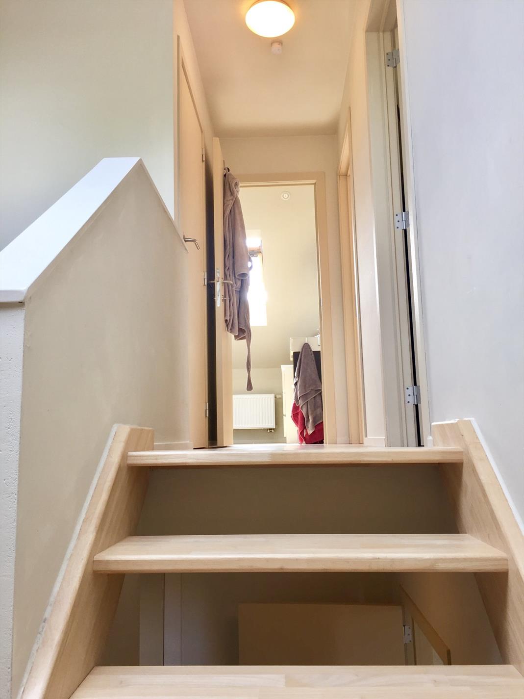 De ene verdieping behelst een grote slaapkamer en grote badkamer, met kleine berging (31m²).