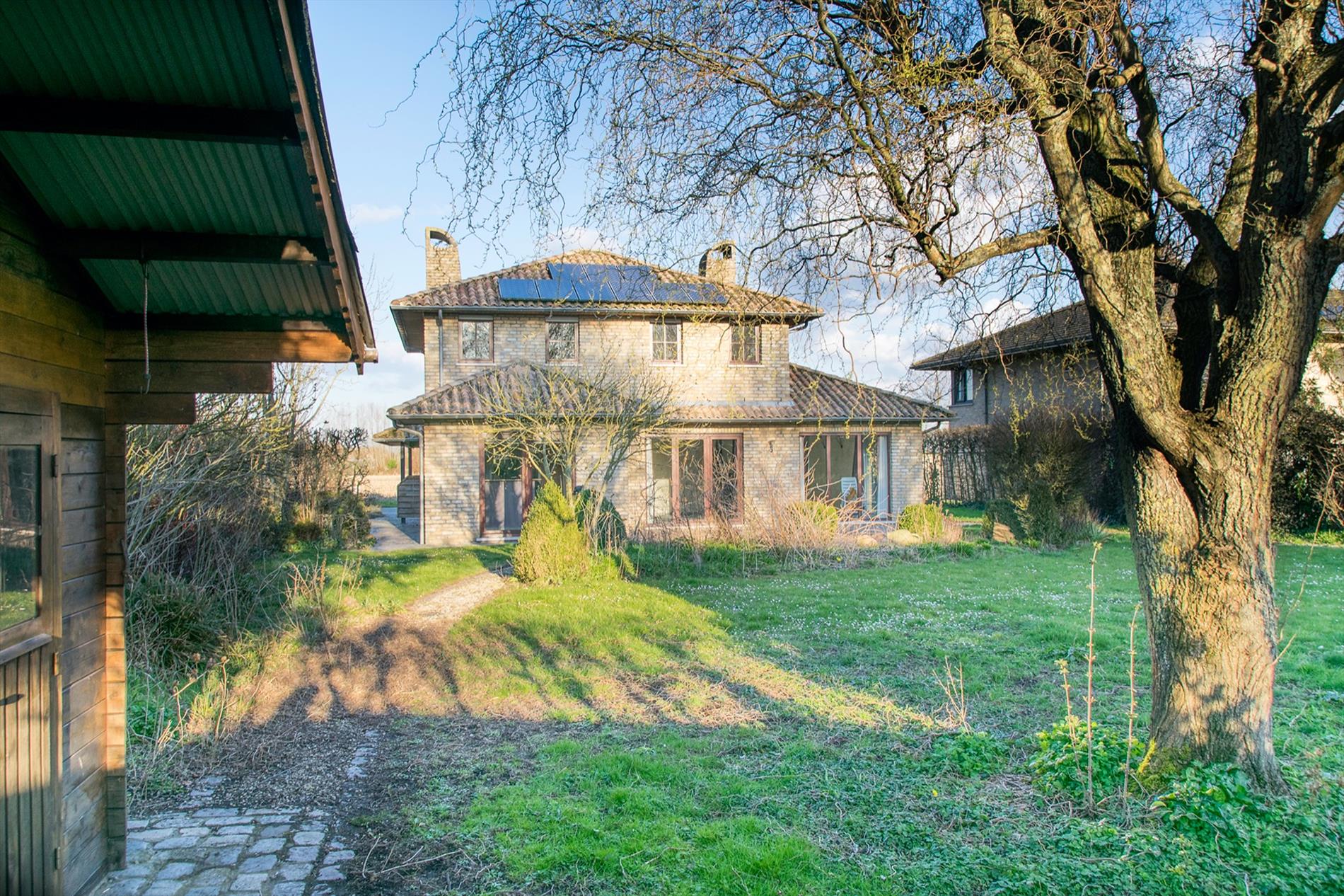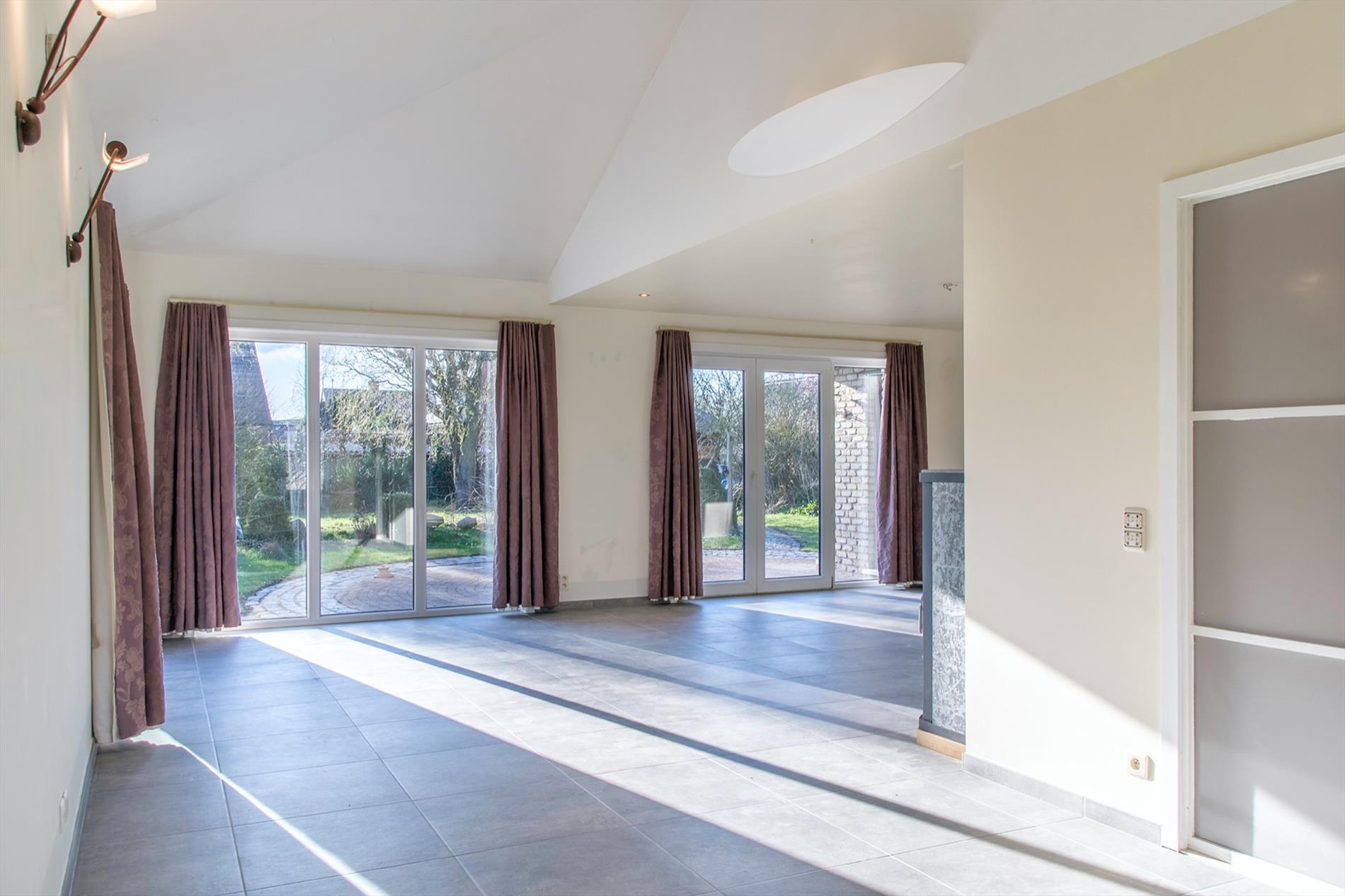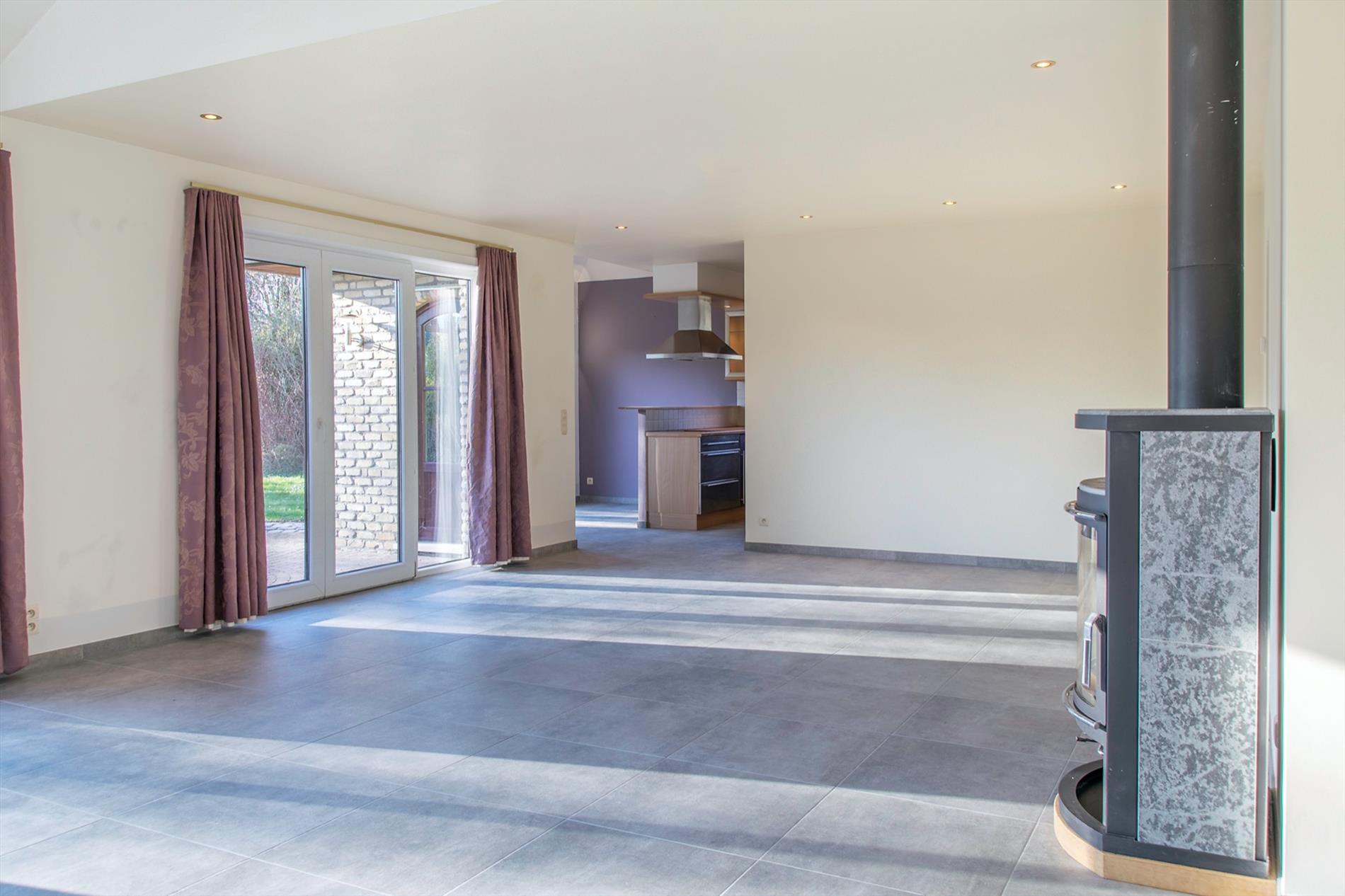 Schrijf u inDeze zuiders getinte OB is gelegen in een zeer rustige omgeving met agrarisch uitzicht, omgeven door een mooi aangelegde zuid-gerichte tuin met groot terras. De woning betreden doe je via een ruime inkomhal met gastentoilet. Een glazen deur brengt je in de grote L-vormige leefruimte met hoge plafonds en open keuken, waar het daglicht langs alle zijdes alle kansen krijgt om binnen te vallen door de grote raampartijen. Te koud om buiten te zitten ? Dan brengt de houthaard zeker genoeg warmte binnen. CV/aardgas. Het terras is bereikbaar langs de grote ramen en via een deur in de goed uitgeruste keuken. Aanpalend is er een grote wasplaats/berging (te bereiken via de zijdeur) en een praktische kelder. Op de eerste verdieping bevinden zich rond de centrale hal een apart toilet, drie ruime slaapkamers (waarvan één met ingemaakte kasten en één met een aanpalende badkamer met douche, ligbad en dubbel lavabomeubel). De badkamer is eveneens via de hal bereikbaar, en de twee tuingerichte slaapkamers hebben elektrische rolluiken. Vooraan de woning is er een carport met plaats voor twee wagens, en er liggen 19 zonnepanelen op het dak. Extra bergruimte is er op de handige zolder.