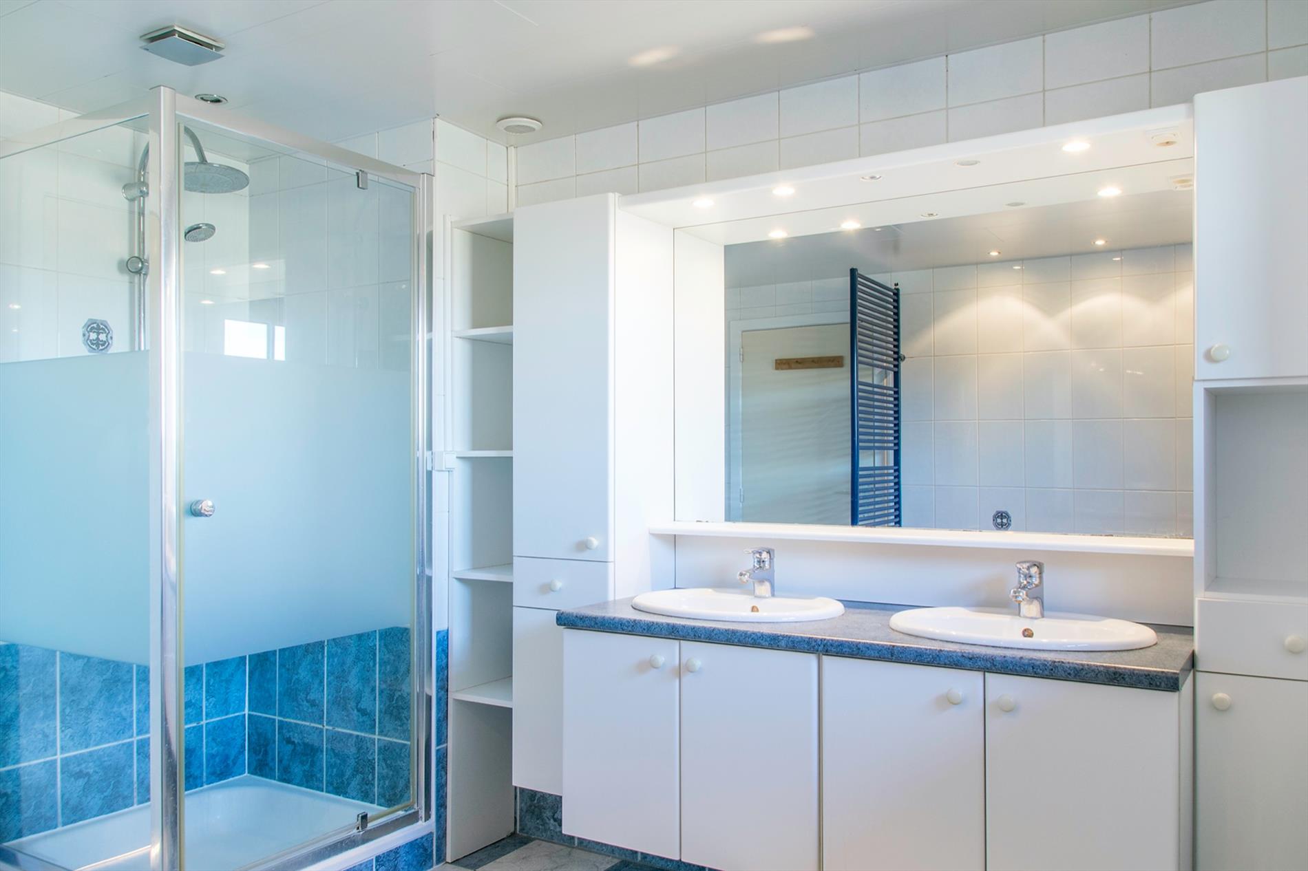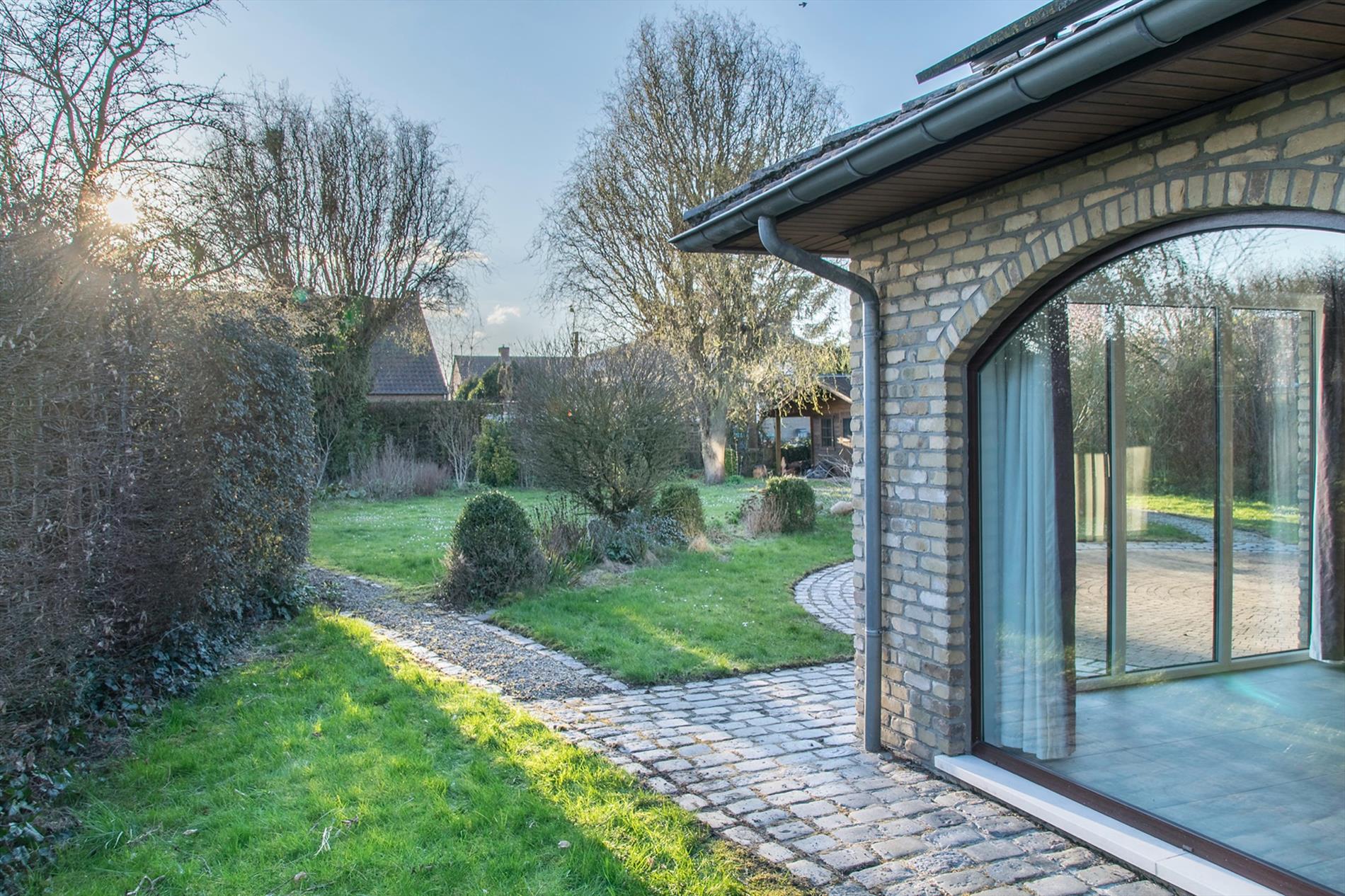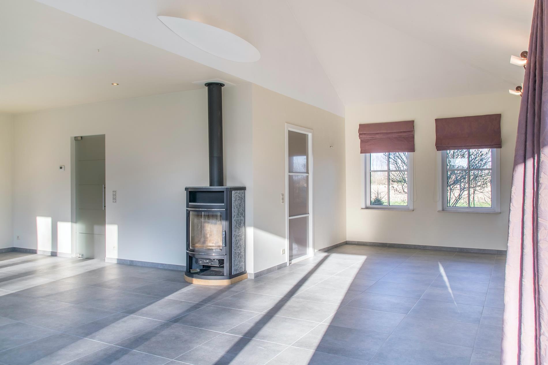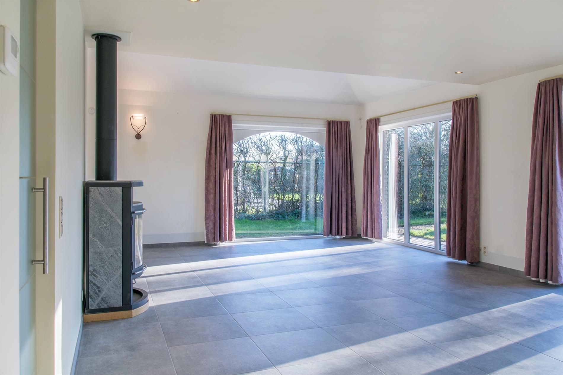 Schrijf u inDeze zuiders getinte OB is gelegen in een zeer rustige omgeving met agrarisch uitzicht, omgeven door een mooi aangelegde zuid-gerichte tuin met groot terras. De woning betreden doe je via een ruime inkomhal met gastentoilet. Een glazen deur brengt je in de grote L-vormige leefruimte met hoge plafonds en open keuken, waar het daglicht langs alle zijdes alle kansen krijgt om binnen te vallen door de grote raampartijen. Te koud om buiten te zitten ? Dan brengt de houthaard zeker genoeg warmte binnen. CV/aardgas. Het terras is bereikbaar langs de grote ramen en via een deur in de goed uitgeruste keuken. Aanpalend is er een grote wasplaats/berging (te bereiken via de zijdeur) en een praktische kelder. Op de eerste verdieping bevinden zich rond de centrale hal een apart toilet, drie ruime slaapkamers (waarvan één met ingemaakte kasten en één met een aanpalende badkamer met douche, ligbad en dubbel lavabomeubel). De badkamer is eveneens via de hal bereikbaar, en de twee tuingerichte slaapkamers hebben elektrische rolluiken. Vooraan de woning is er een carport met plaats voor twee wagens, en er liggen 19 zonnepanelen op het dak. Extra bergruimte is er op de handige zolder.