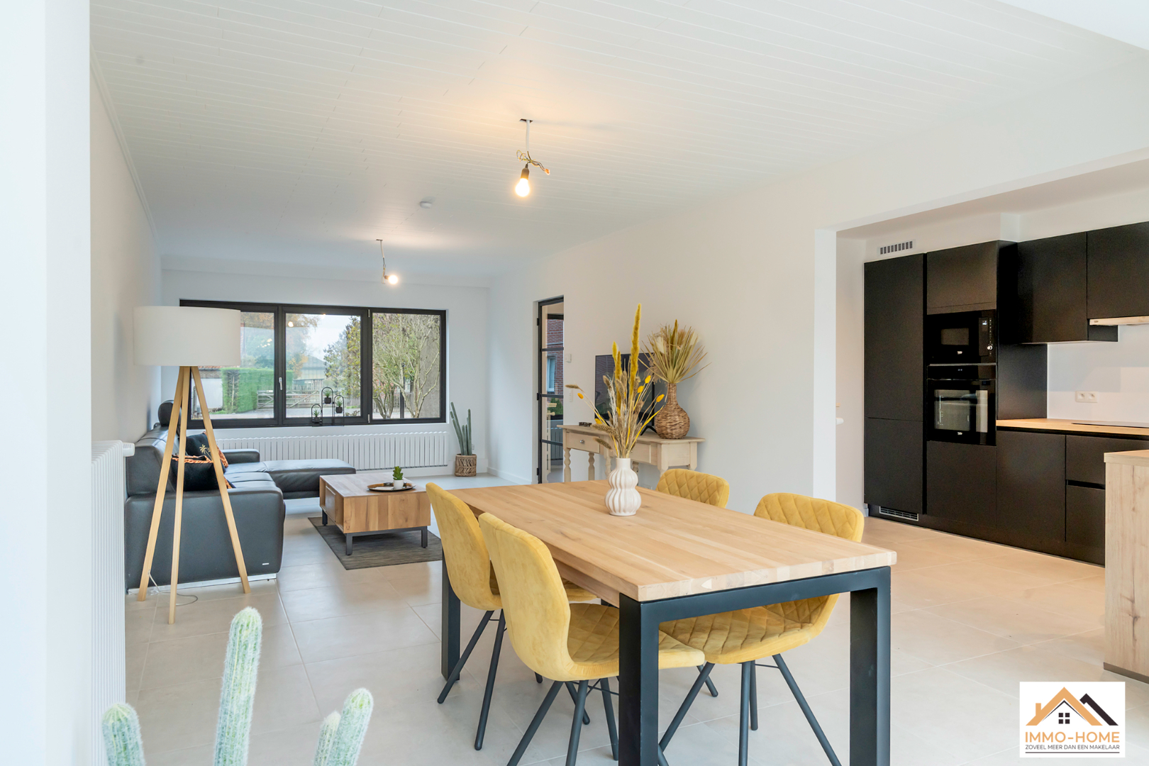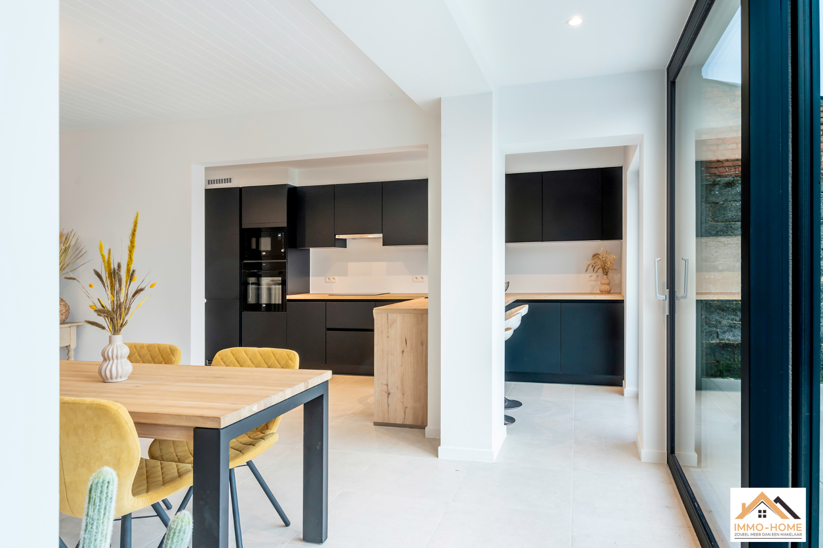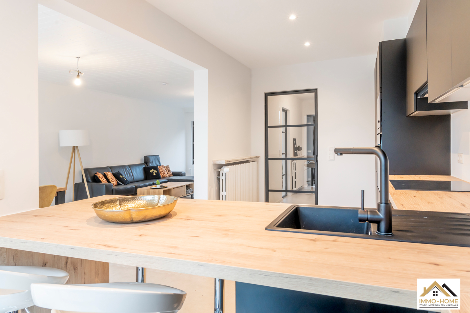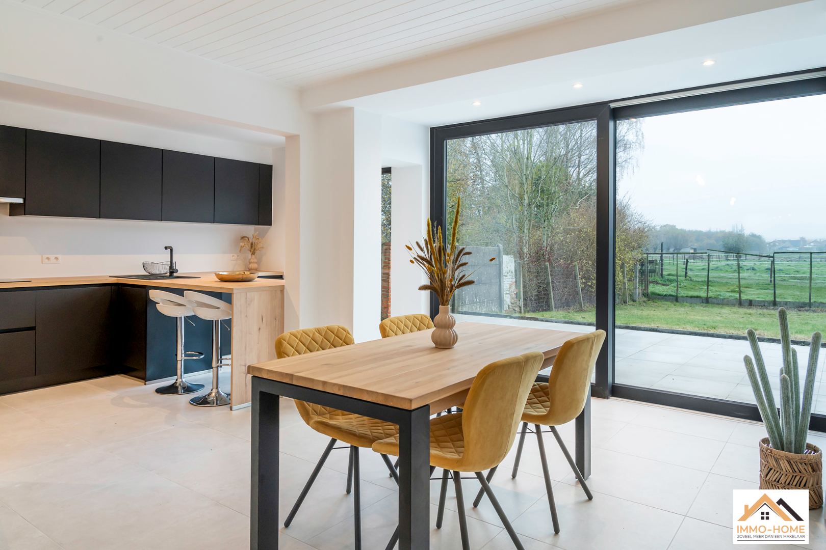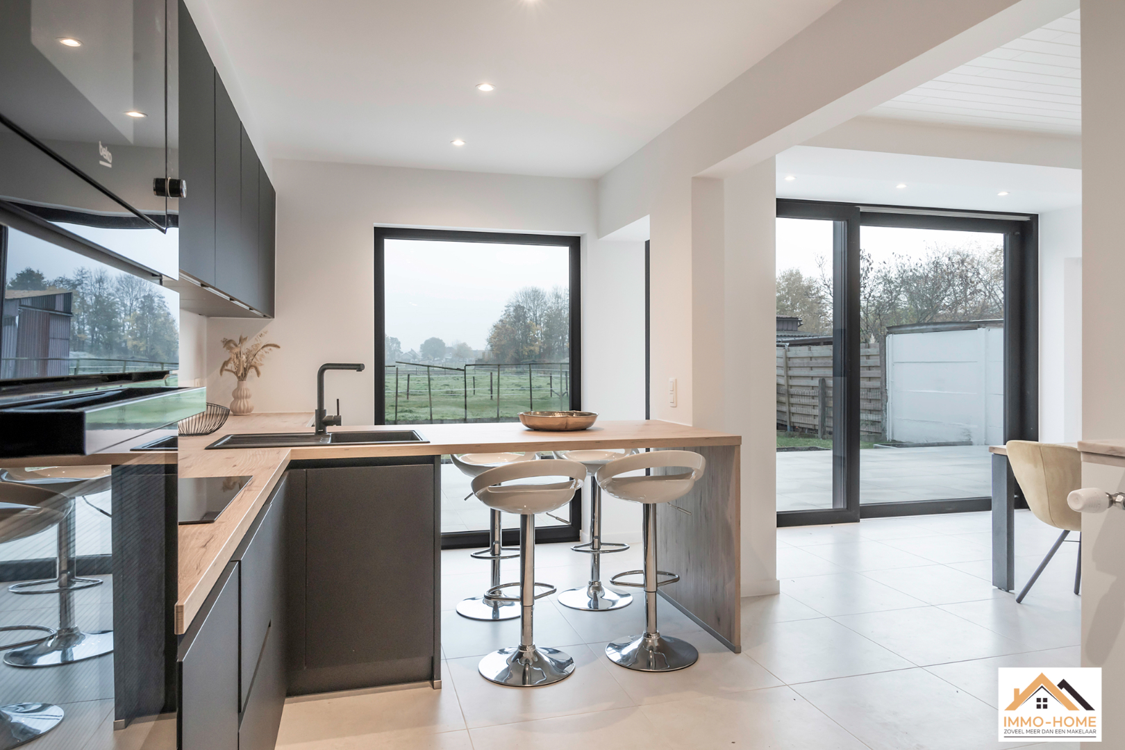 Schrijf u inDeze totaal gerenoveerde woning betreed je via een heel aangename inkomhal met gastentoilet, vestiaire en berging. De twee stijlvolle zwart metalen glasdeuren brengen je in de grote lichtrijke leefruimte met eetplaats en een nieuwe open keuken incl alle nodige nieuwe toestellen. Aan de keuken is ook een werkhoek voorzien voor thuiswerkers. De grote glaspartijen achteraan bieden naast veel lichtinval ook een prachtig zicht op de tuin met groot aangelegd terras. Achteraan de tuin heeft u een prachtig zicht op het agrarisch gebied en paarden. Het grote zuid-gerichte terras bereik je zowel via het schuifraam als langs de dubbele deur in de garage, van waaruit je ook rechtstreeks in de leefruimte kan gaan. Op de eerste verdieping beschik je over een badkamer met grote inloopdouche met regendouche, een dubbele lavabo en een tweede toilet. Ook twee ruime slaapkamers en apart bureau. Op de tweede verdieping is er nog een derde ruime slaapkamer met eigen douche, lavabo en berging. Daarnaast is er een aangename overloop die bijvoorbeeld als leeshoek, logeerkamer of dressing kan ingericht worden. Bezoekdag zaterdag 17/12: inschrijvingen via mail naar tommy@immo-home.be, geen telefonische inschrijvingen! Volg ons op Fb en insta. Voor meer info: www.immo-home.be