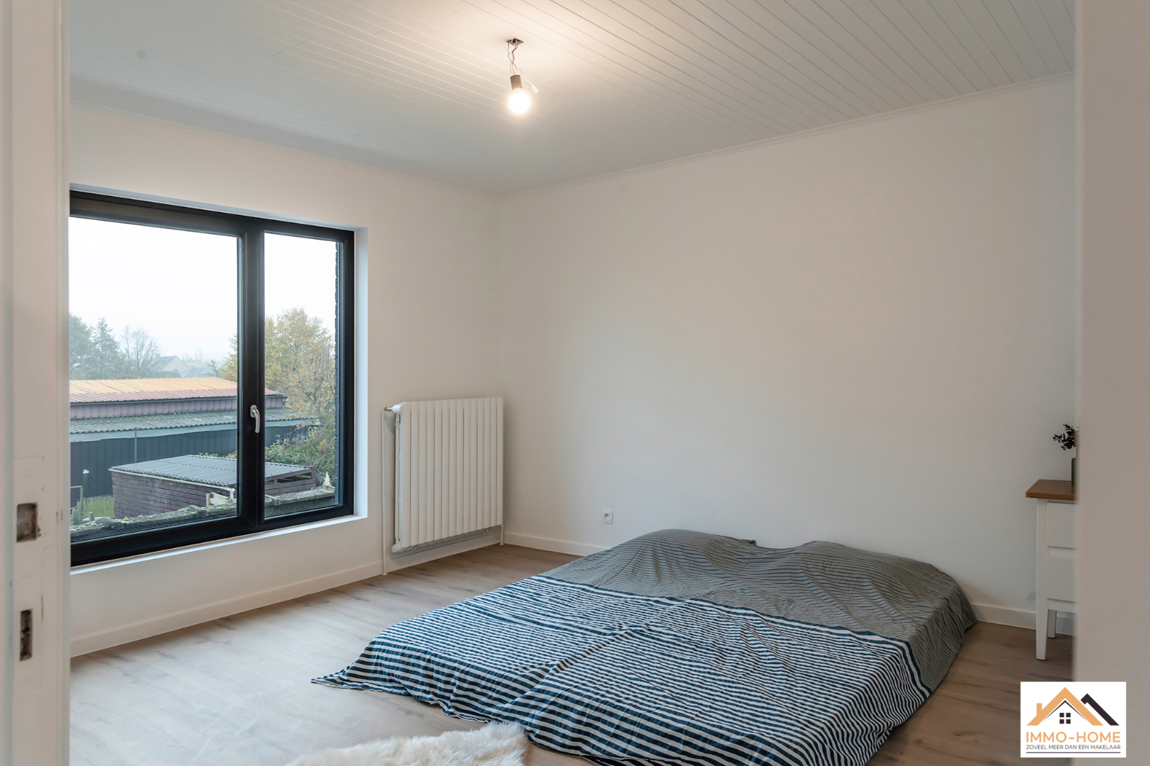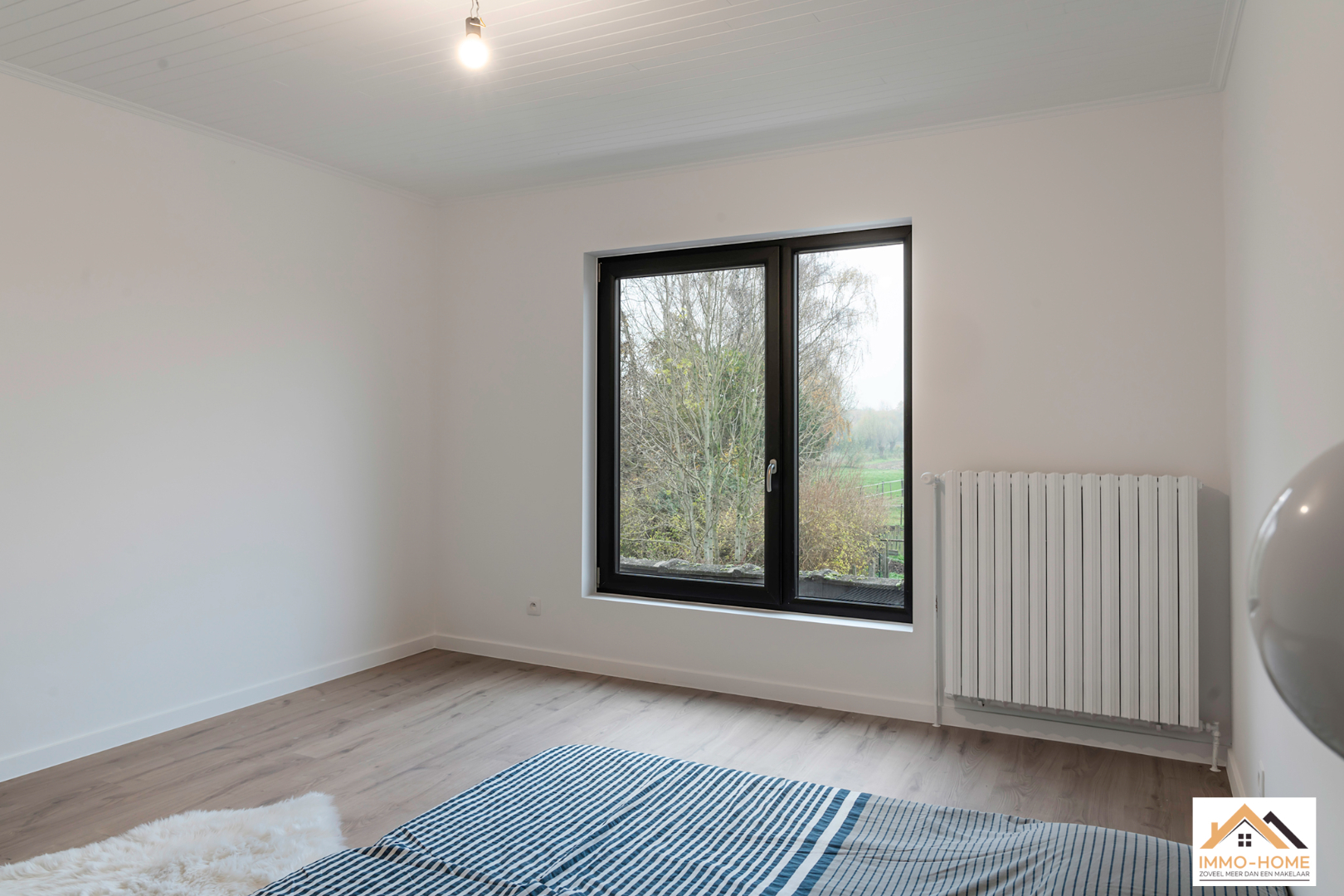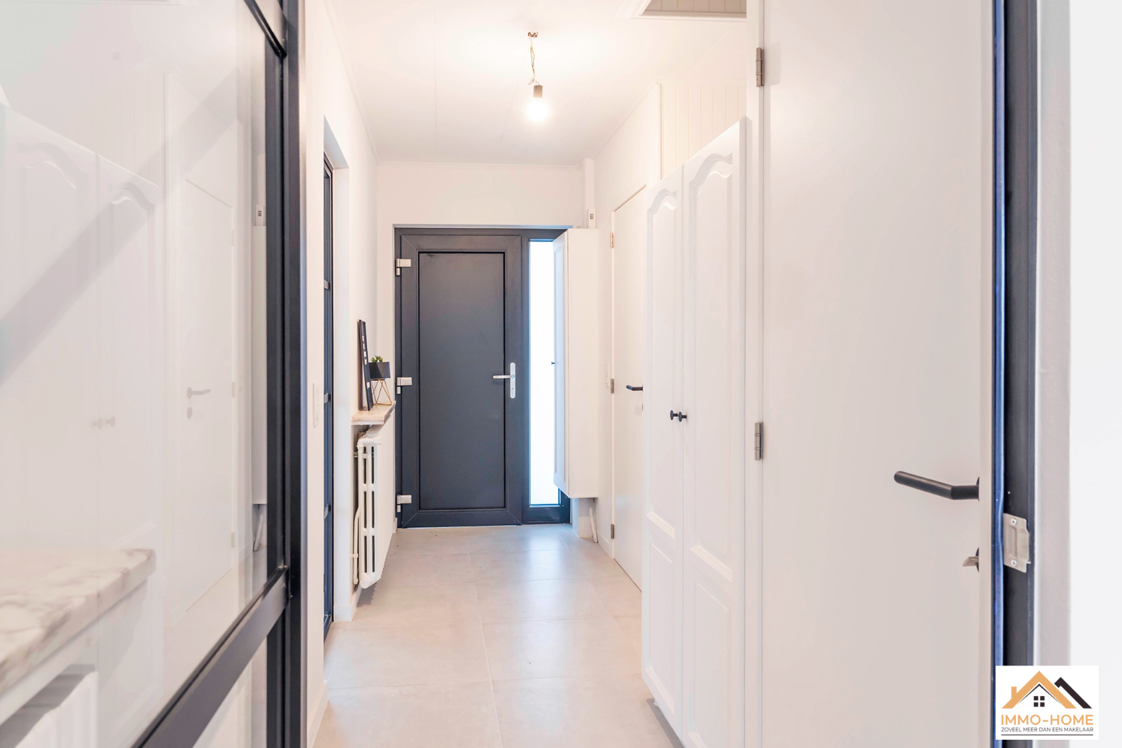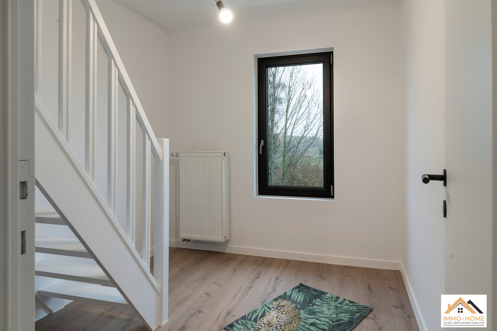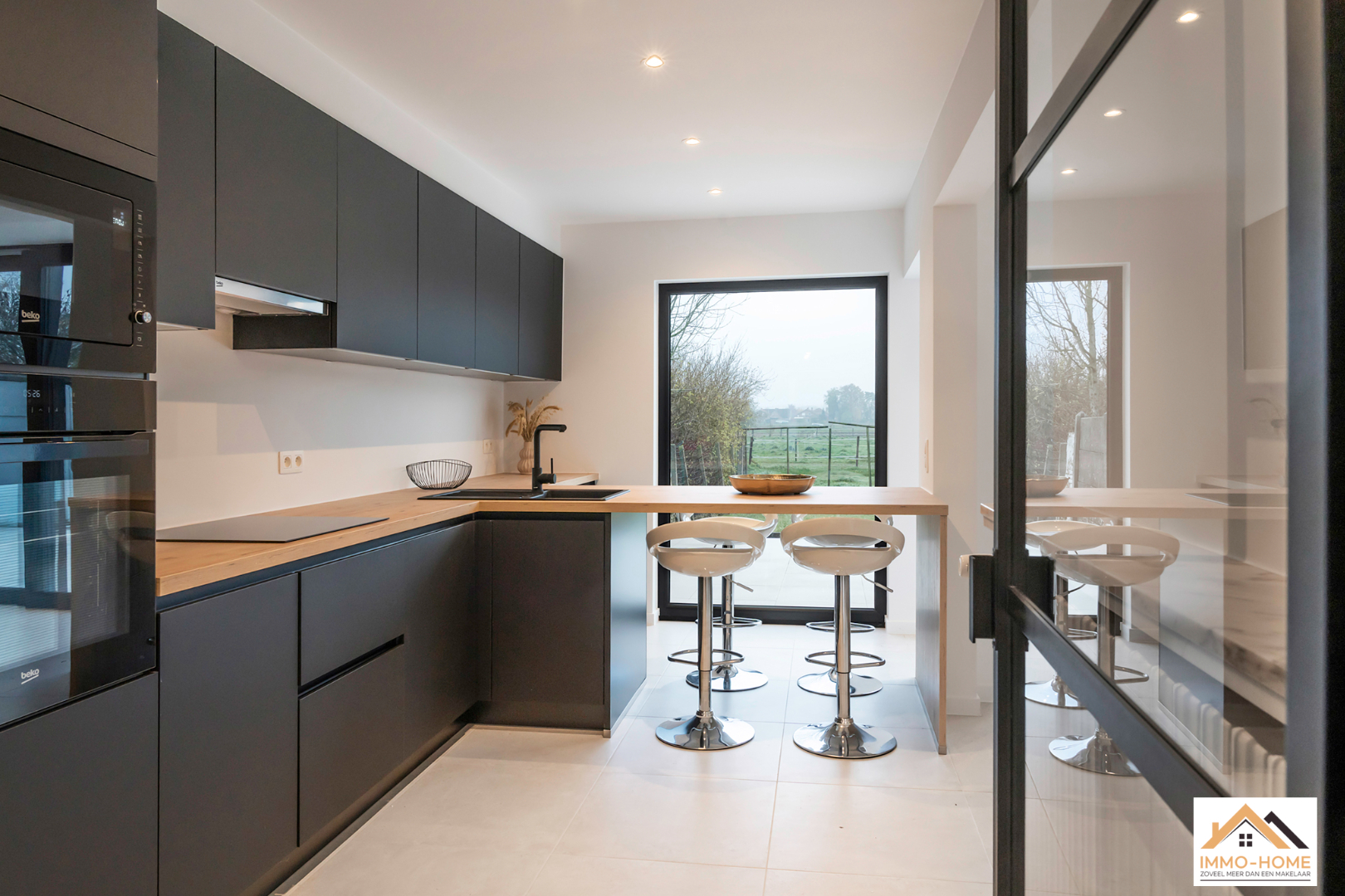 Schrijf u inDeze totaal gerenoveerde woning betreed je via een heel aangename inkomhal met gastentoilet, vestiaire en berging. De twee stijlvolle zwart metalen glasdeuren brengen je in de grote lichtrijke leefruimte met eetplaats en een nieuwe open keuken incl alle nodige nieuwe toestellen. Aan de keuken is ook een werkhoek voorzien voor thuiswerkers. De grote glaspartijen achteraan bieden naast veel lichtinval ook een prachtig zicht op de tuin met groot aangelegd terras. Achteraan de tuin heeft u een prachtig zicht op het agrarisch gebied en paarden. Het grote zuid-gerichte terras bereik je zowel via het schuifraam als langs de dubbele deur in de garage, van waaruit je ook rechtstreeks in de leefruimte kan gaan. Op de eerste verdieping beschik je over een badkamer met grote inloopdouche met regendouche, een dubbele lavabo en een tweede toilet. Ook twee ruime slaapkamers en apart bureau. Op de tweede verdieping is er nog een derde ruime slaapkamer met eigen douche, lavabo en berging. Daarnaast is er een aangename overloop die bijvoorbeeld als leeshoek, logeerkamer of dressing kan ingericht worden. Bezoekdag zaterdag 17/12: inschrijvingen via mail naar tommy@immo-home.be, geen telefonische inschrijvingen! Volg ons op Fb en insta. Voor meer info: www.immo-home.be
