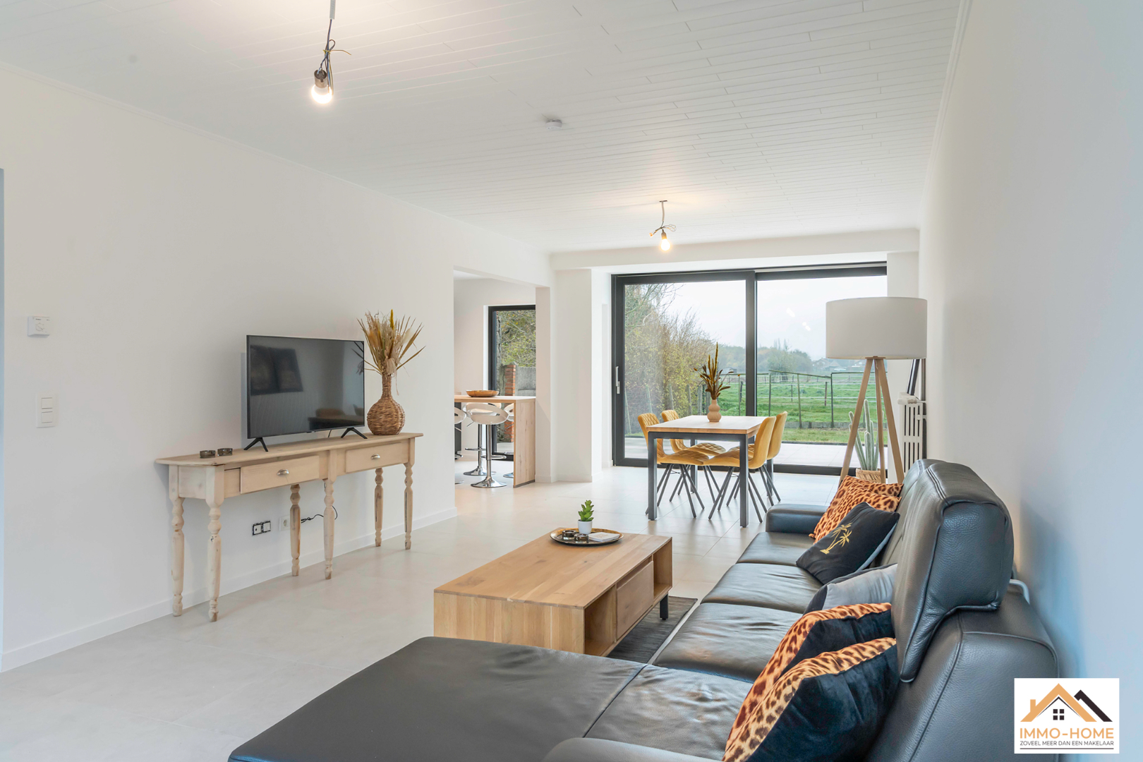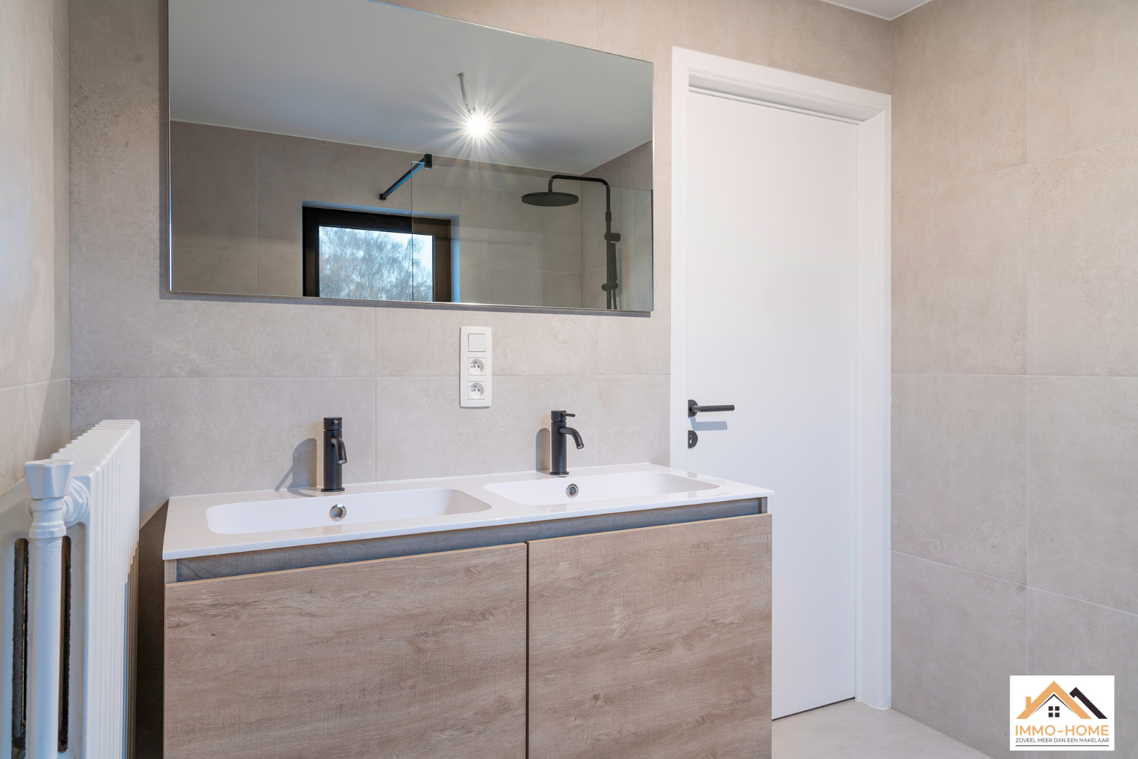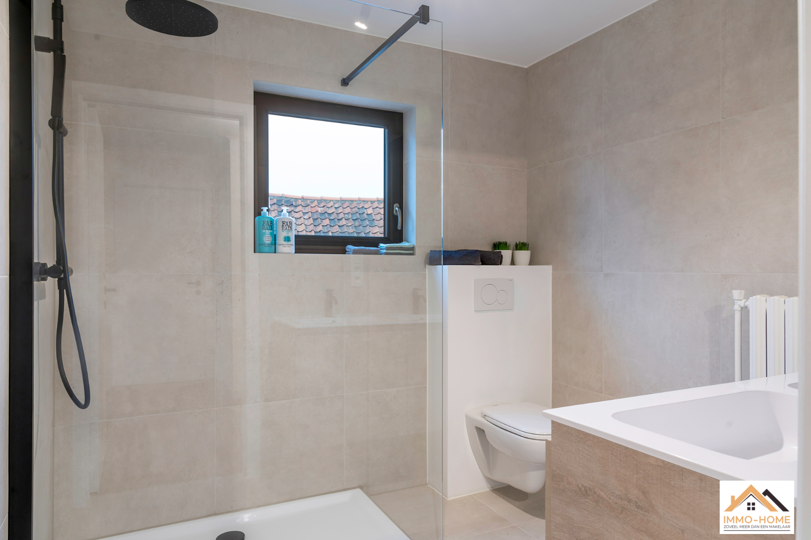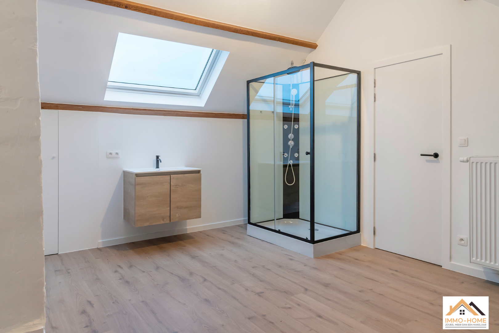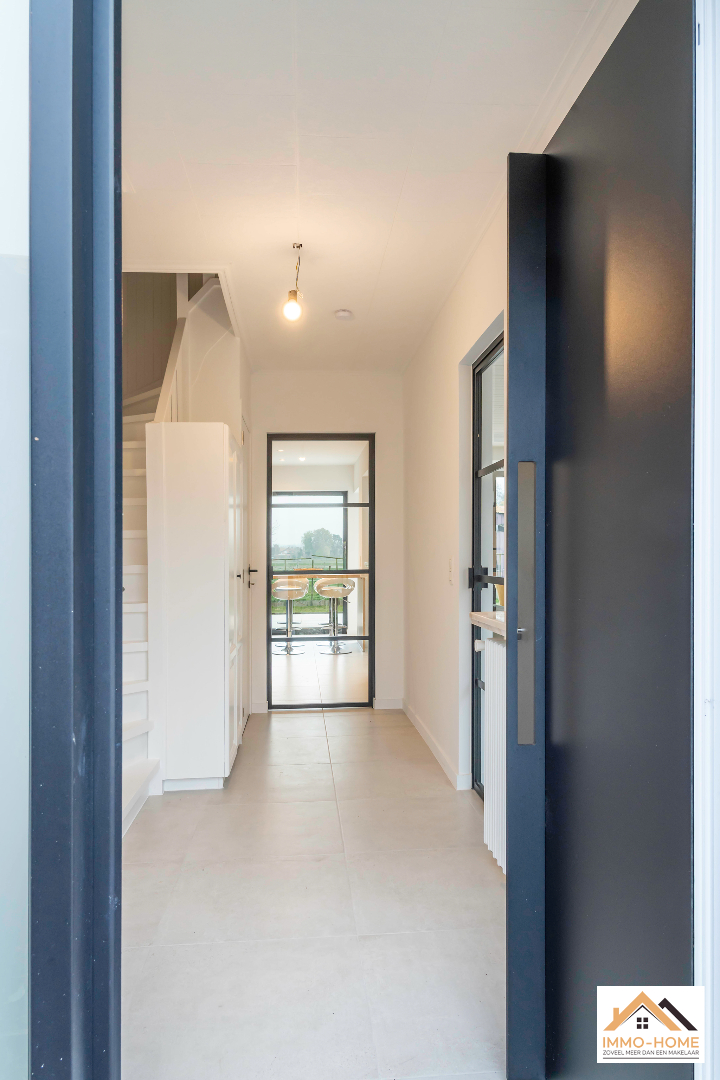 Schrijf u inDeze totaal gerenoveerde woning betreed je via een heel aangename inkomhal met gastentoilet, vestiaire en berging. De twee stijlvolle zwart metalen glasdeuren brengen je in de grote lichtrijke leefruimte met eetplaats en een nieuwe open keuken incl alle nodige nieuwe toestellen. Aan de keuken is ook een werkhoek voorzien voor thuiswerkers. De grote glaspartijen achteraan bieden naast veel lichtinval ook een prachtig zicht op de tuin met groot aangelegd terras. Achteraan de tuin heeft u een prachtig zicht op het agrarisch gebied en paarden. Het grote zuid-gerichte terras bereik je zowel via het schuifraam als langs de dubbele deur in de garage, van waaruit je ook rechtstreeks in de leefruimte kan gaan. Op de eerste verdieping beschik je over een badkamer met grote inloopdouche met regendouche, een dubbele lavabo en een tweede toilet. Ook twee ruime slaapkamers en apart bureau. Op de tweede verdieping is er nog een derde ruime slaapkamer met eigen douche, lavabo en berging. Daarnaast is er een aangename overloop die bijvoorbeeld als leeshoek, logeerkamer of dressing kan ingericht worden. Bezoekdag zaterdag 17/12: inschrijvingen via mail naar tommy@immo-home.be, geen telefonische inschrijvingen! Volg ons op Fb en insta. Voor meer info: www.immo-home.be
