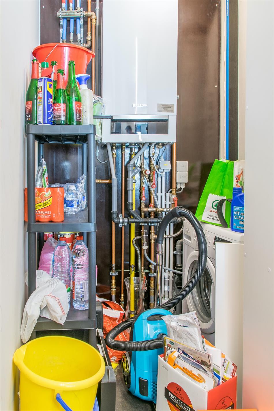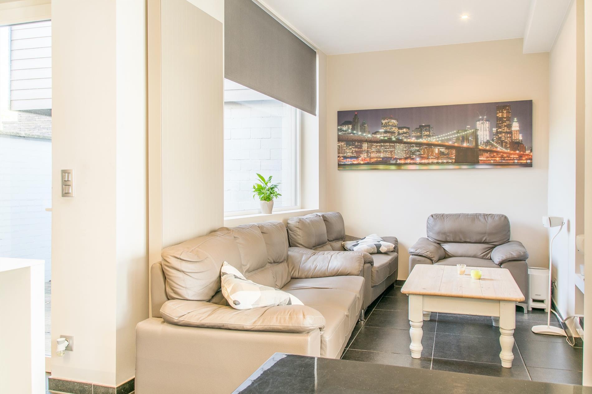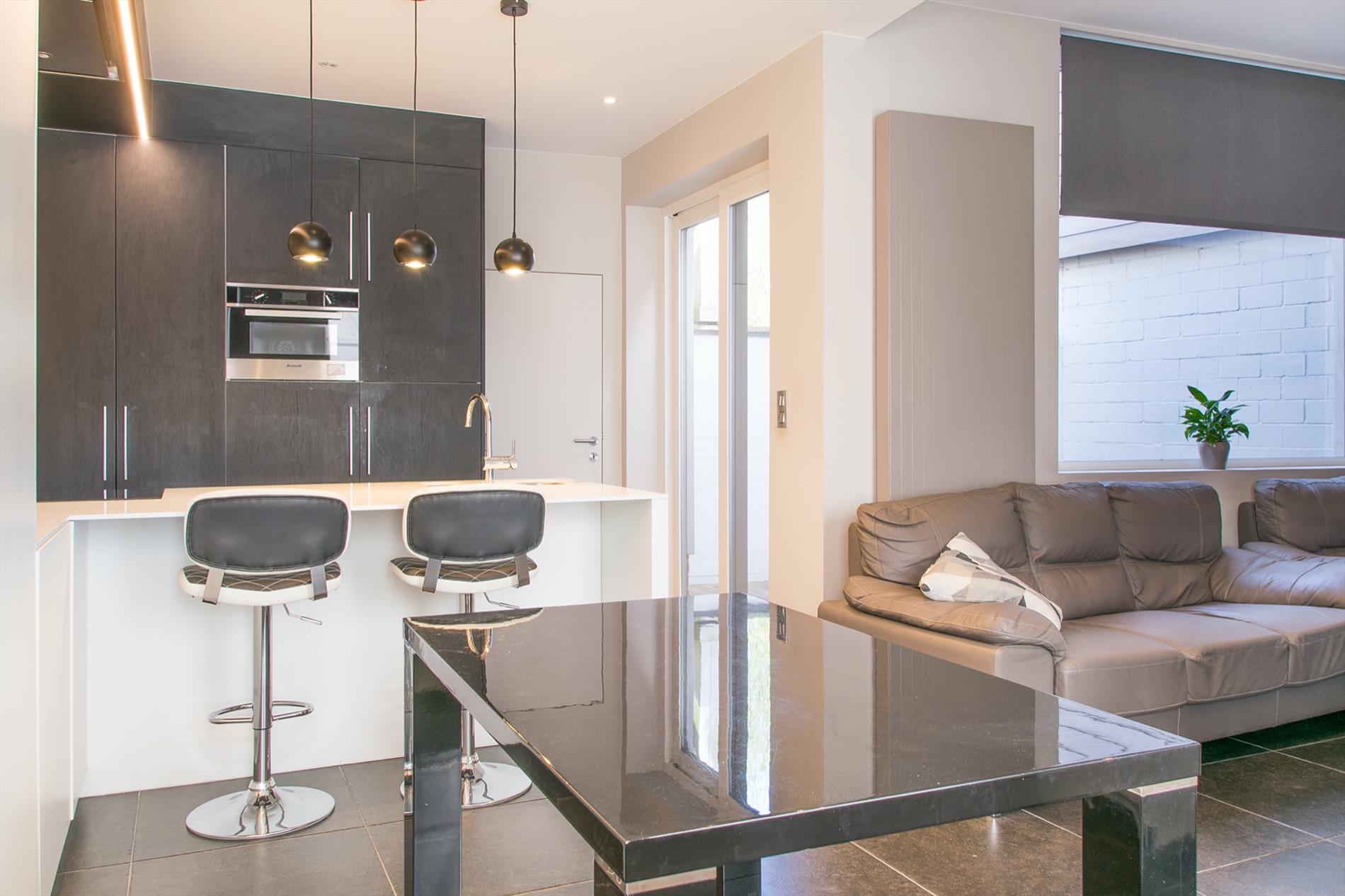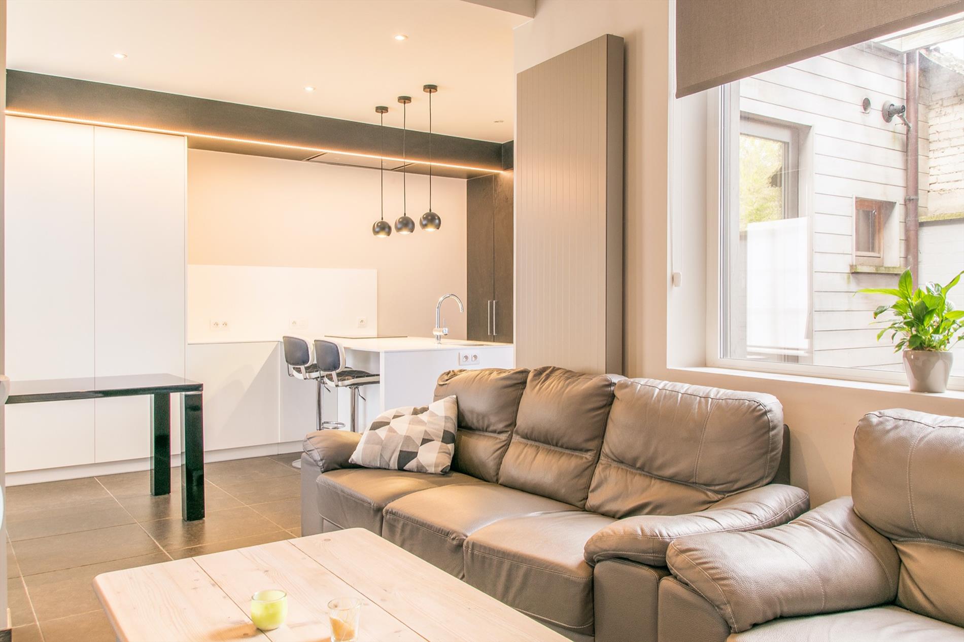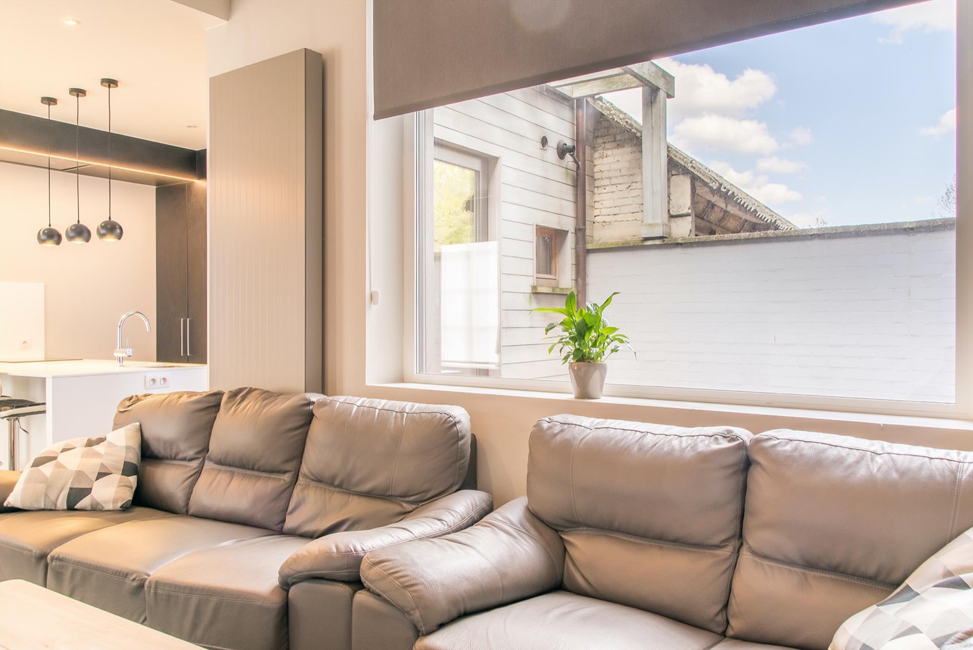Deze zeer mooi gerenoveerde HOB is gelegen in het dorp van Zeveneken, hier werd dan ook geopteerd om de duurzaamste materialen te gebruiken. Via de inkomhal met vestiaire kom je in de moderne leefruimte met ingemaakte kasten en een gezellige zithoek met TV-kast. De strakke, moderne open keuken met kookeiland nodigt uit tot gezellig kokerellen en een verborgen technische ruimte/wasplaats is ingewerkt in de kastenwand. Daarnaast bevindt zich ook het gastentoilet. Je hebt overal een open zicht naar de binnenkoer aan de achterzijde van de woning (te bereiken via een schuifdeur in de keuken). Op de eerste verdieping brengt de aangename overloop (in massieve parket) je naar de badkamer met de prachtige keien-vloer (met bad, douche en tweede toilet). De grootste slaapkamer bereik je via de plafondhoge franse eiken deur en de 2de slaapkamer is aan de andere zijde (12-8 m2), in beide kamers zijn ingemaakte kasten. Er is ook overal raamdecoratie en moderne verlichting voorzien. Onmiddellijk vrij in overleg. EPC 158.