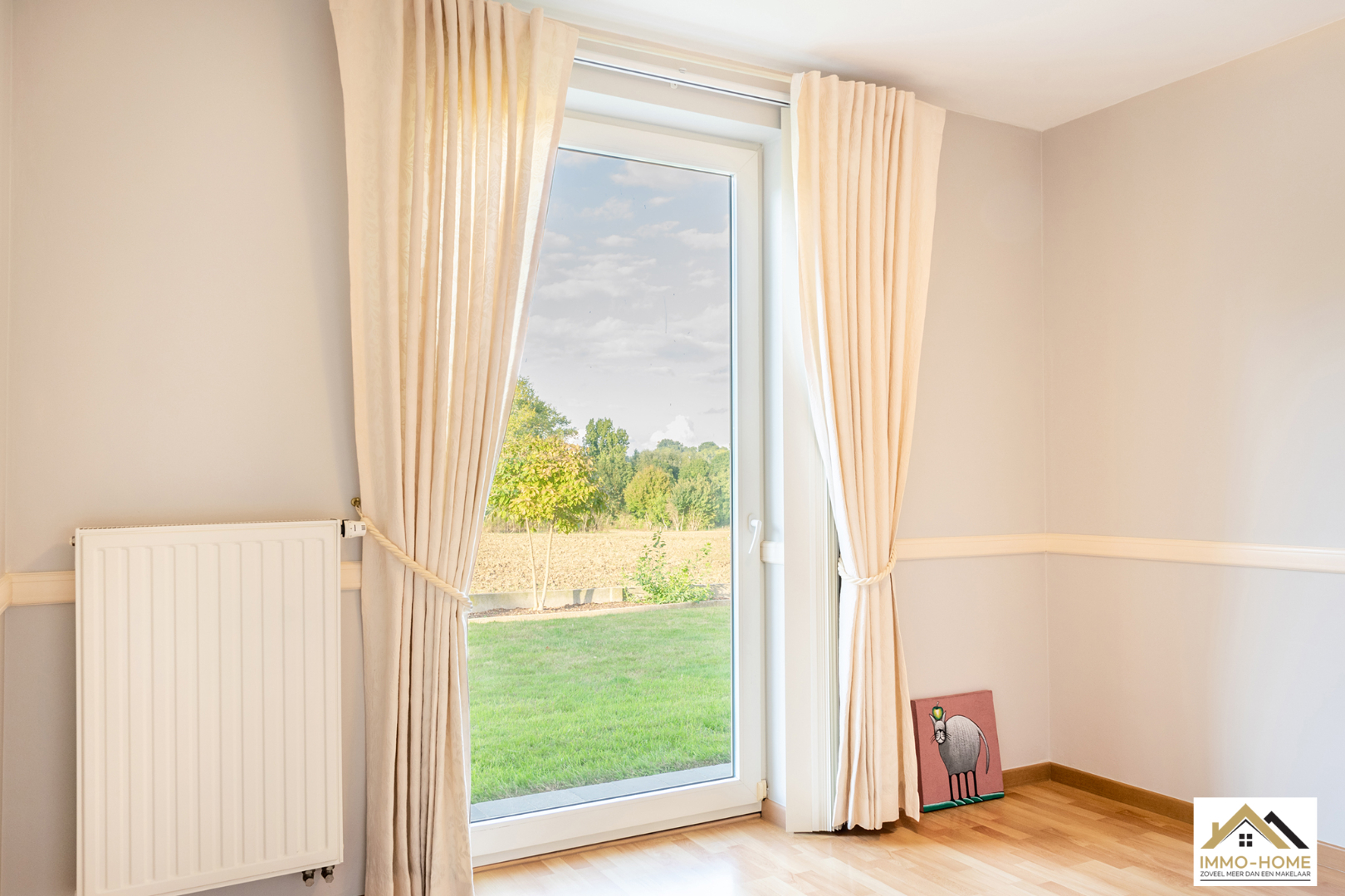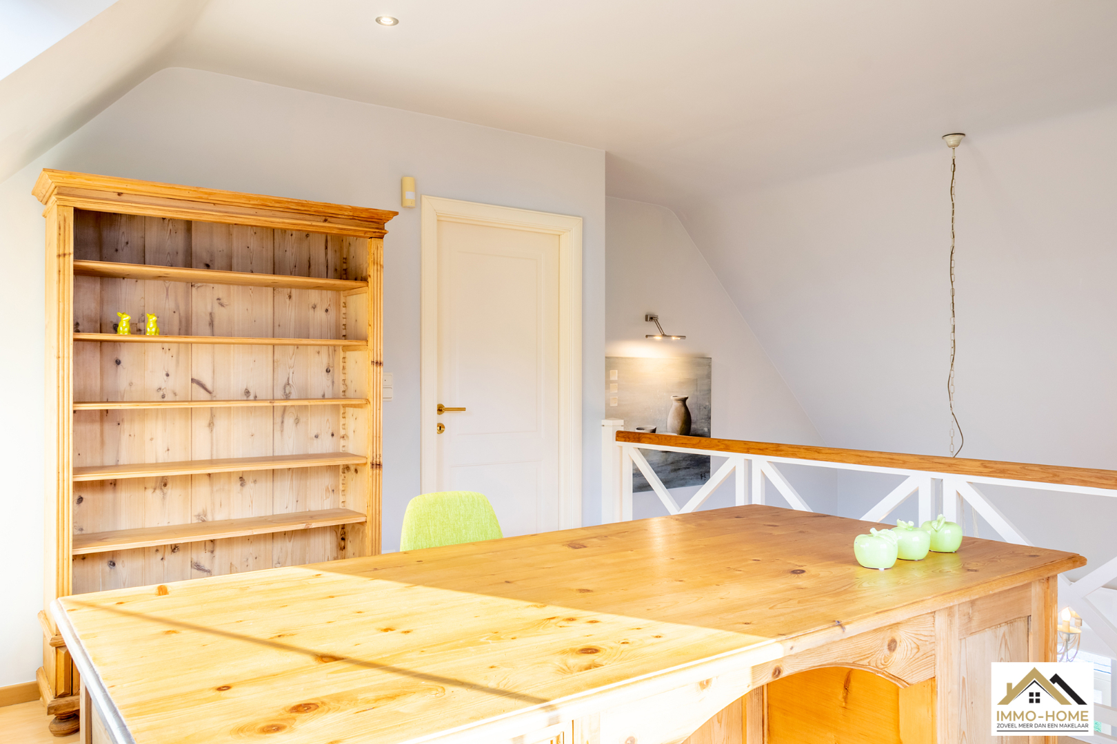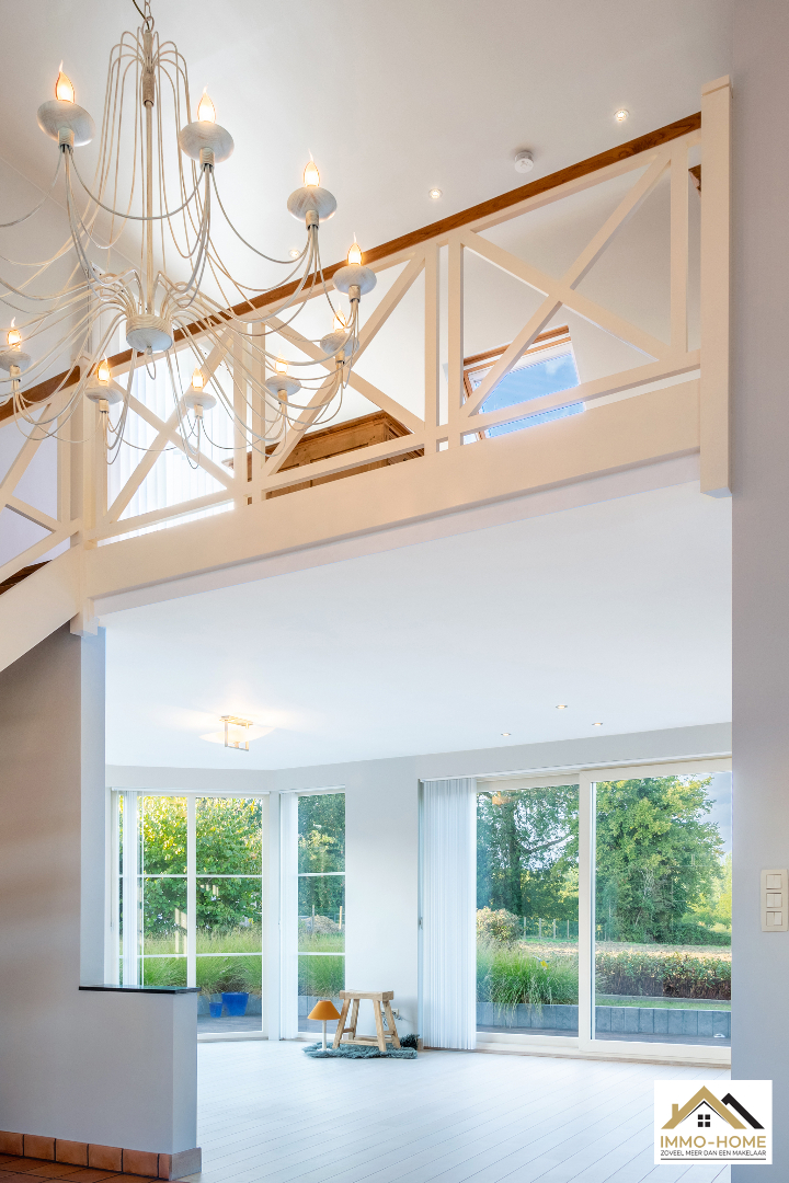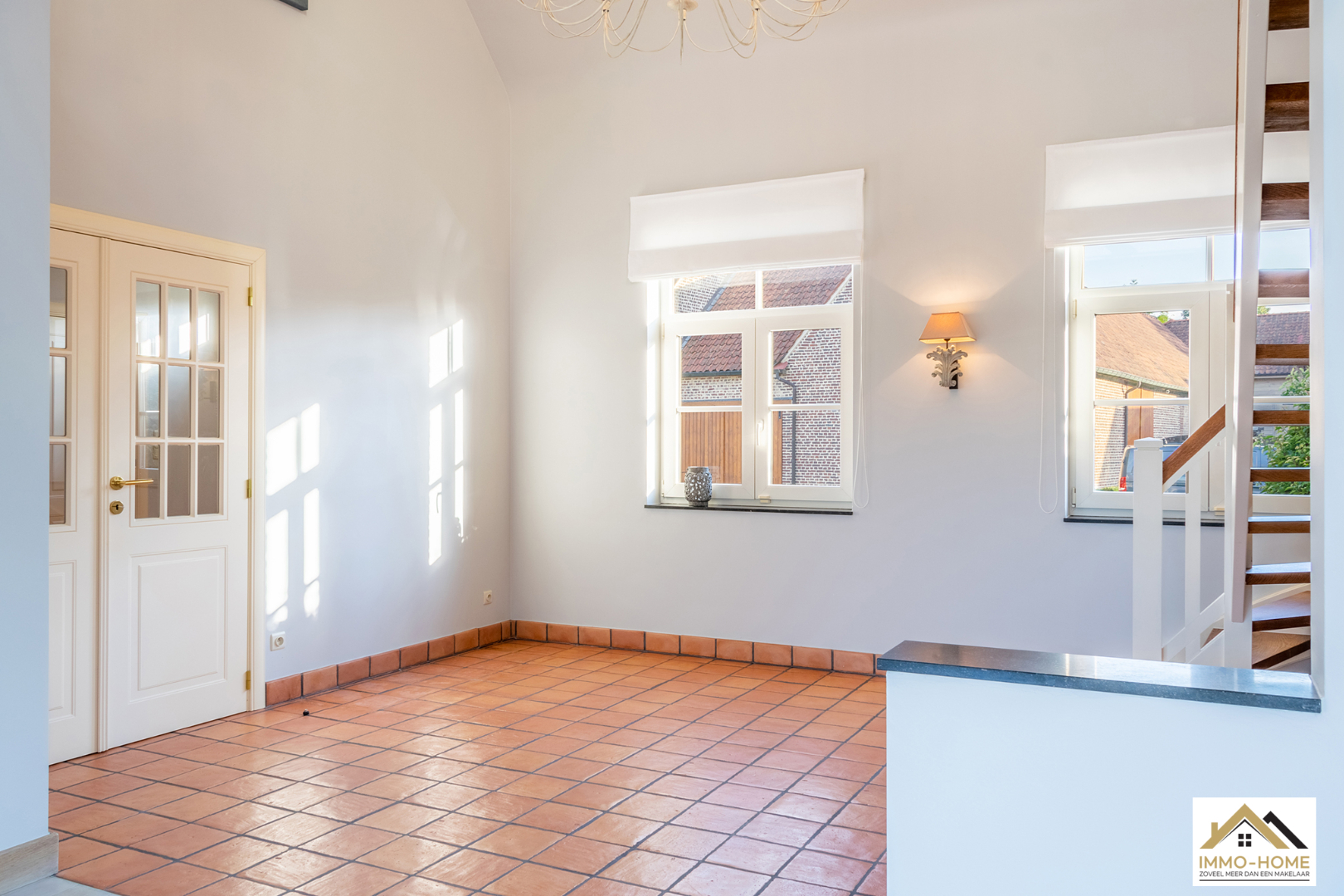 Schrijf u inBezoekdag volzet! Deze riante villa is ongetwijfeld een unieke huuropportuniteit voor iedereen die wil wonen in een landelijke omgeving. Via de statige inkomhal met gastentoilet kom je in zowat alle ruimtes op het gelijkvloers. Eerst en vooral de open leefruimte, met een fenomenaal uitzicht op het achterland. Naast de open keuken met kookeiland, zorgt de combinatie van de massieve houten vloer met de houtkachel en de open trap voor een zeer aangename sfeer. Je beschikt hier bovendien ook over vloerverwarming. Verderop bevinden zich de eerste slaapkamer en de badkamer met ligbad, douche en een tweede toilet. Op het einde van de gang bevindt zich de garage, met daaronder een handige kelder. Op de eerste verdieping is er op de mezzanine een bureel ingericht, en daarachter beschik je over een heel ruime tweede slaapkamer met aansluitende grote dressing. Op het mooie terras geniet je van het buitenleven, en in het tuinhuis is er nog extra opbergruimte. In de huurprijs is het grote tuinonderhoud inbegrepen, en met de zonnepanelen voorzie je in je eigen energie. Bezoekdag woensdagavond 19/10: inschrijvingen via mail naar tommy@immo-home.be, geen telefonische inschrijvingen! Volg ons op Fb en insta. Voor meer info: www.immo-home.be