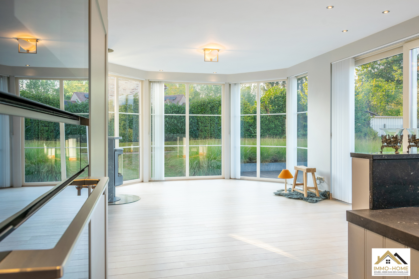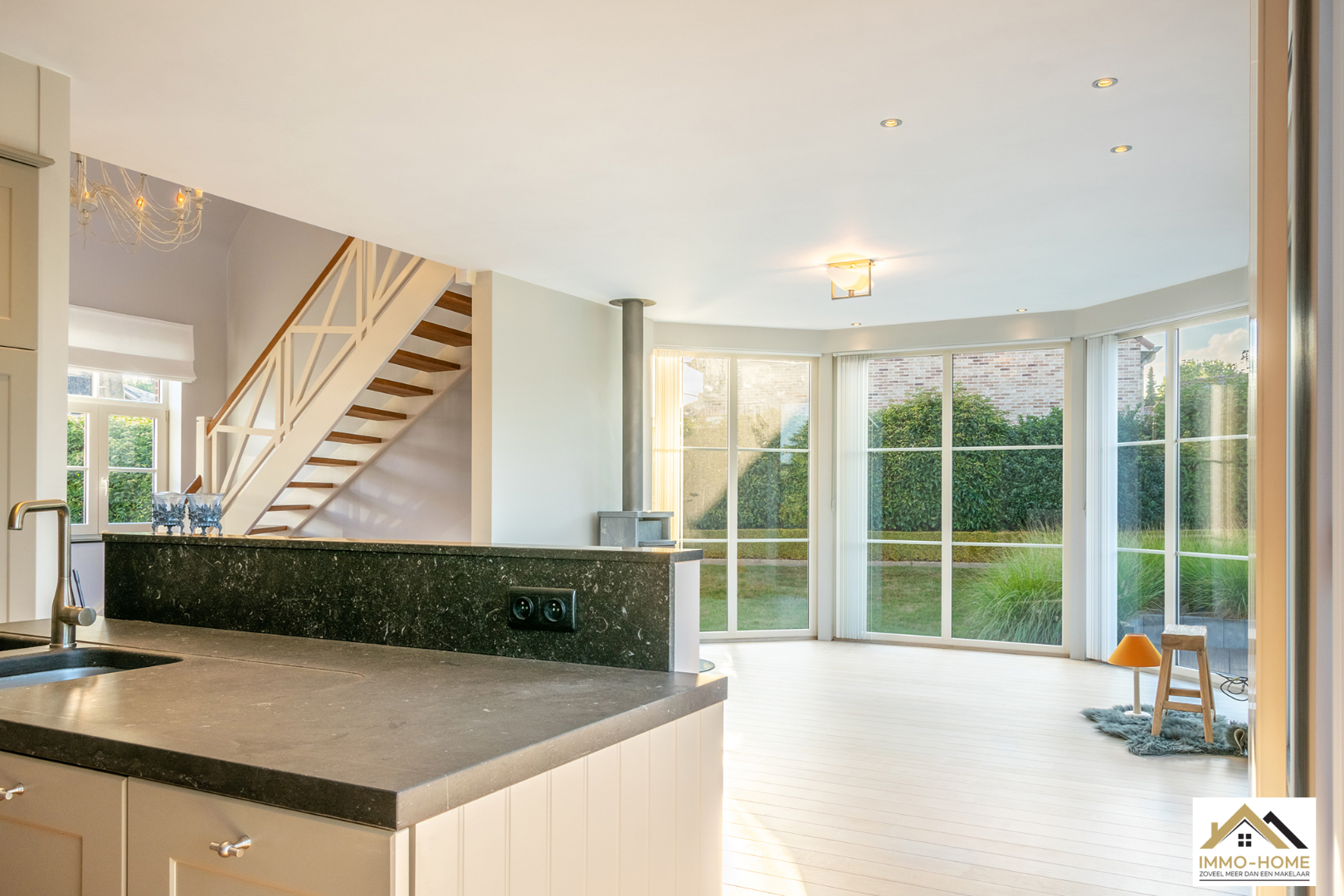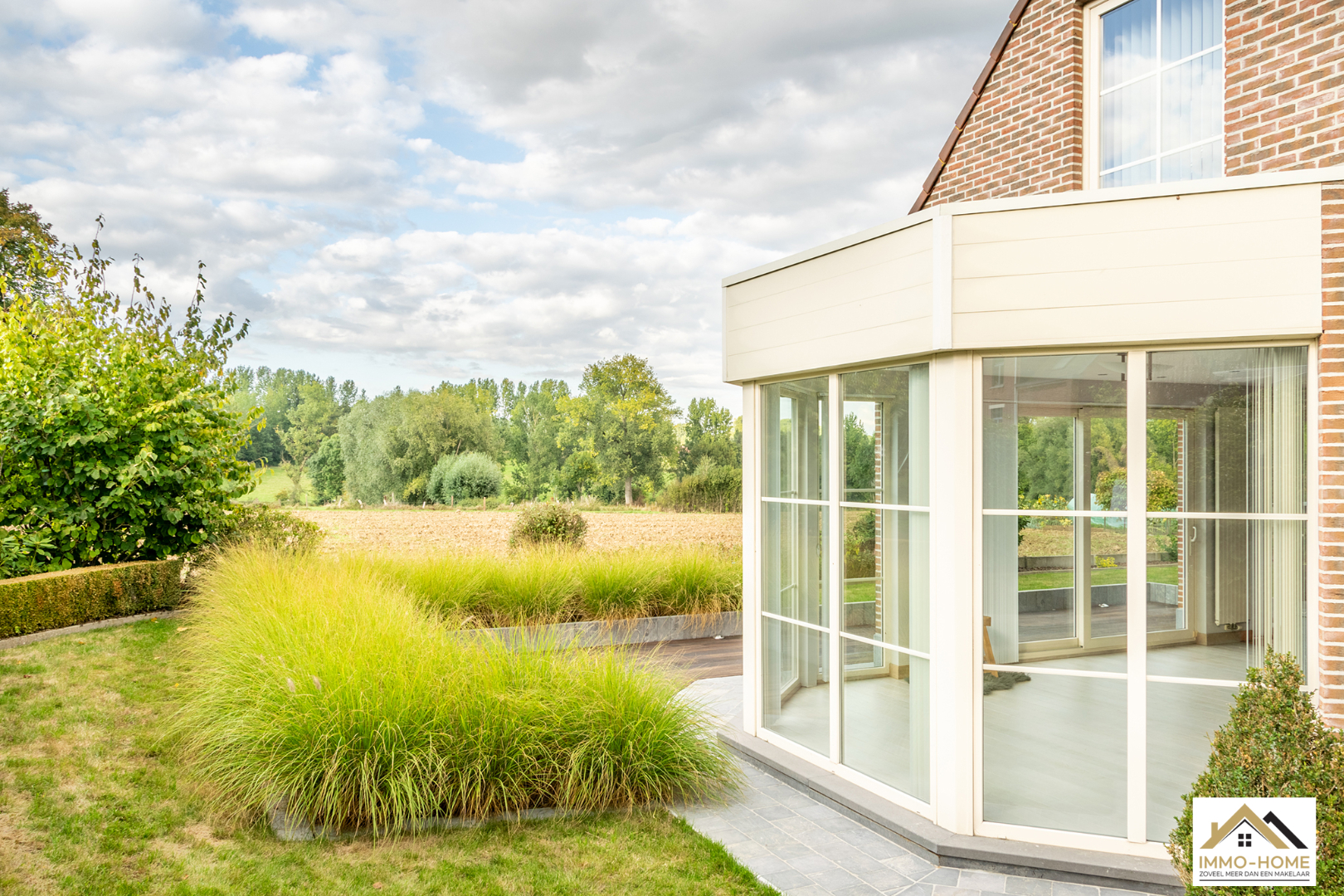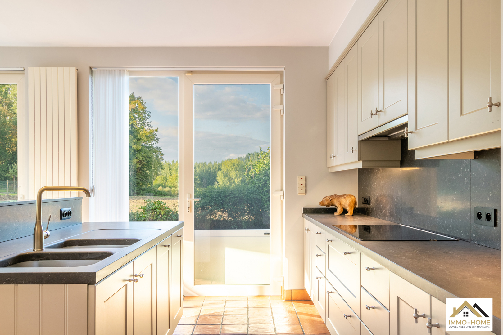 Schrijf u inBezoekdag volzet! Deze riante villa is ongetwijfeld een unieke huuropportuniteit voor iedereen die wil wonen in een landelijke omgeving. Via de statige inkomhal met gastentoilet kom je in zowat alle ruimtes op het gelijkvloers. Eerst en vooral de open leefruimte, met een fenomenaal uitzicht op het achterland. Naast de open keuken met kookeiland, zorgt de combinatie van de massieve houten vloer met de houtkachel en de open trap voor een zeer aangename sfeer. Je beschikt hier bovendien ook over vloerverwarming. Verderop bevinden zich de eerste slaapkamer en de badkamer met ligbad, douche en een tweede toilet. Op het einde van de gang bevindt zich de garage, met daaronder een handige kelder. Op de eerste verdieping is er op de mezzanine een bureel ingericht, en daarachter beschik je over een heel ruime tweede slaapkamer met aansluitende grote dressing. Op het mooie terras geniet je van het buitenleven, en in het tuinhuis is er nog extra opbergruimte. In de huurprijs is het grote tuinonderhoud inbegrepen, en met de zonnepanelen voorzie je in je eigen energie. Bezoekdag woensdagavond 19/10: inschrijvingen via mail naar tommy@immo-home.be, geen telefonische inschrijvingen! Volg ons op Fb en insta. Voor meer info: www.immo-home.be