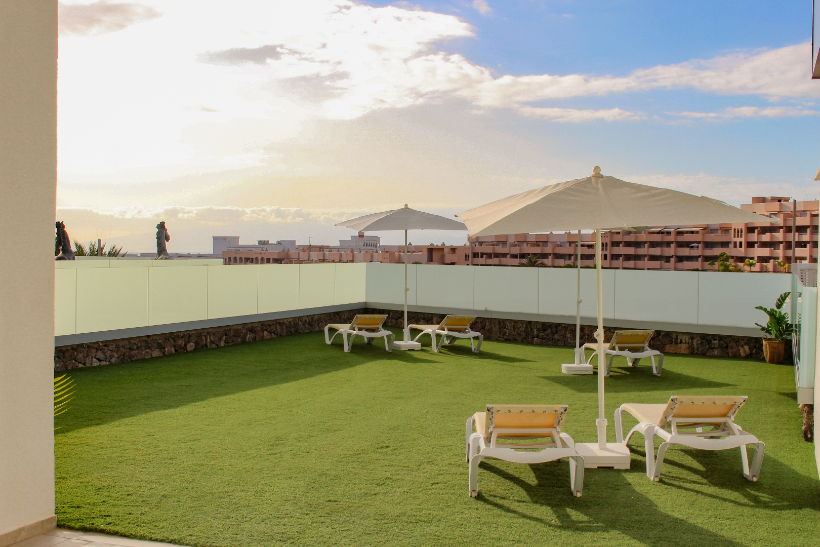 Dit appartement is gelegen op begane grond met een enorm terras. De woonkamer is met toegang tot het gedeeltelijk overdekt terras met uitzicht op de oceaan en het naburige eiland van La Gomera. Er is een volledig ingerichte moderne open keuken en een kleine berging met wasmachine in de woning. De eigendom wordt verkocht inclusief de ondergrondse parkeerplaats. Dit is eenluxecomplex met liften en een mooi gemeenschappelijk verwarmd zwembad. De gemeenschappelijke kosten van VVE/Syndic bedraagt €208/maand.