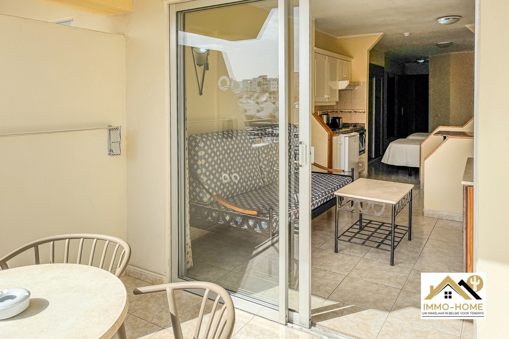 Deze uitzonderlijk ruime studio heeft een ruime badkamer met ligbad, een apart slaapgedeelte dat je perfect kan afscheiden, een keuken en woonruimte met aanpalend een zeer mooi en ruim terras. Of je nu wilt genieten van een rustige avond op je eigen terras of juist het bruisende nachtleven van Costa Adeje wilt ervaren, alles kan door de perfecte ligging.