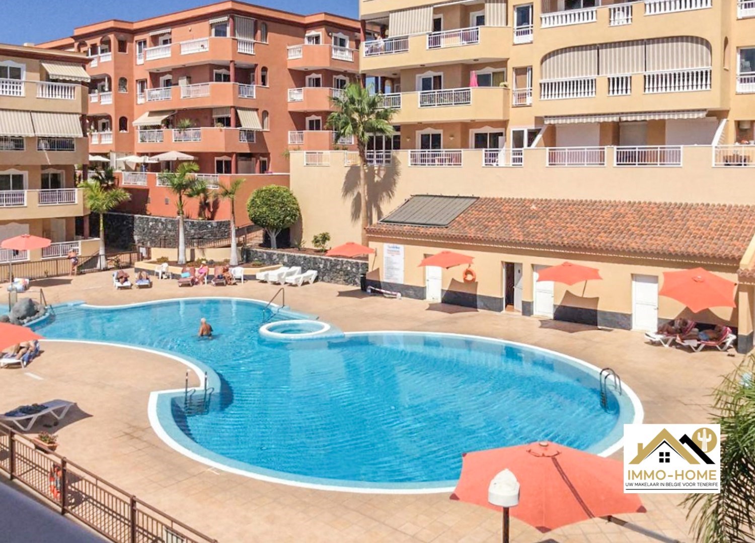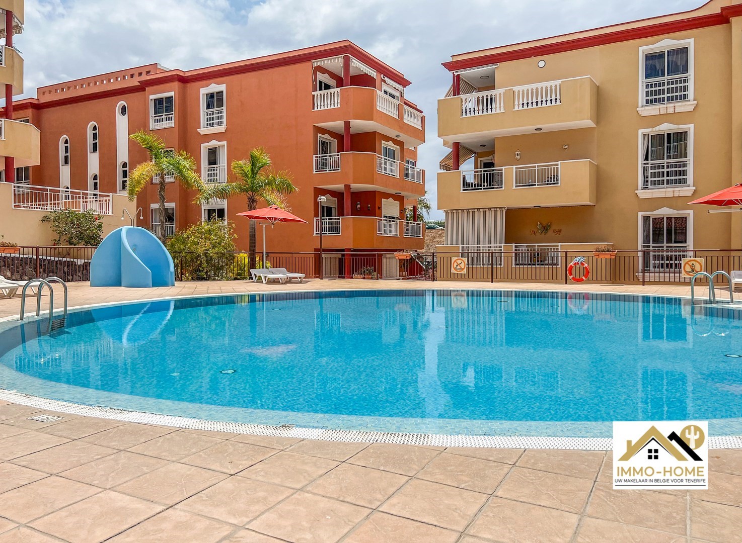 Het gemeenschappelijk (verwarmd) zwembad is volledig vernieuwd (incl nieuwe ligzetels en parasols).