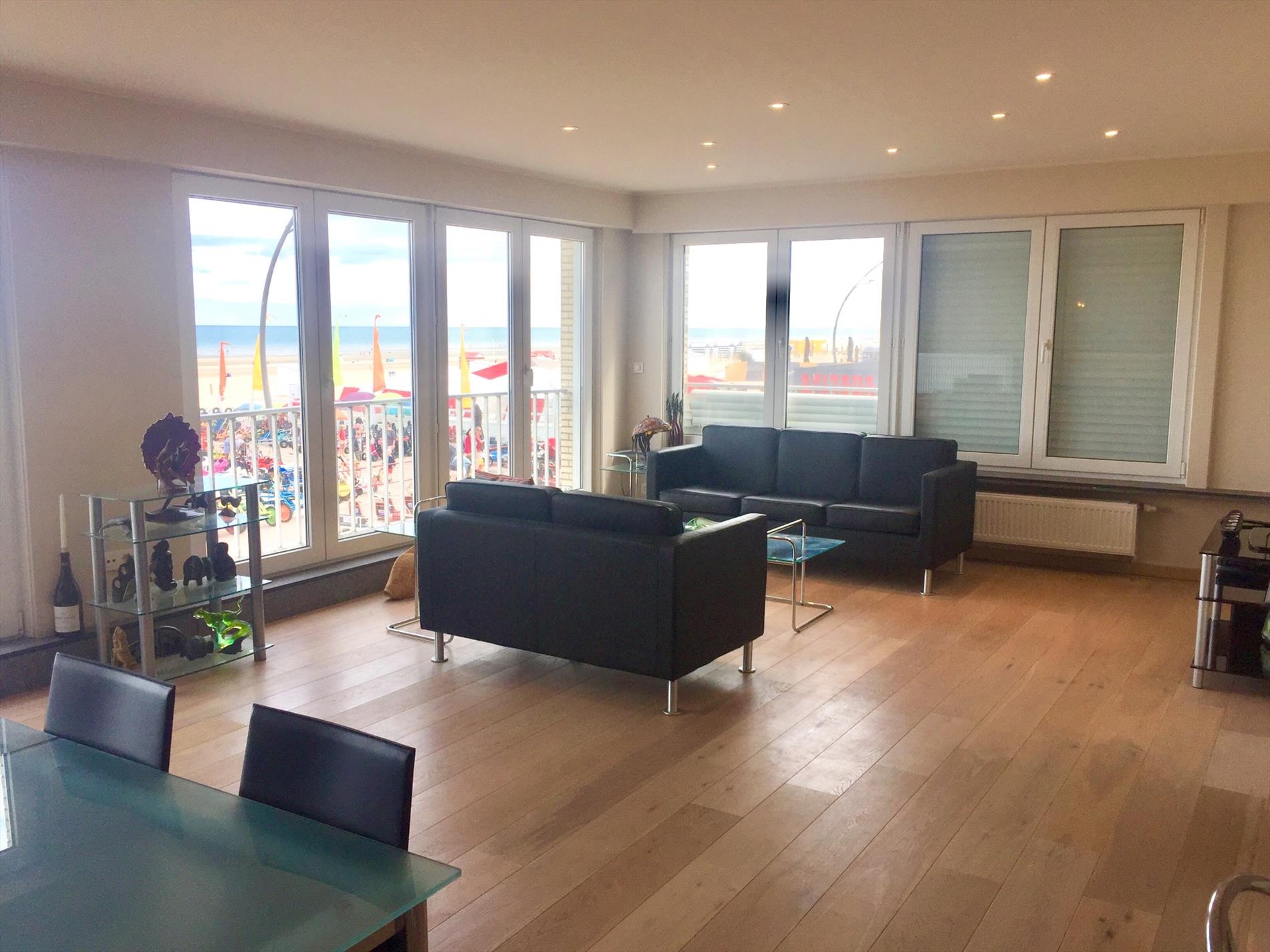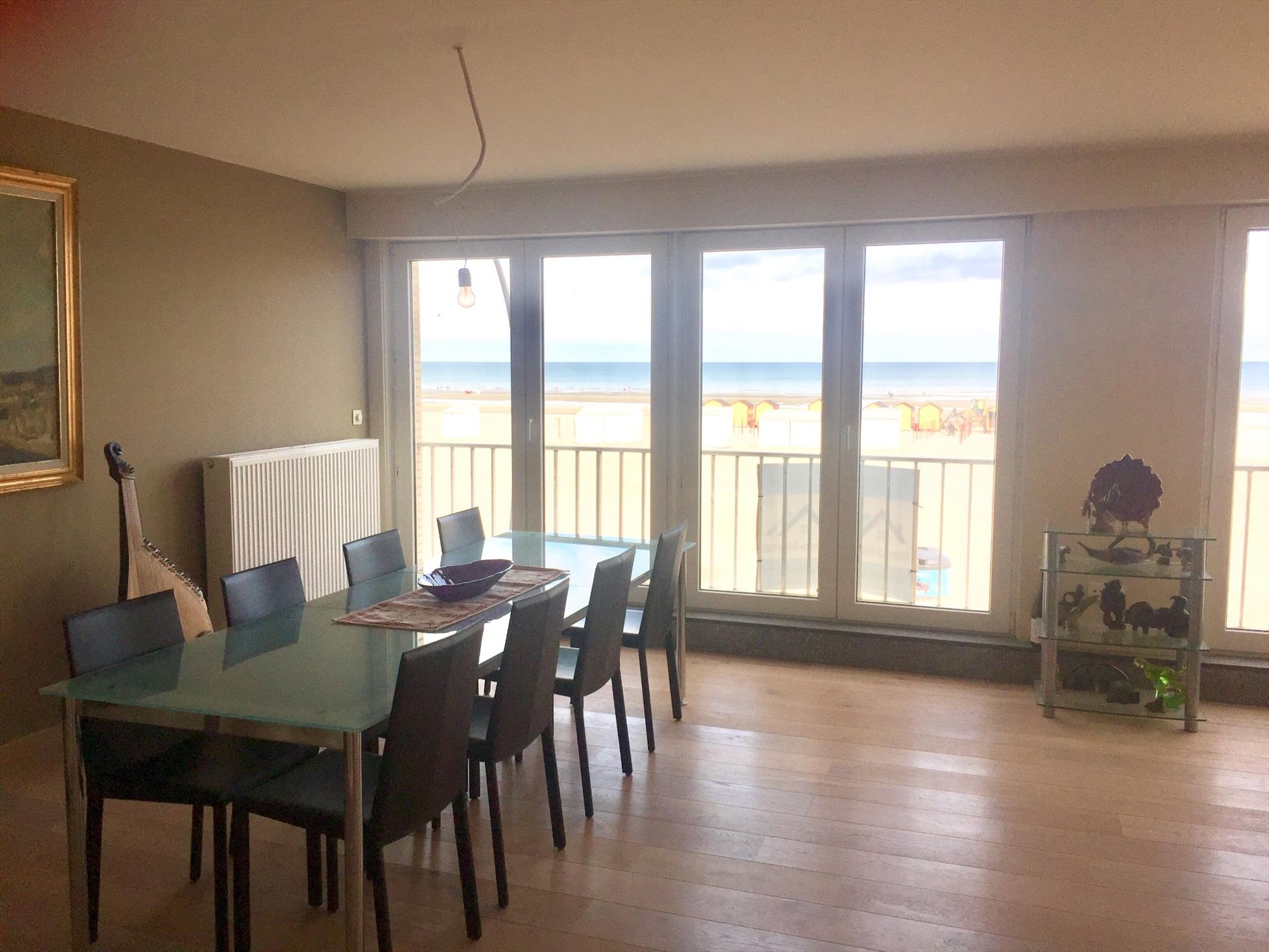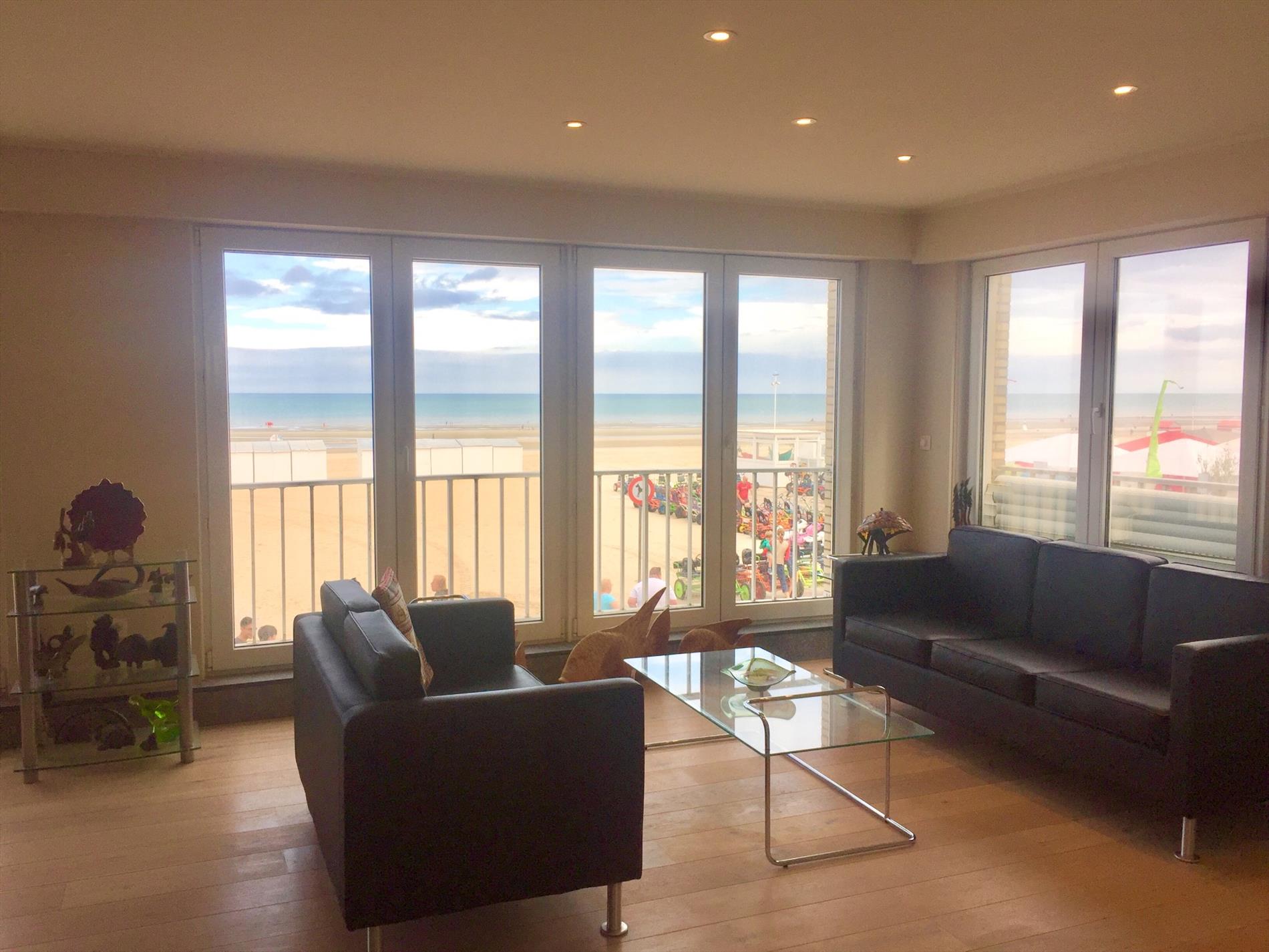 Schrijf u inDit zeer ruim en recent gerenoveerd hoek-appartement is gelegen op de zeedijk met frontaal zeezicht. U komt binnen via de lange gang met ingebouwde praktische speigelkasten. Via de glazen deur komt u terecht in de zeer ruime woonkamer met eetplaats en open keuken met alle nodige toestellen. Vanuit deze open ruimtes kan u genieten van het adembenemende zeezicht en de zonsondergang . Er zijn 2 grote slaapkamers,gastentoilet, berging en een ruime badkamer met dubbel lavabomeubel,aparte douche,ligbad en tweede toilet. Er zijn aan alle ramen dubbele beglazing en rolluiken voorzien. Ook overal mooie parket die volledig doorloopt, uitgezonderd de badkamer,daar is een antraciet vloer aanwezig. Er is ook een privé kelder en fietsenstalling aanwezig. De inkomhal is gemeenschappelijk. Opp app 111m2!!! Plopsaland en autosnelweg zijn vlakbij,openbaar vervoer op minder dan 0,5 km. Aardgas/volledig nieuwe ketel. EPC 215 !!