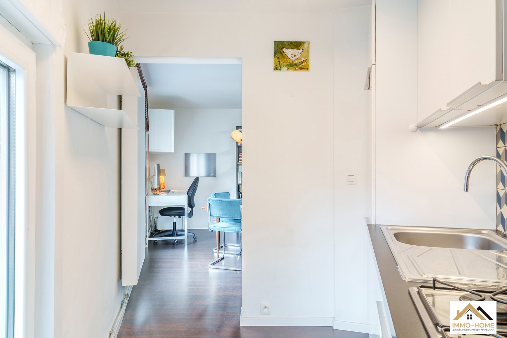 Schrijf u inDit mooi gerenoveerde appartement is gelegen op een steenworp van het historische centrum van Gent, maar toch geniet je hier vooral van de rust van de omgeving. Via de centrale traphal bereik je de eigen inkomhal op de tweede verdieping. Zo kom je in de knusse leefruimte waar je naast het gezellige vuur kunt genieten van de winterse avonden. Aanpalend is er een compacte maar handige keuken. De ruime slaapkamer met airco bevindt zich naast de leefruimte. In de inkomhal is er een ingemaakte kast voorzien waar onder andere de wasmachine in verborgen zit. In de badkamer is er een douche en toilet. Op de overloop beschik je nog over een extra bergruimte. De centrale verwarming is recent vernieuwd. Er is ook een afgesloten fietsenberging waar plaats is voor twee fietsen. Dit is een ideaal pand om te verhuren of investering voor studerende kinderen. Inschrijvingen via mail naar tommy@immo-home.be, geen telefonische inschrijvingen! Volg ons op Fb en insta. Voor meer info: www.immo-home.be