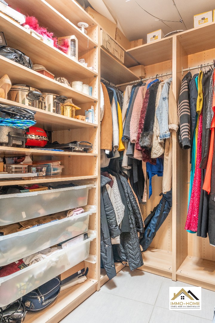 Dit appartement is gelegen op de tweede verdieping van het complex, en bereik je via de gemeenschappelijke trap. Deze brengt je tot in een ruime inkomhal met ruimte voor een vestiaire, en zo kom je verder tot in een aangename leefruimte met een karaktervolle open keuken. Deze is ruim voorzien van opbergkasten. Aan de achterzijde van het appartement beschik je over twee ruime slaapkamers en een badkamer. De derde slaapkamer bevindt zich aan de straatkant, en middenin is er voorzien een grote dressing/opbergruimte. De badkamer met ligbad vervolledigt het plaatje.