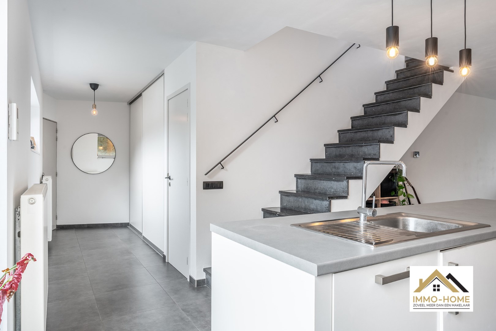Schrijf u inDit mooie hedendaagse duplex-appartement vinden we terug op de rand van Oostakker/Sint-Amandsberg/Gent, vlakbij beide centra met al hun voorzieningen. Via een lichtrijke gemeenschappelijke traphal bereik je het pand op de tweede verdieping, waar je wordt ontvangen in een mooie inkomhal met ingemaakte vestiaire en gastentoilet. In de verte staat de open keuken je al op te wachten, waar het rond het kookeiland zeker gezellig samen vertoeven is. Via de grote raampartijen aan beide zijden van de verdieping kijk je uit over de omgeving, waardoor je nooit een opgesloten gevoel krijgt. De leefruimte deelt uiteraard in hetzelfde gevoel en aangename karakter. Via de massieve trap bereik je de tweede verdieping, waar we rond de overloop twee mooie slaapkamers aantreffen. De master bedroom biedt ook toegang tot de leuke zithoek buiten, waar je afgeschermd van de omgeving kan genieten van de buitenlucht. De badkamer is voorzien van een ligbad met douchemogelijkheid, en een mooi lavabomeubel. Achteraan de woning beschik je nog over een eigen afgesloten fietsenstalling. Inschrijvingen voor bezoekdag op zaterdag 12/07 via mail naar xenia@immo-home.be, geen telefonische inschrijvingen! Volg ons op Fb en insta. Voor meer info: www.immo-home.be GRATIS SCHATTING GRATIS FINANCIEEL ADVIES