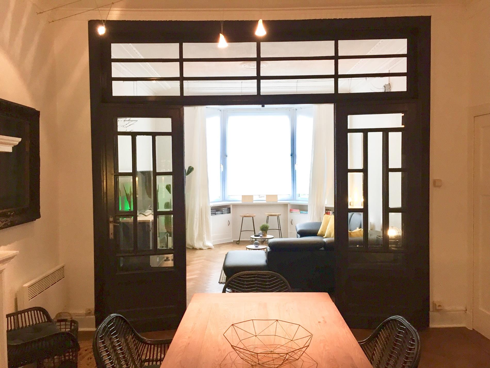 Schrijf u inVERKOCHT!!!! Dit centraal gelegen appartement heeft echt iets speciaals. Via de prachtige voordeur komt u in de inkom met ingemaakte kasten. De ruime woonkamer is voorzien van een visgraat parket die doorloopt tot in de open keuken. Je zal versteld staan van de hele hoge plafonds en de vierluiks glazen binnendeur die ook kan afgesloten worden. De eerste ruime slaapkamer heeft ook parket met een dubbel raam die verbinding geeft met het kleine gezellige terrasje met zicht op St.Paulusplein en Wapenplein. De tweede slaapkamer met hoge ingemaakte kasten is voorzien van hoogwaardige nieuwe laminaat. De berging/wasplaats heeft een nieuwe vloer, alsook de praktisch ingerichte nieuwe badkamer met douche, lavabomeubel en toilet. Het appartement is zeer vlot bereikbaar en op wandelafstand van station, haven, vismarkt, de grote Markt met zijn vele gezellige terrassen, cafeetjes en restaurantjes en de grote winkelstraat (Kapellestraat) waar de winkels iedere zondag open zijn. De wandeldijk en het strand bereikt u op nog geen 5 min wandelen. Elektr conform, incl attest. Ideaal als woonst of 2de verblijf.
