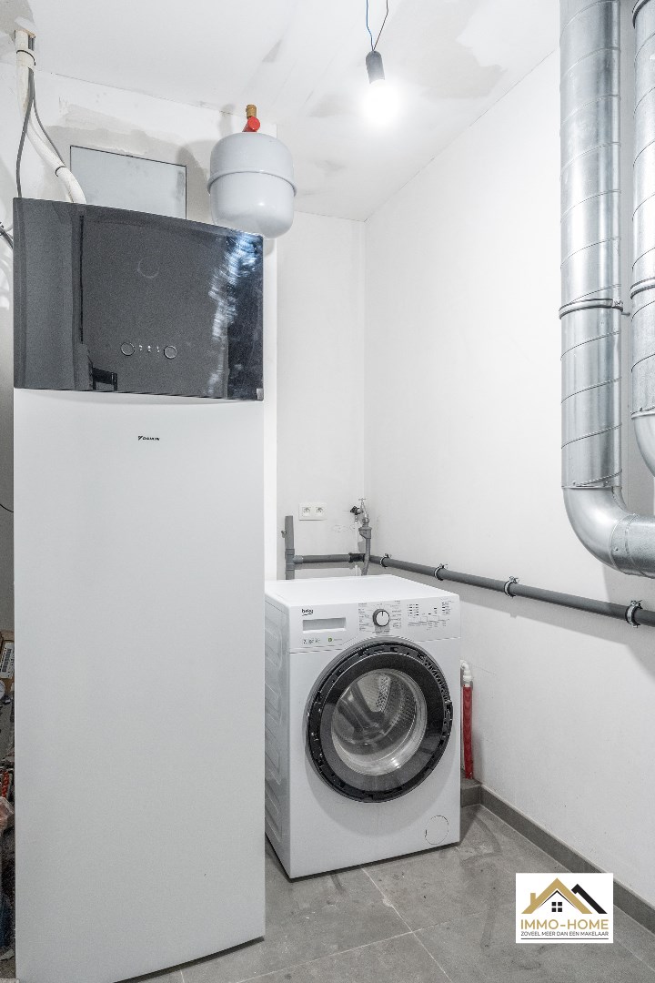 Schrijf u inDit moderne gelijkvloerse appartement ontvangt je via de voordeur die zich in de overdekte doorgang van het complex bevindt. Zo kom je in een ruime inkomhal met gastentoilet en een polyvalente ruimte (bvb als opslag- of hobbyruimte inrichtbaar). Via de glazen deur kom je tot in lichtrijke leefruimte met open keuken. Deze is praktisch ingericht en voorzien van modern kookcomfort, en de net ernaast gelegen technische ruimte biedt naast aansluitingen voor wasmachine ook nog extra opbergruimte. De enige slaapkamer bevindt zich net naast de leefruimte, en is voorzien van een open dressing-kamer en een aanpalende badkamer met een riante inloopdouche. Inschrijven voor bezoekdag via mail naar justine@immo-home.be, geen telefonische inschrijvingen! Volg ons op Fb en Insta. Voor meer info: www.immo-home.be. GRATIS SCHATTING & GRATIS FINANCIEEL ADVIES