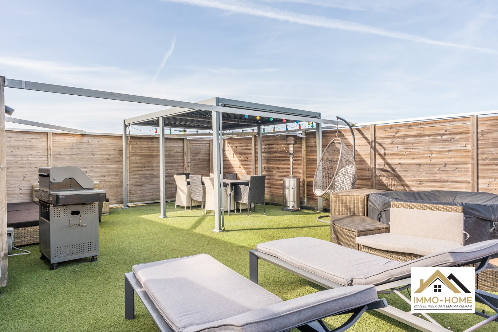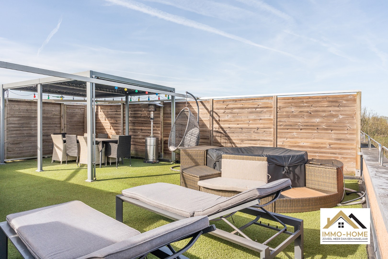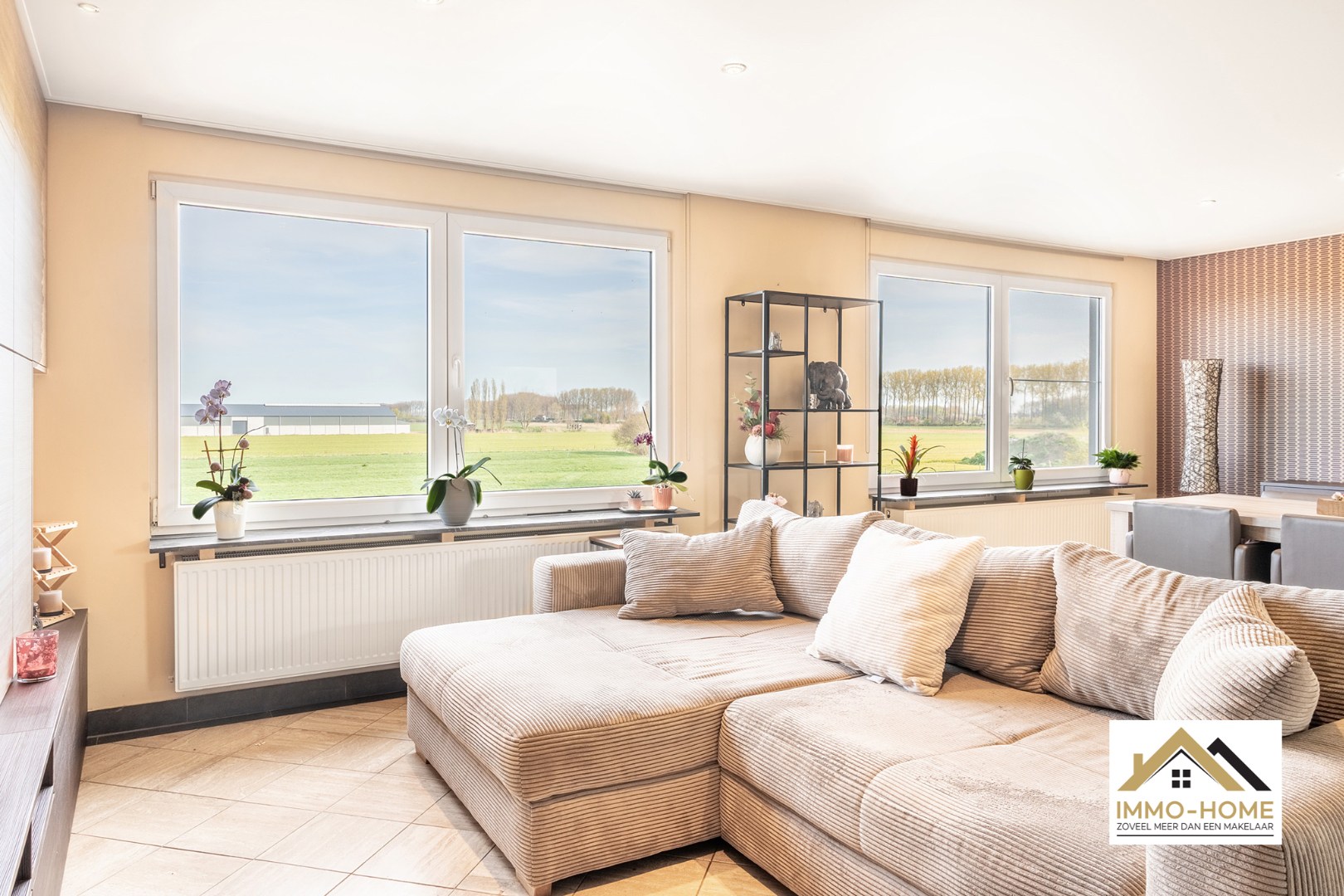 De eerder anonieme voorgevel van deze woning verbergt een ware parel. Via de riante inkomhal bereik je de eerste verdieping, waar zich de woon- en leefruimte bevindt. Het prachtige landelijke uitzicht waar je het jaar rond van geniet, valt meteen op. Dit uitzicht heb je vanuit elke hoek van deze verdieping, van de zithoek tot de leefkeuken. Net naast de keuken beschik je over een handige berging, en via een schuifraam bereik je een overdekt terras. Langs deze weg kom je tot op de absolute eye-catcher van de woning : een heel ruim dakterras, voorzien van een leuke lounge, en met uiteraard een heel weids uitzicht op de omgeving. Op de gelijkvloerse verdieping vinden we de inpandige garage, een eerste slaapkamer en de badkamer met ligbad en douche. En ook hier weer overal : een prachtige view ! Een verdieping eronder is er voorzien in een dubbele slaapkamer, en tweede apart toilet en een grote opbergruimte. Bezoekdag: 25/04. Inschrijven via mail naar tommy@immo-home.be, geen telefonische inschrijvingen! Volg ons op Fb en Insta. Voor meer info: www.immo-home.be. GRATIS SCHATTING & GRATIS FINANCIEEL ADVIES