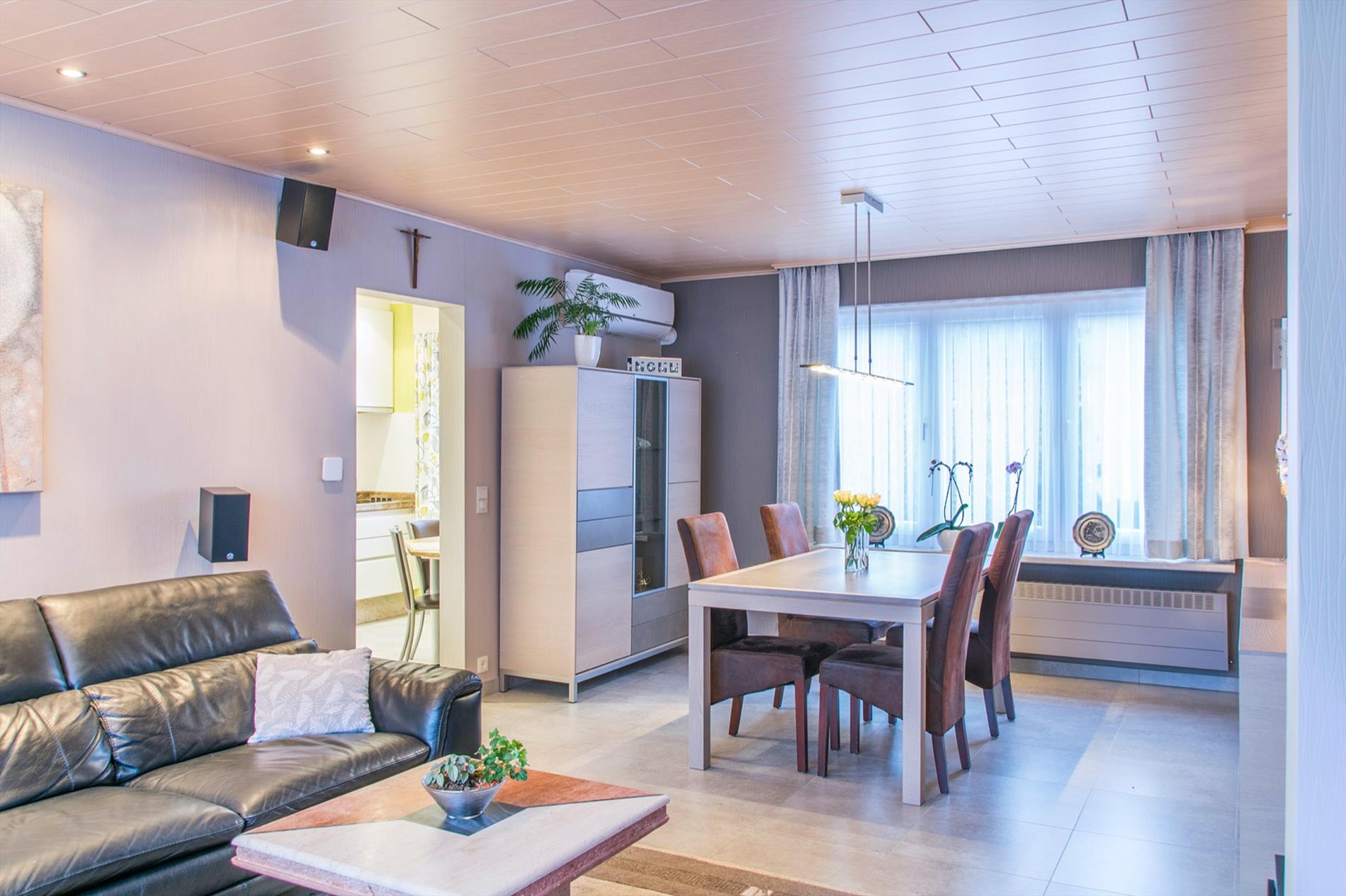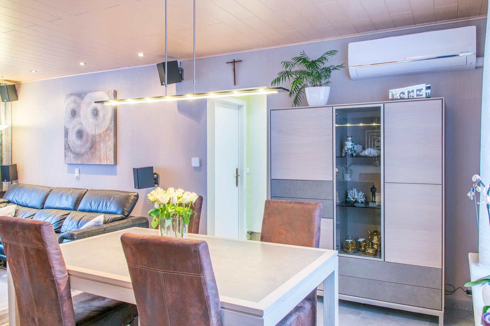 Schrijf u inVERKOCHT OP EERSTE BEZOEKDAG! Deze instapklare, perfect onderhouden en gerenoveerde bel-étage woning verwelkomt je met een ruime inkomhal (met gastentoilet). Je hebt van hieruit toegang tot de grote garage met automatische poort met veel opbergmogelijkheden en zeer ruime wasplaats. De deur achteraan brengt je in de gezellige tuin met overdekt terras en tuinhuisje. Op de eerste verdieping bevinden zich een mooie, knusse leefruimte met grote ramen zowel voor- als achteraan en een praktisch ingerichte keuken. Een bergruimte tegenover de keuken vervolledigt deze etage. Op de bovenste verdieping bevinden zich de badkamer met ligbad, lavabo-meubel en 2de toilet, alsook twee ruime slaapkamers en een babykamer/bureau. De woning beschikt over recente PVC-ramen met hoogrendementsglas en rolluiken, zowel de muren als het dak zijn degelijk geïsoleerd. De super warme dagen kun je ook moeiteloos de baas met de airco in de leefruimte en de master bedroom. 12 zonnepanelen, nieuwe roofing, regen- en grondwater, elektrische keuring is conform.