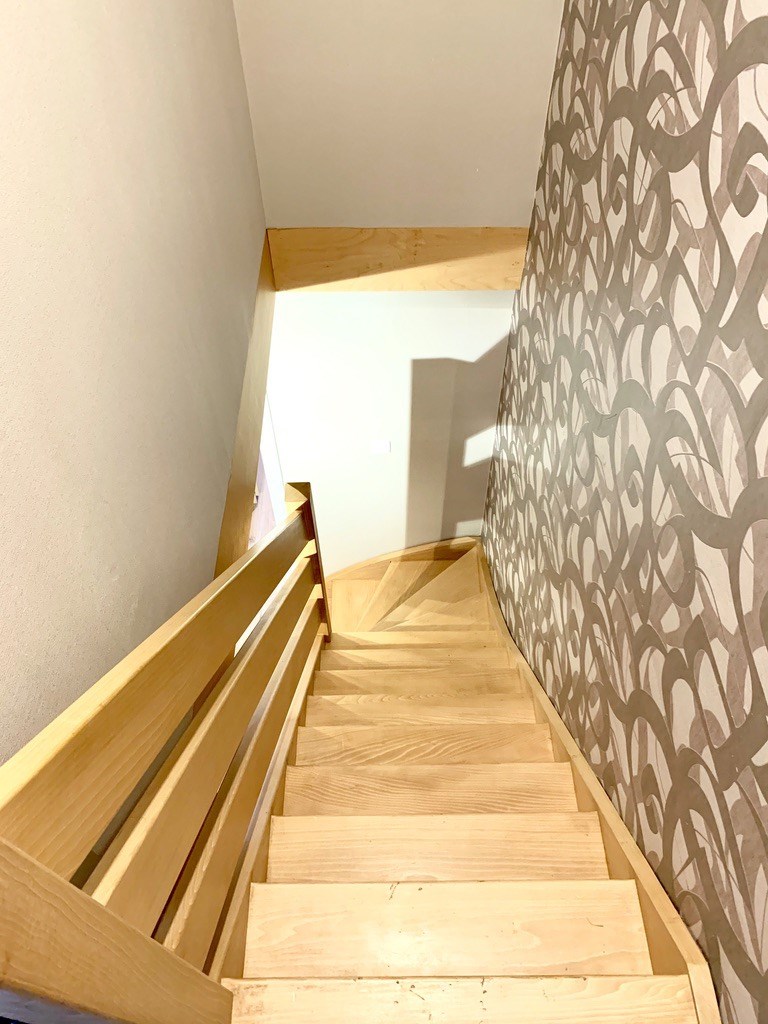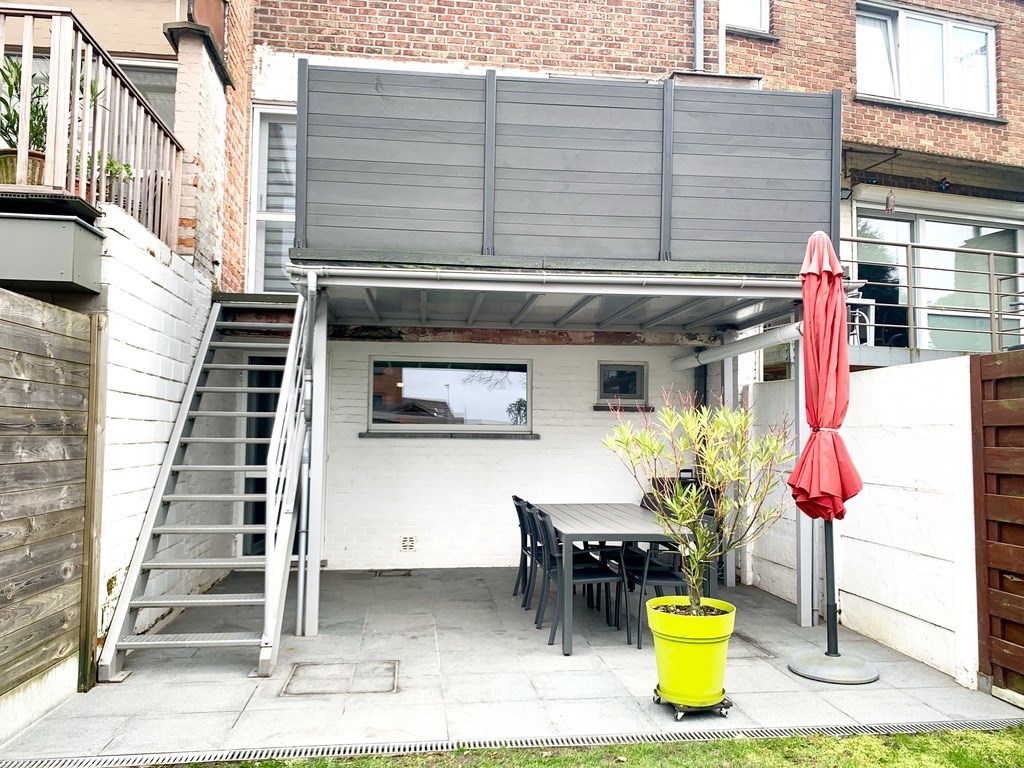 Via de lange inkomhal neemt u de trap naar de eerste verdieping. Hier bevinden zich de lichtrijke woonkamer, eetplaats en open keuken incl alle nodige toestellen. Van hieruit kan u naar het vernieuwde terras op de eerste verdieping en langs de trap naar de tuin. Aan de andere zijde van de woonkamer gaat u naar de tweede verdieping. Hier zijn 2 slaapkamers van 11 en 15 m2 en een bureauruimte/dressingroom van 6 m2 (of een babykamer). Ook de badkamer bevindt zich op deze verdieping en bestaat uit ligbad/douche, lavabomeubel en tweede toilet. Op de derde verdieping is een grote slaapkamer van 20 m2 met 3 extra bergruimtes.