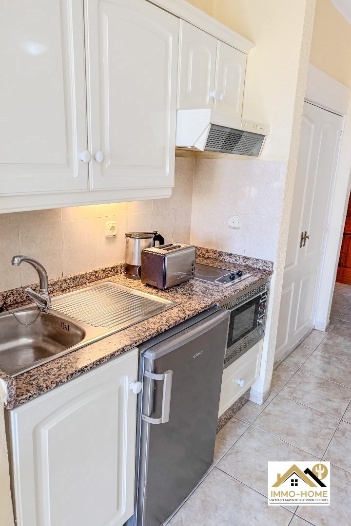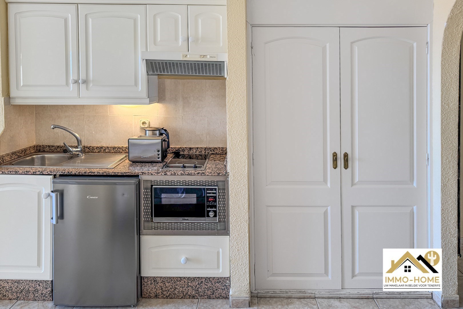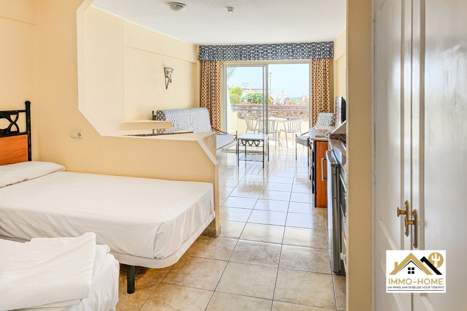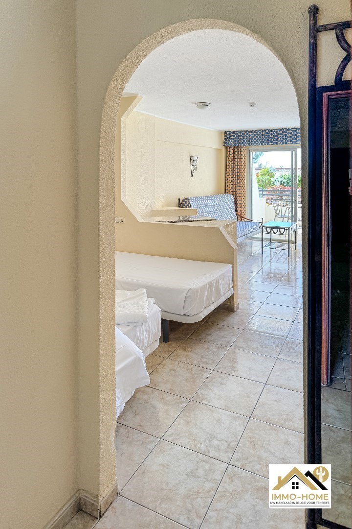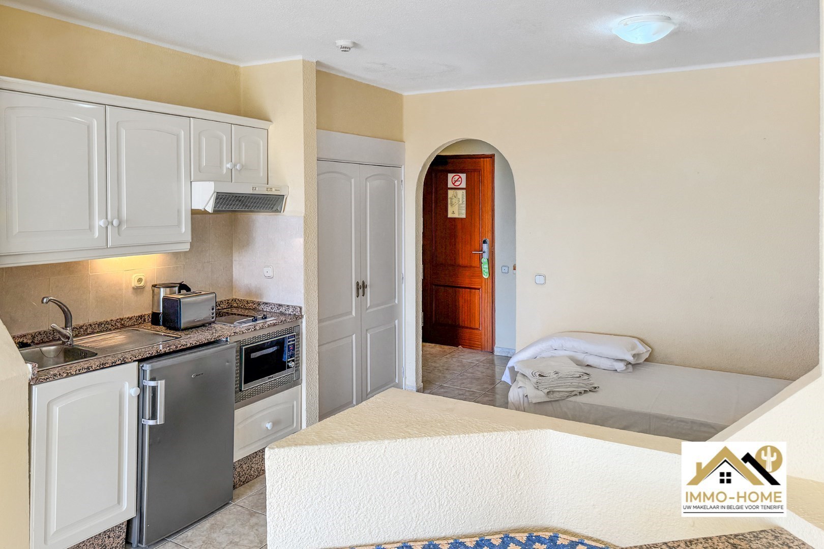 Deze uitzonderlijk ruime studio heeft een ruime badkamer met ligbad, een apart slaapgedeelte dat je perfect kan afscheiden, een keuken en woonruimte met aanpalend een zeer mooi en ruim terras. Of je nu wilt genieten van een rustige avond op je eigen terras of juist het bruisende nachtleven van Costa Adeje wilt ervaren, alles kan door de perfecte ligging.