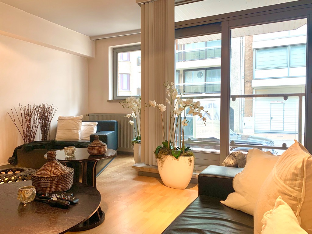 Schrijf u inDit appartement is ideaal gelegen, enerzijds vlakbij het strand, anderzijds naast de Lippenslaan met de vele winkels die ook op zondag open zijn. Ook de restaurants liggen op wandelafstand.