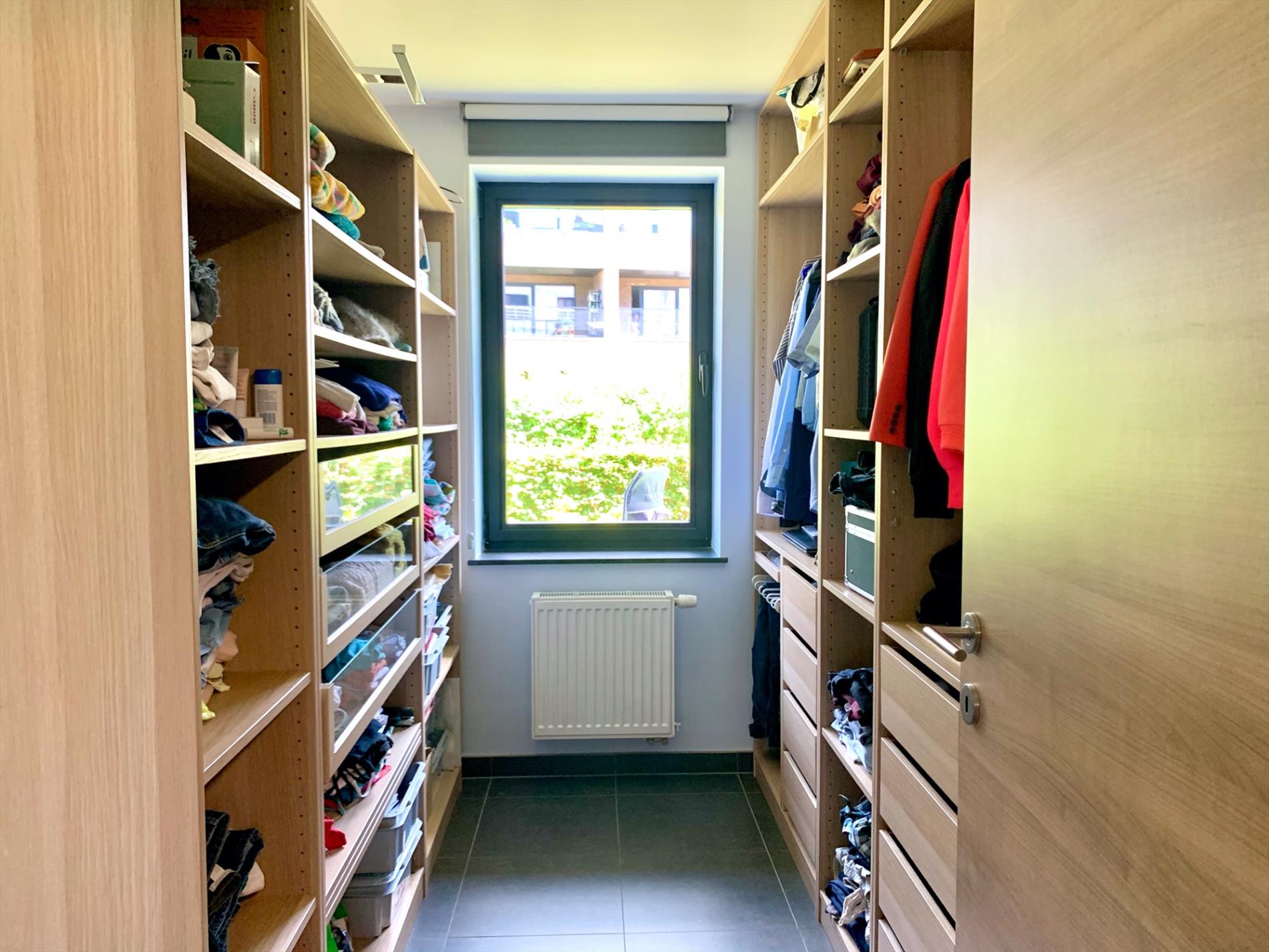 Er zijn 2 ruime slaapkamers waarvan 1 met grote dressing. Ook de badkamer is strak en modern met inloopdouche, ligbad, en dubbel lavabo-meubel en kolomkast.