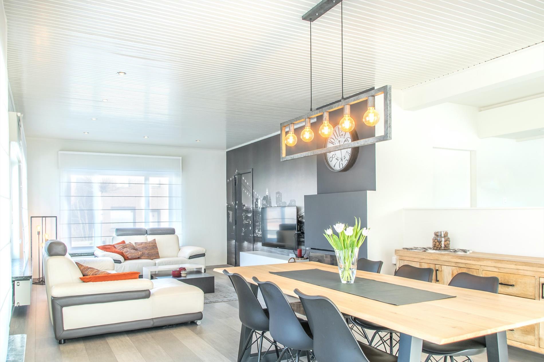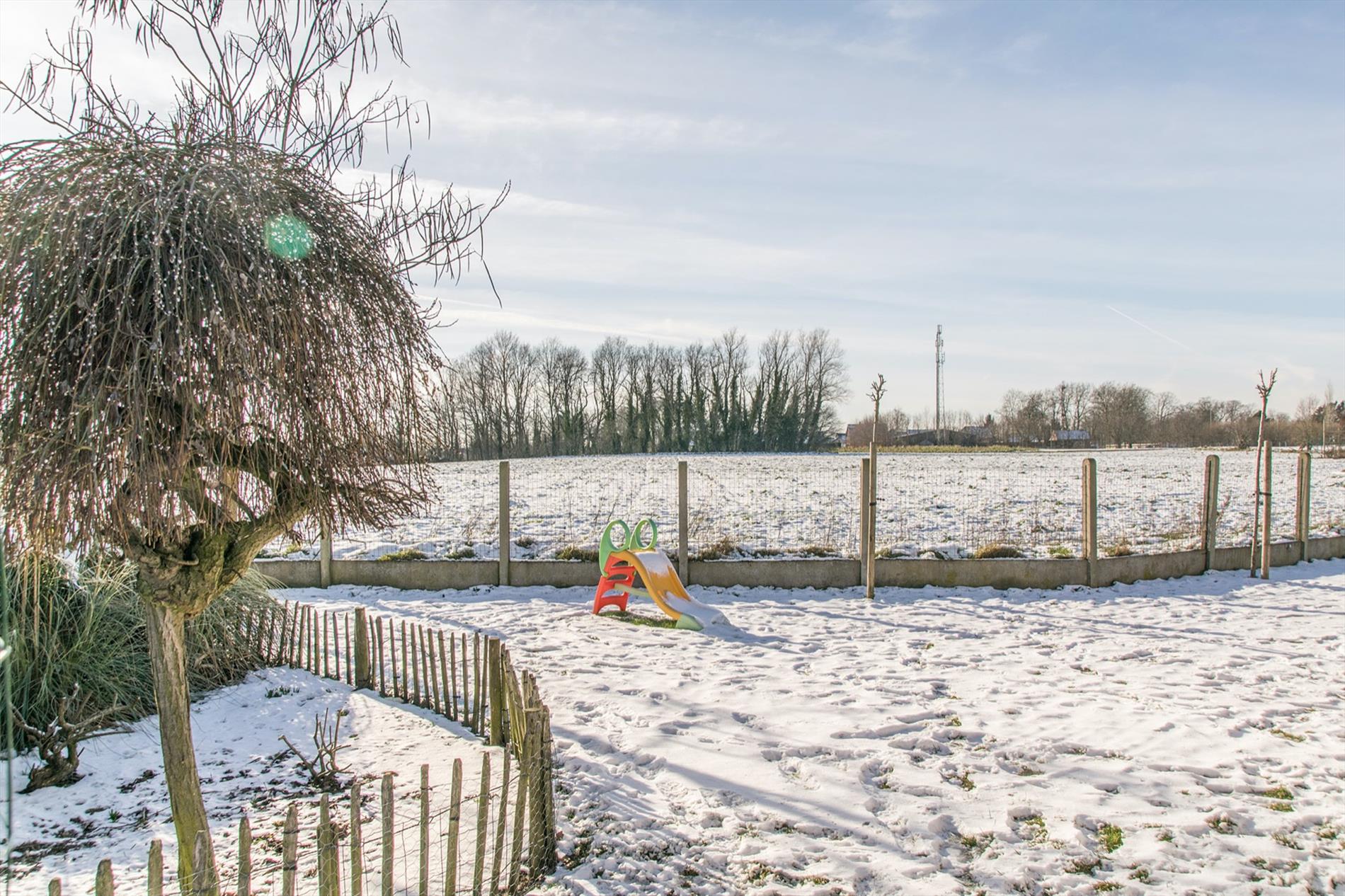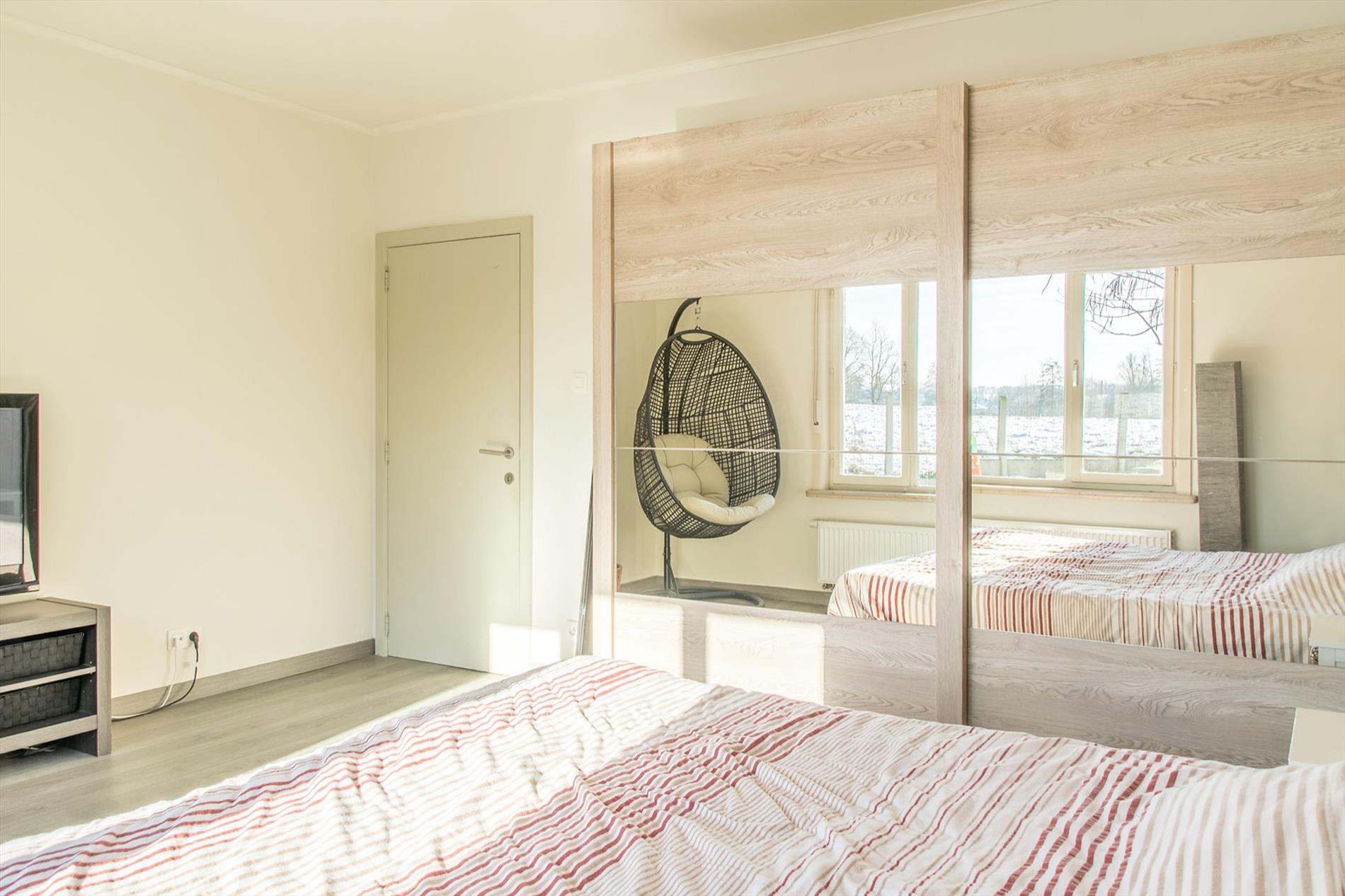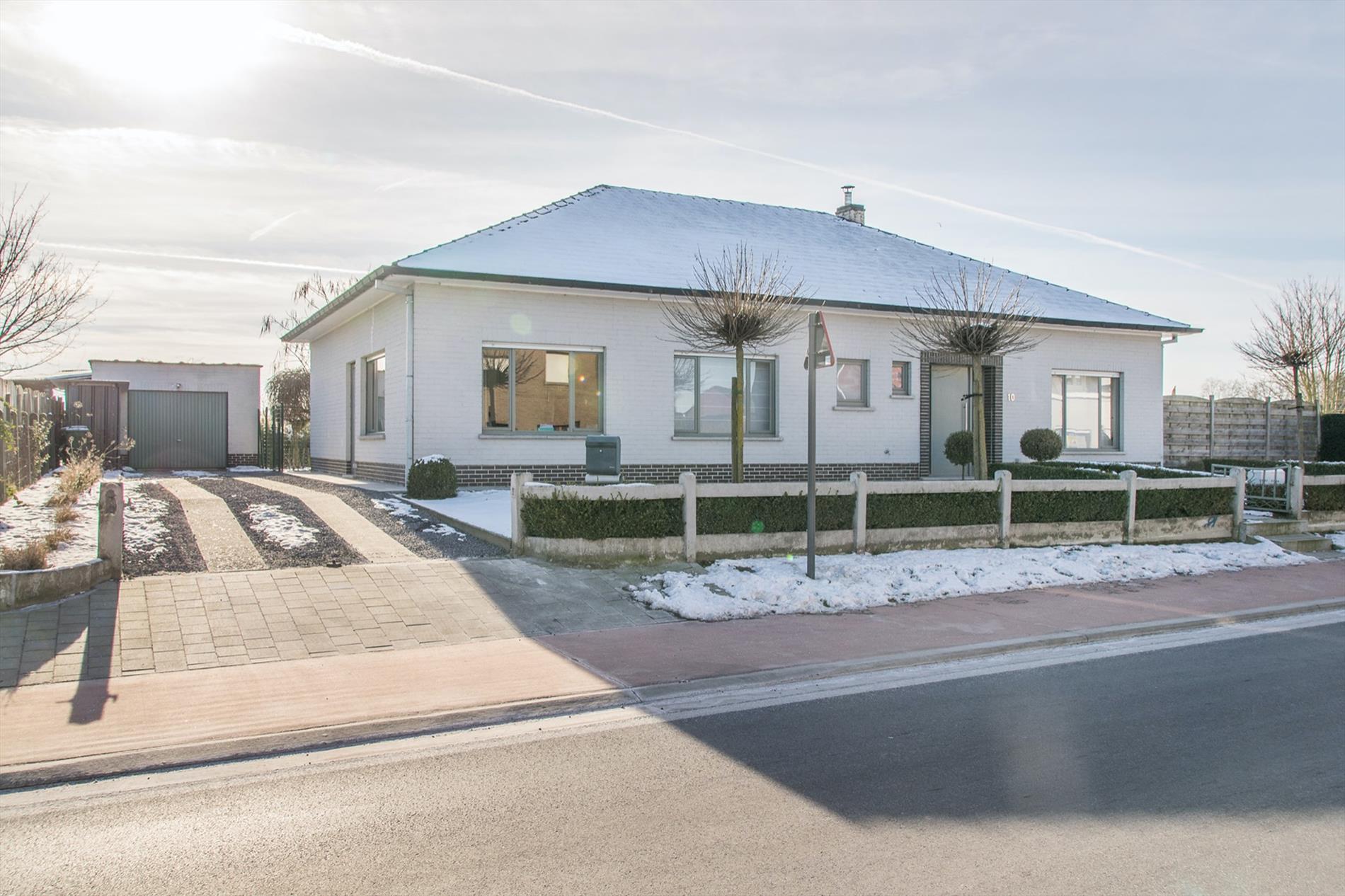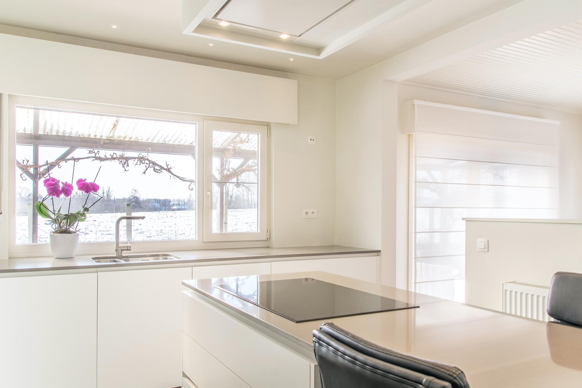 Op zoek naar een instapklare, zuid-gerichte ruime woning mét uitzicht op de velden ? Dan is deze bungalow misschien wel iets voor jou ! De grote inkomhal (met gastentoilet) vormt de centrale as in de woning, deze verbindt alle ruimtes. Te beginnen met de zeer mooie, open leefruimte, die baadt in het licht met grote ramen rondom en een gezellige houthaard. Aansluitend bevindt zich de nieuwe strakke open keuken met kookeiland, die voorzien is van alle comfort en mét een magistraal uitzicht als kers op de taart (dit is landbouwgebied, hier kan dus nooit op gebouwd worden) ! Via een handige bergruimte kom je in de tuin, waar een gezellig terras zeker uitnodigt om veel van de buitenlucht te genieten. Verder in de woning bevinden zich nog een badkamer met wellness-allures met de met keien beklede wanden, inclusief grote inloopdouche met regendouche en aanpalend ook 3 zeer ruime slaapkamers. De derde kamer is momenteel ingericht als bureel. Mocht dit nog niet volstaan, er is op de zolder ruimte om ongeveer 60 m² extra woonoppervlakte te creëren. Tot slot is er nog een vrijstaande garage met extra bergruimte, en er liggen maar liefst 17 zonnepanelen op het zuidgerichte dak.