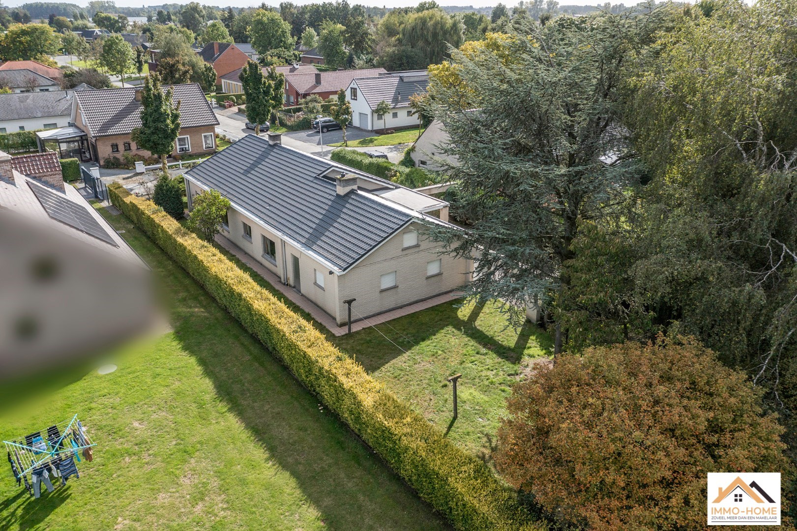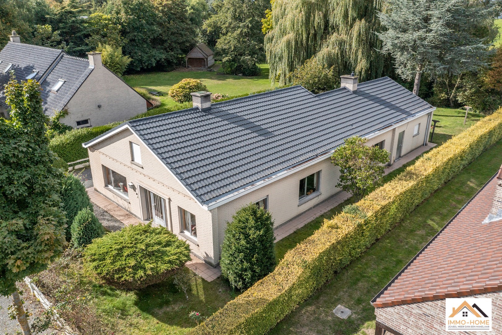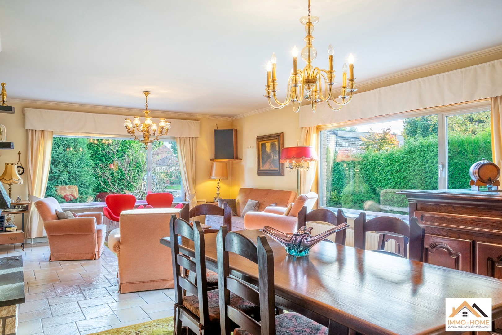 Schrijf u inDeze bungalow met 926m2 grond is bijzonder rustig gelegen in een aangename buitenwijk van Lochristi. De inkomhal en de gang vormen de centrale as van de woning. Aan één zijde bevindt zich de lichtrijke leefruimte met open haard met daarachter de ruime leefkeuken. Aan de andere kant van de inkomhal (met ingemaakte vestiairekast) bevindt zich vooraan een bureel, en daarachter zijn er twee ruime slaapkamers. Ook het gastentoilet en de grote badkamer bevinden zich hier. Helemaal achteraan de gang is er een koele berging (net naast de keuken) en een ruime wasplaats/bijkeuken. Deze komt tot slot uit in de grote garage met twee automatische poorten. Het terras is bereikbaar vanuit de keuken, en bovenop dit alles is er een ruime zolder met aan de voorzijde van de woning voldoende hoogte om er extra kamers in te voorzien bovenop de solide betonnen gewelven.