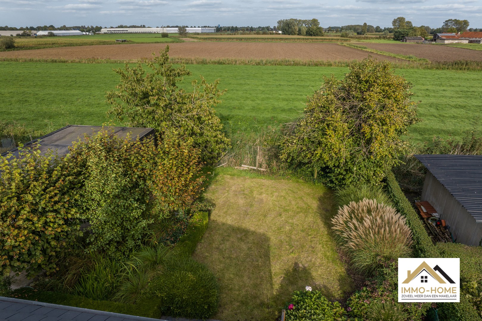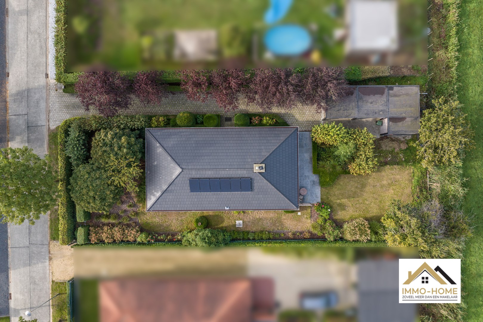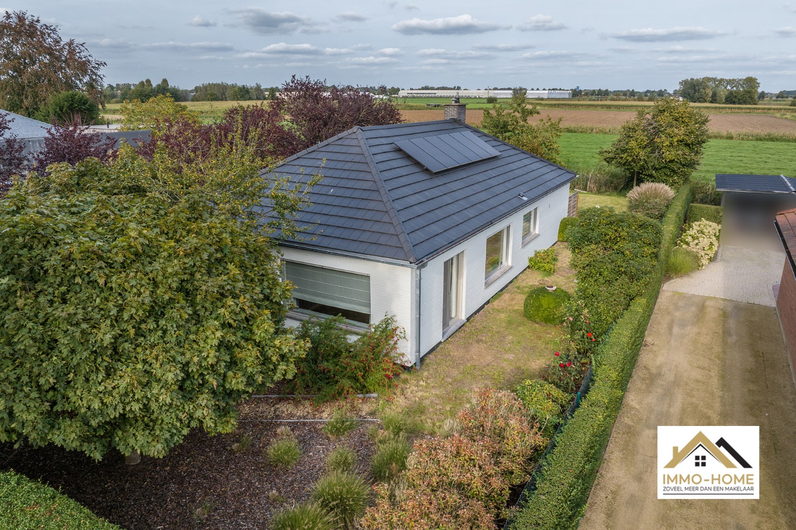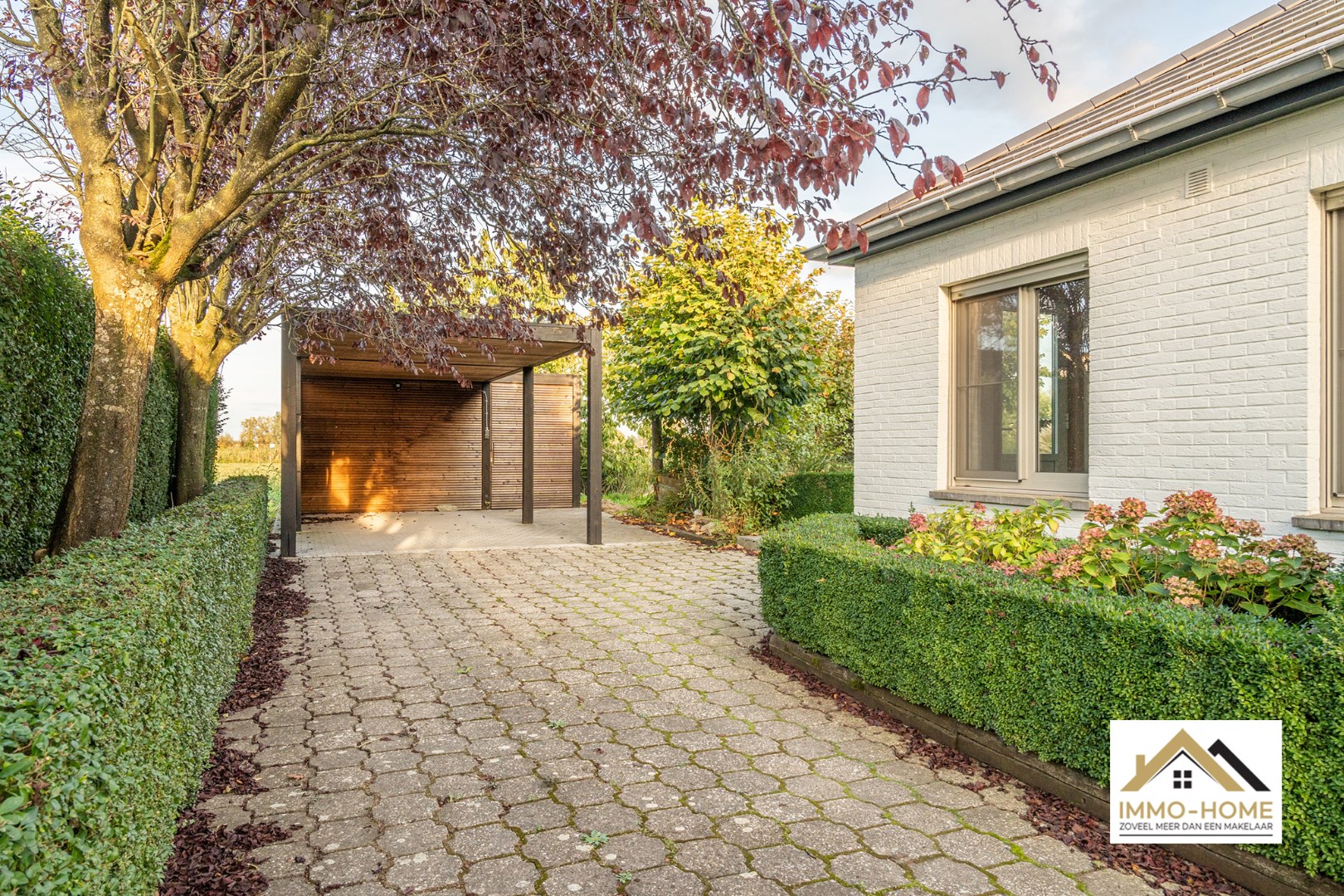 Schrijf u inDeze bijzonder rustig gelegen bungalow ontvangt je in een ruime inkomhal met ingemaakte vestiaire en gastentoilet. Zo kom je verder tot in zowel de leefkeuken als de living. Beide ruimtes zijn heel lichtrijk door de vele raampartijen, maar de leefkeuken biedt daarnaast een prachtig uitzicht over het achtergelegen landbouwgebied. Het brede schuifraam verschaft toegang tot het terras en de tuin, maar daar kom je ook via de aanpalende grote wasplaats/berging. De mooie badkamer met ligbad en douche is net als de keuken recent volledig gerenoveerd. Er zijn twee slaapkamers, waarvan één voorzien is van hoge maatkasten. Op het einde van de lange oprit beschik je over een carport met bijhorende ruime tuinberging, en je voorziet in je eigen energie met de zes zonnepanelen op het dak.