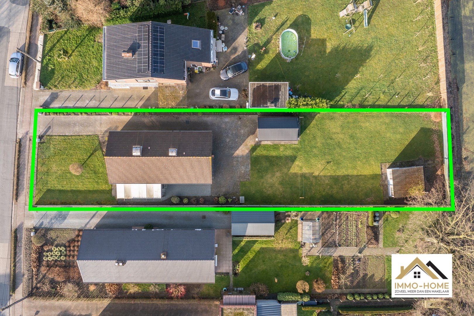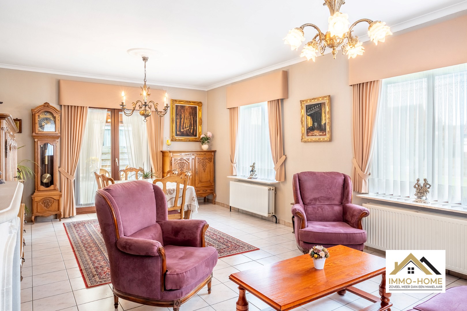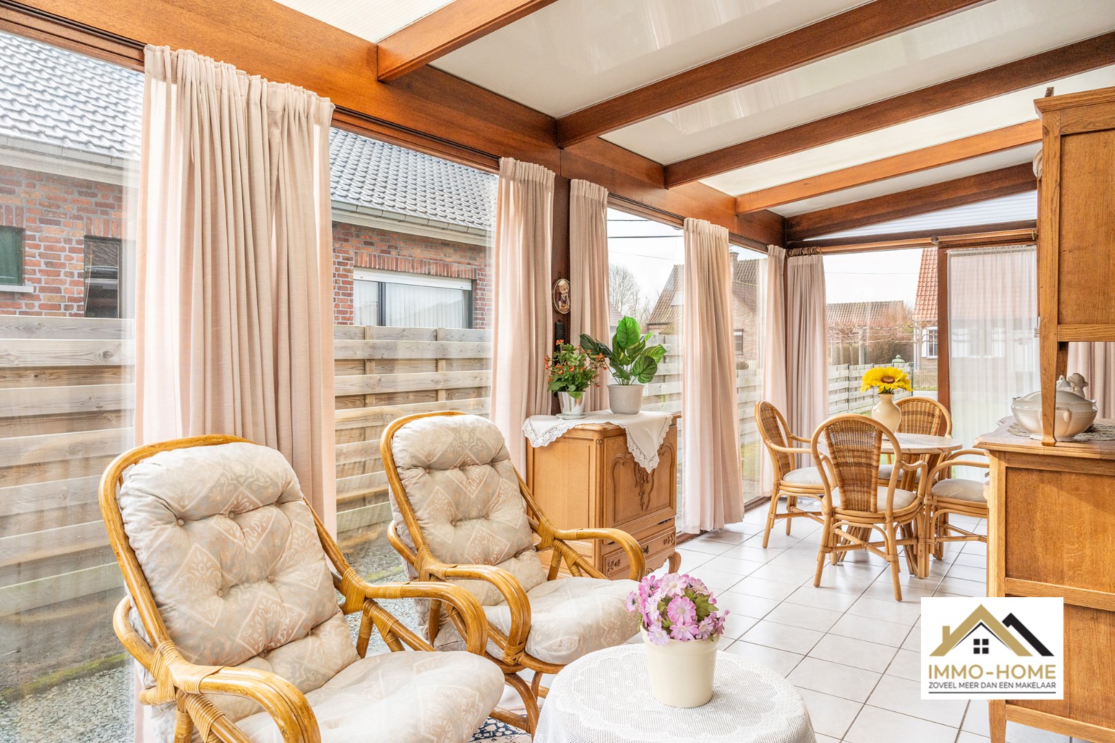 Schrijf u inDeze op te frissen maar zeer degelijke bungalow is gelegen in een groene en rustige omgeving, en vlot bereikbaar. De lange oprit naast de woning brengt je tot bij de voordeur, waar je in een ruime inkomhal (met gastentoilet) wordt verwelkomd. Zo kom je verder tot in de lichtrijke leefruimte, waar de haard een heel mooi accent legt en ongetwijfeld voor extra sfeer zorgt tijdens de donkere wintermaanden. De aanpalende keuken is praktisch ingericht, en zowel van hieruit als vanuit de living heb je toegang tot de aangebouwde gezellige tuinkamer. Hier kun je het jaar rond genieten van het buitengevoel en de natuurlijke lichtinval. Achter de keuken, via een centrale gang, bereik je de rest van de woning. Deze bestaat uit twee slaapkamers, een badkamer met ligbad, een handige koele berging en de inpandige garage. Hier bevinden zich ook de technische aansluitingen. In de ruime tuin is er voorzien in een tweede vrijstaande garage en een groot tuinhuis, aan opslagruimte dus geen gebrek. De zeer grote tuin is momenteel nog heel maagdelijk, maar hier is ruimte genoeg om er een eigen groene oase van te maken. Inschrijvingen via mail naar tommy@immo-home.be, geen telefonische inschrijvingen! Volg ons op Fb en Insta. Voor meer info: www.immo-home.be. GRATIS SCHATTING & GRATIS FINANCIEEL ADVIES