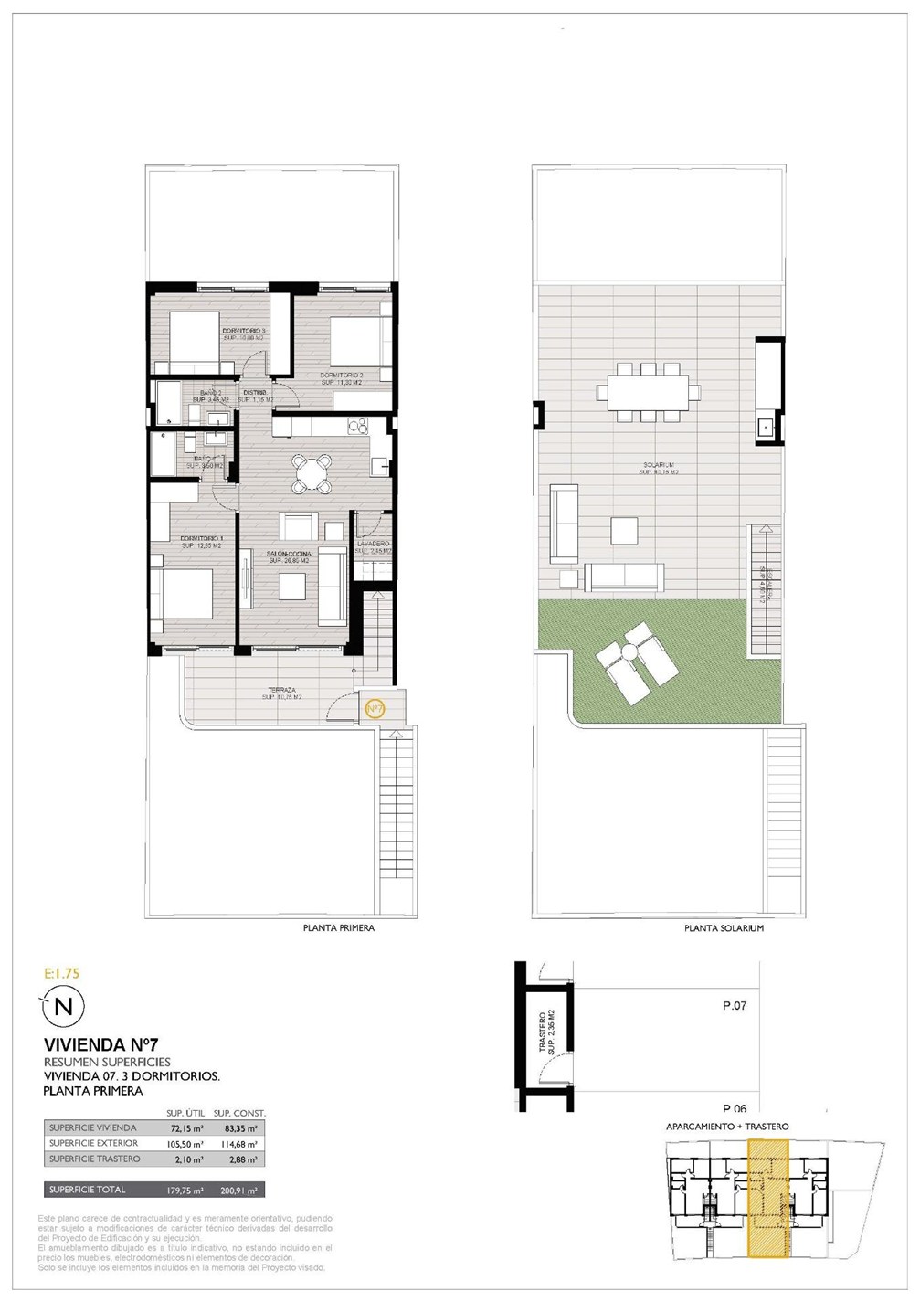 Nieuwbouw Bungalows in San Pedro del Pinatar - Modern Wonen aan Zee Exclusief wooncomplex met moderne bungalows Ontdek dit nieuwe wooncomplex met 8 moderne bungalows in San Pedro del Pinatar, een van de meest gewilde locaties aan de Costa Cálida. Deze eigentijdse woningen hebben 3 slaapkamers, 2 badkamers, een open keuken met een ruime woonkamer, ingebouwde kasten en een privéterras. Je kunt kiezen uit: Bungalows op de begane grond met een privétuin en parkeergelegenheid op het perceel. Bungalows op de bovenste verdieping met een privé solarium, perfect om te genieten van het mediterrane klimaat. Hoogwaardige kenmerken in elke woning Elke bungalow heeft een hoogwaardige afwerking en moderne voorzieningen voor maximaal comfort: Airconditioning inbegrepen. Aerothermisch systeem voor energie-efficiënte productie van warm water. Volledig ingerichte keuken met BOSCH apparatuur. Volledig ingerichte badkamers met meubels, spiegels, doucheschermen en elektrische vloerverwarming. Elektrische rolluiken voor alle ramen. LED-verlichting in het hele huis, zowel binnen als buiten. Extra voorzieningen voor bungalows met bovenste verdieping: Aluminium pergola voor schaduw en stijl. Buiten zomerkeuken, perfect voor entertainment. Privé parkeerplaats en berging voor fietsen. Gemeenschappelijke voorzieningen Bewoners van dit exclusieve complex zullen genieten van: Een prachtig aangelegde gemeenschappelijke ruimte. Een gemeenschappelijk zwembad om te ontspannen en op te frissen. Toplocatie in San Pedro del Pinatar San Pedro del Pinatar is een bevoorrecht kustplaatsje, gelegen tussen de Mar Menor en de Middellandse Zee. Het staat bekend om zijn stranden, natuurlijke modderbaden en uitstekende nautische faciliteiten, waaronder jachthavens en jachtclubs. Het gebied is een paradijs voor watersportliefhebbers en biedt een ontspannen mediterrane levensstijl met alle essentiële voorzieningen in de buurt. San Pedro del Pinatar heeft het hele jaar door een gevestigde gemeenschap, met toegang tot sportfaciliteiten, een overdekt zwembad en een levendige sociale scène, dankzij het milde winterklimaat van de regio. De beroemde wijk Lo Pagán is aanzienlijk gegroeid en biedt een compleet aanbod aan voorzieningen, winkels, restaurants en entertainmentopties. Afstanden naar de belangrijkste bezienswaardigheden Winkelcentrum Dos Mares - 5 minuten. Mar Menor stranden - 10 minuten. Vliegveld Murcia-Corvera - 30 minuten. Vliegveld Alicante - 1 uur. Investeer in kwaliteit en levensstijl Deze moderne bungalows bieden een uitzonderlijke kans om een huis te bezitten in een van de meest gewilde gebieden van de Costa Cálida. Of het nu gaat om een vakantieverblijf, investering of permanente bewoning, dit is je kans om de mediterrane levensstijl te omarmen. Neem vandaag nog contact met ons op om een bezichtiging te plannen en je droomhuis in San Pedro del Pinatar veilig te stellen!