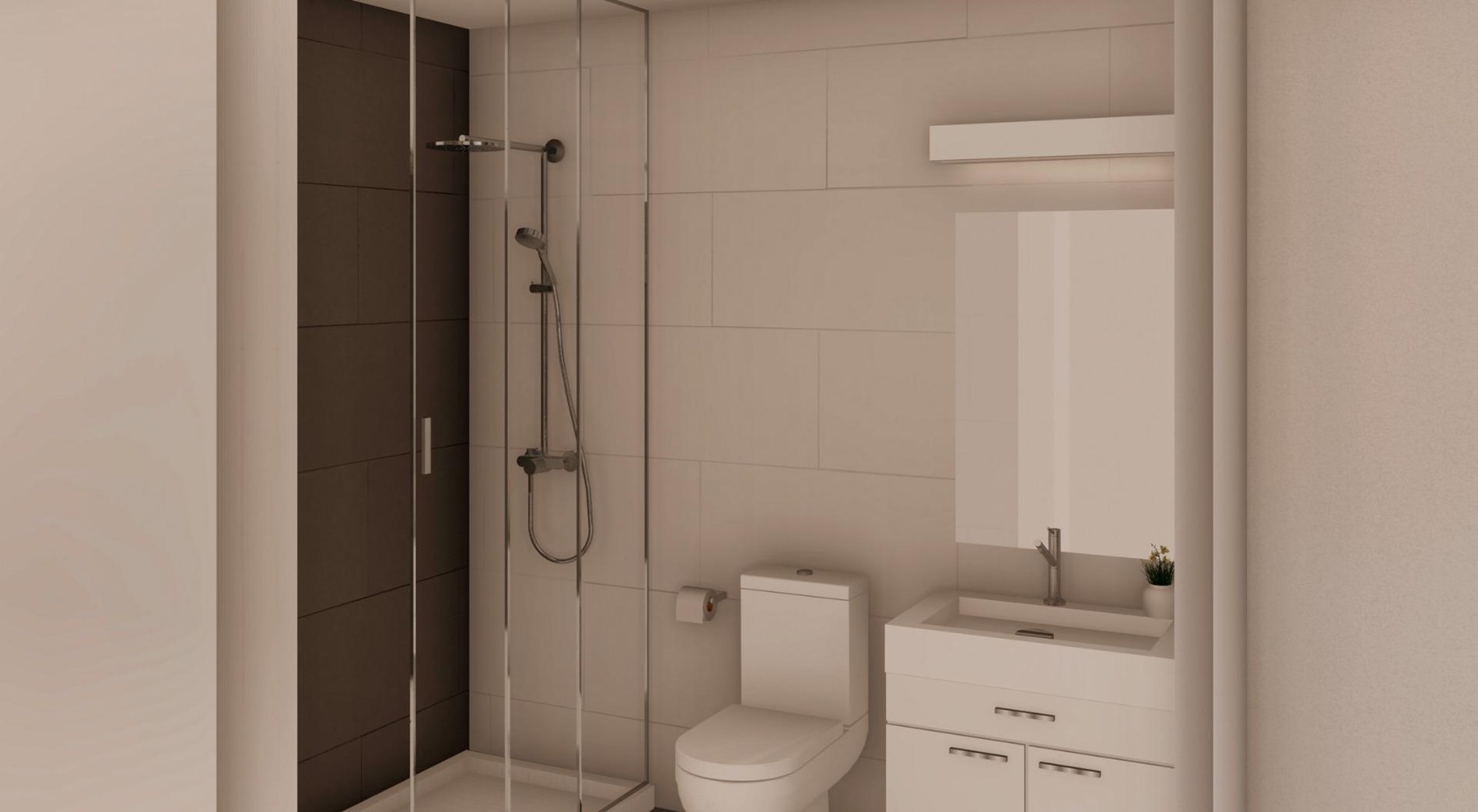 De interieurs, elegant en functioneel, hebben vloeren van hoge kwaliteit, volledig ingerichte keukens in wit gecombineerd met imitatiehout, inclusief elektrische apparaten. De badkamers hebben een badmeubel met wastafel en verlichting. De slaapkamers zijn voorzien van beklede kledingkasten met laden en schuifdeuren en elke woning heeft een pre-installatie voor gekanaliseerde airconditioning.