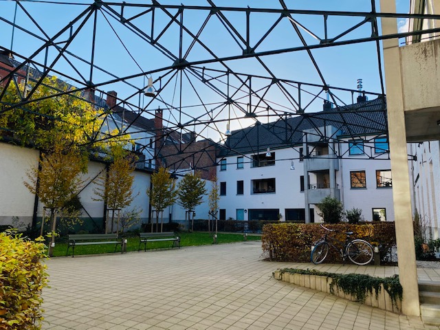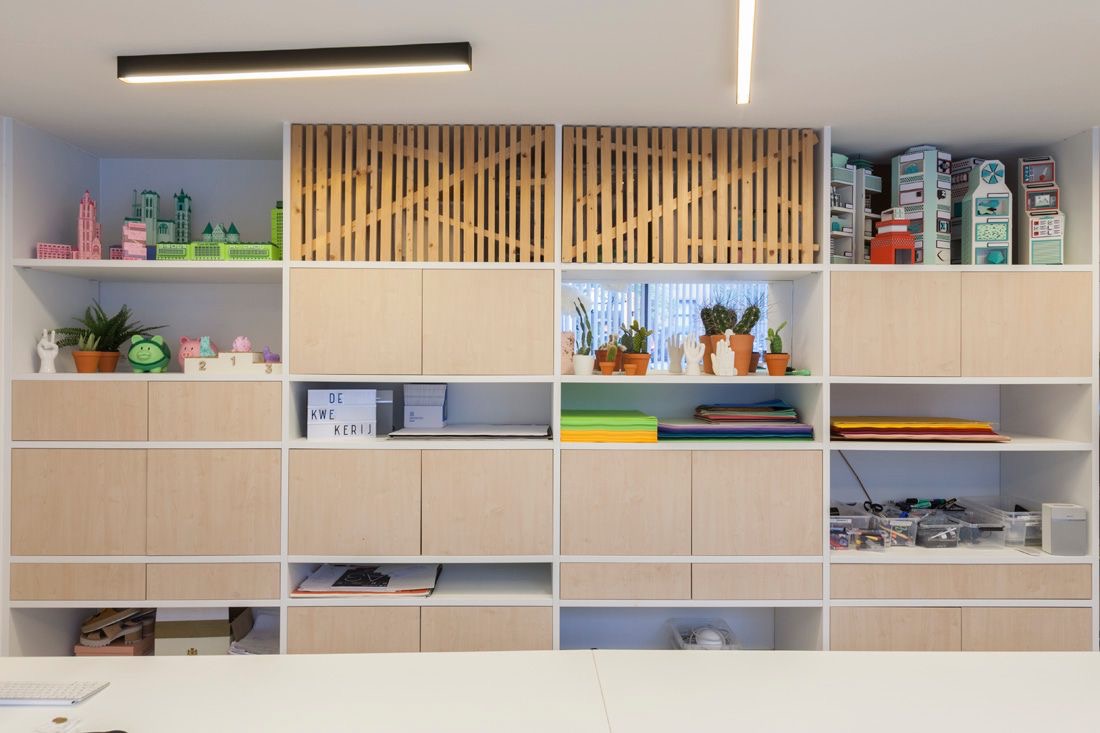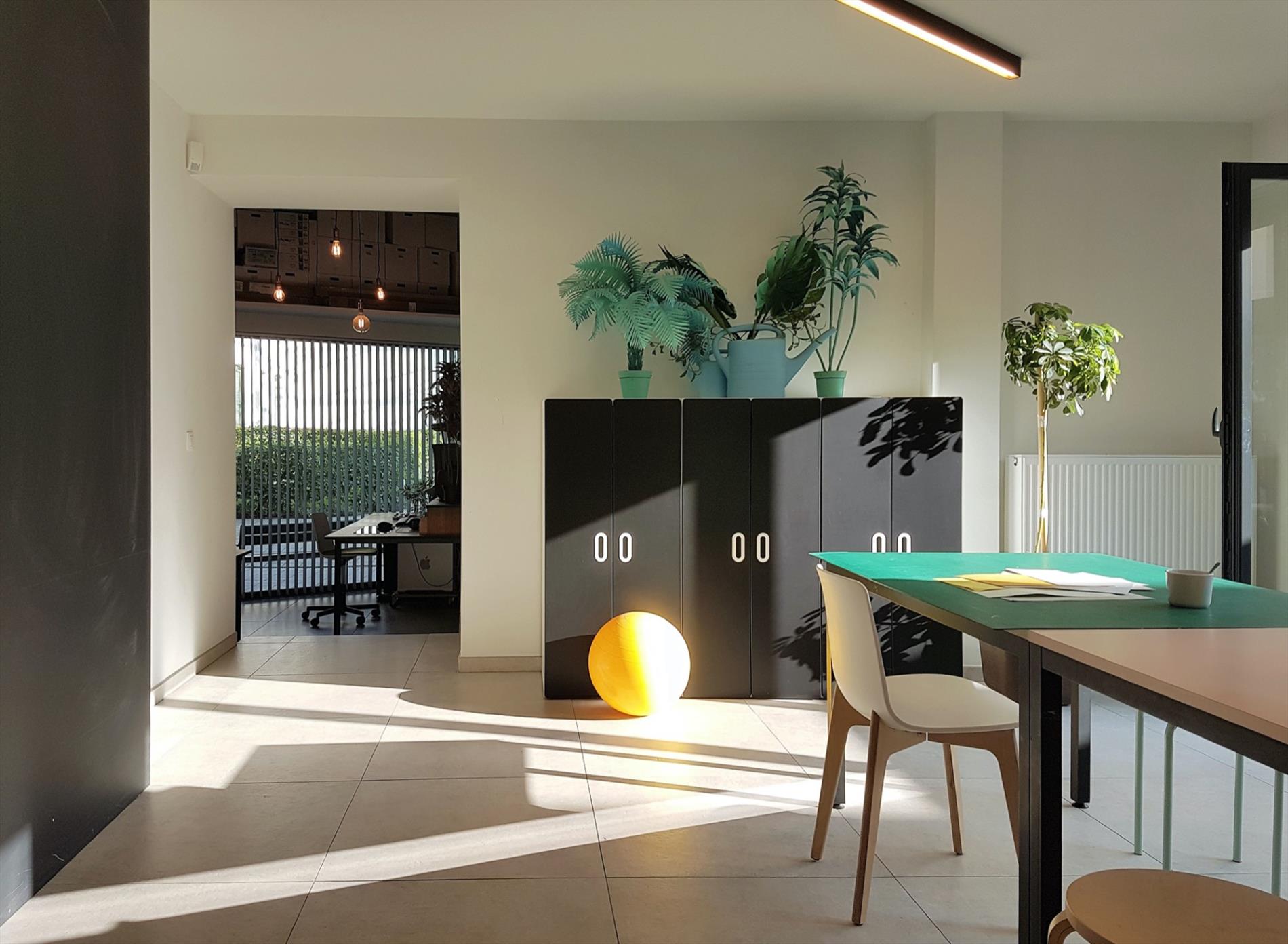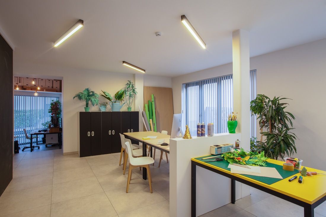 Complex die dateert van 2015, dus héél jong, modern en strak qua uitstraling maar het kantoor heeft deze moderne stijl doorgetrokken in hun interieur.