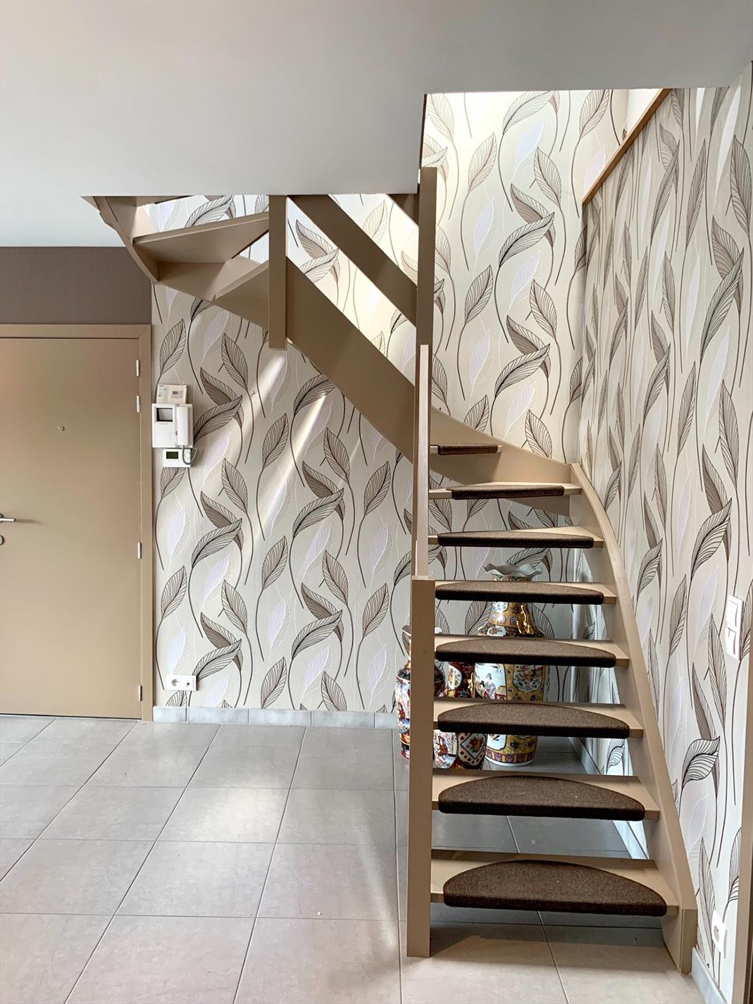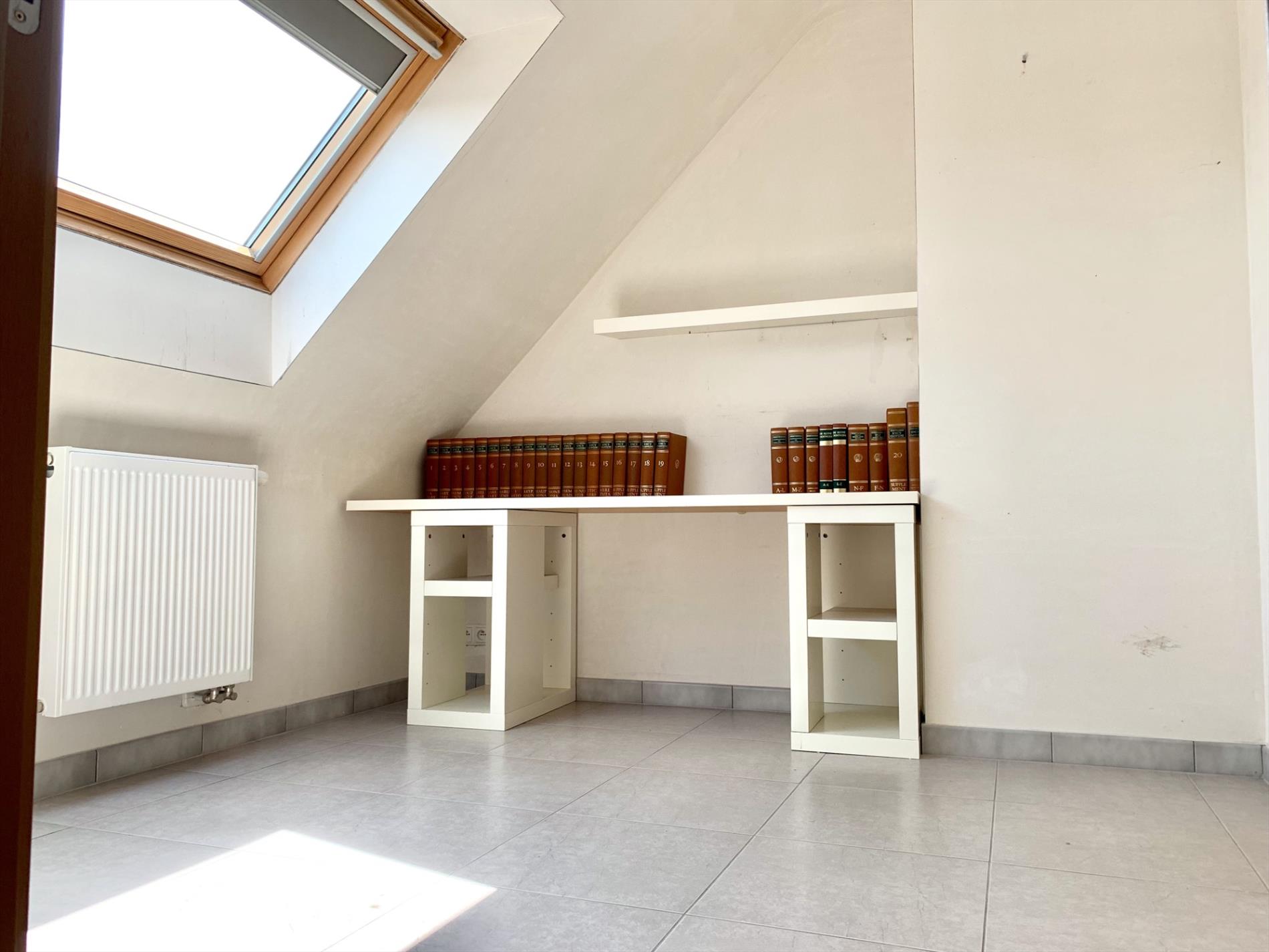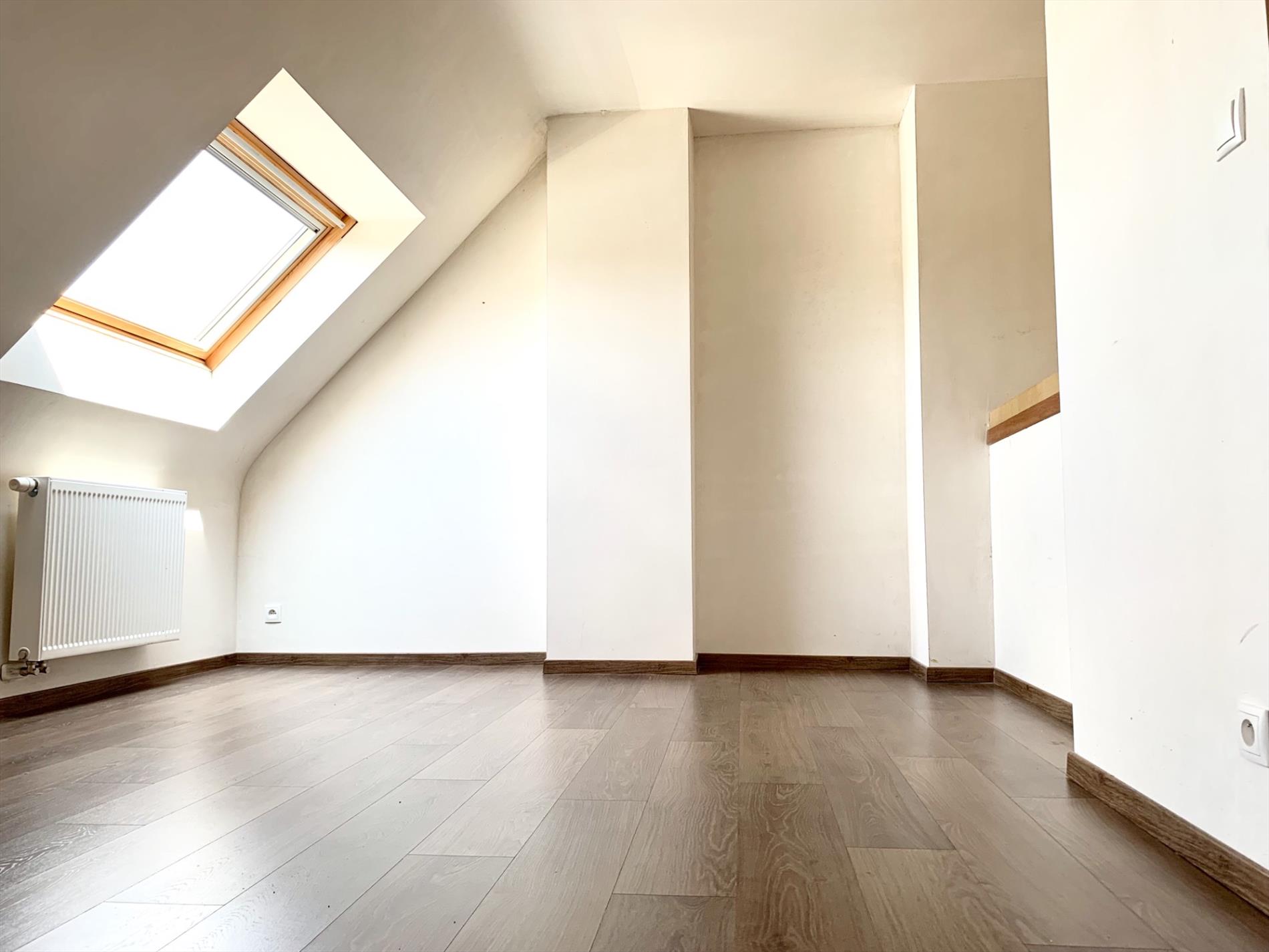 Via de trap in de living kan u naar de bovenste verdieping waar zich nog 2 slaapkamers bevinden en een ruimte die voorzien is voor een 2de badkamer (leidingen zijn voorzien) of extra slaapkamer.