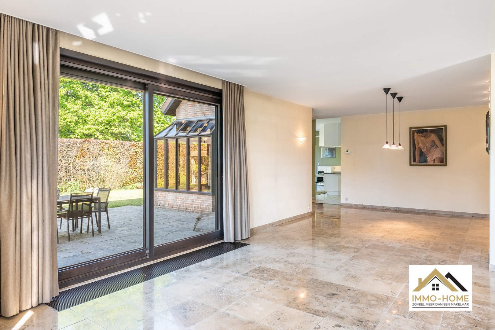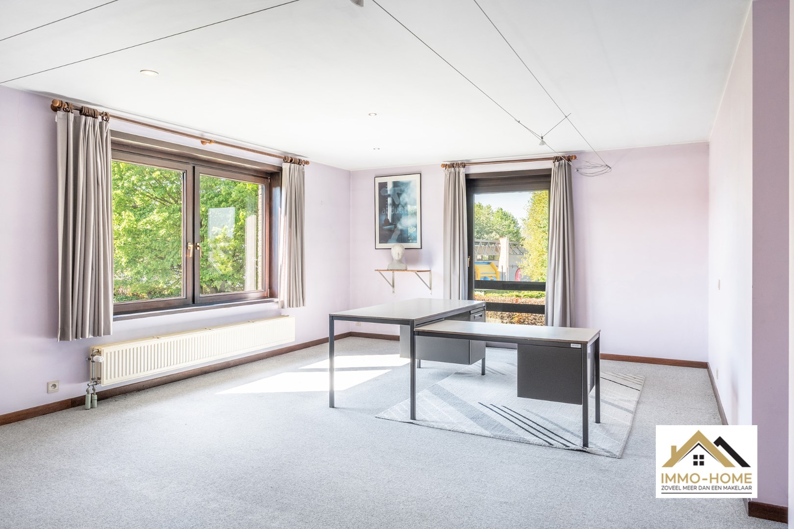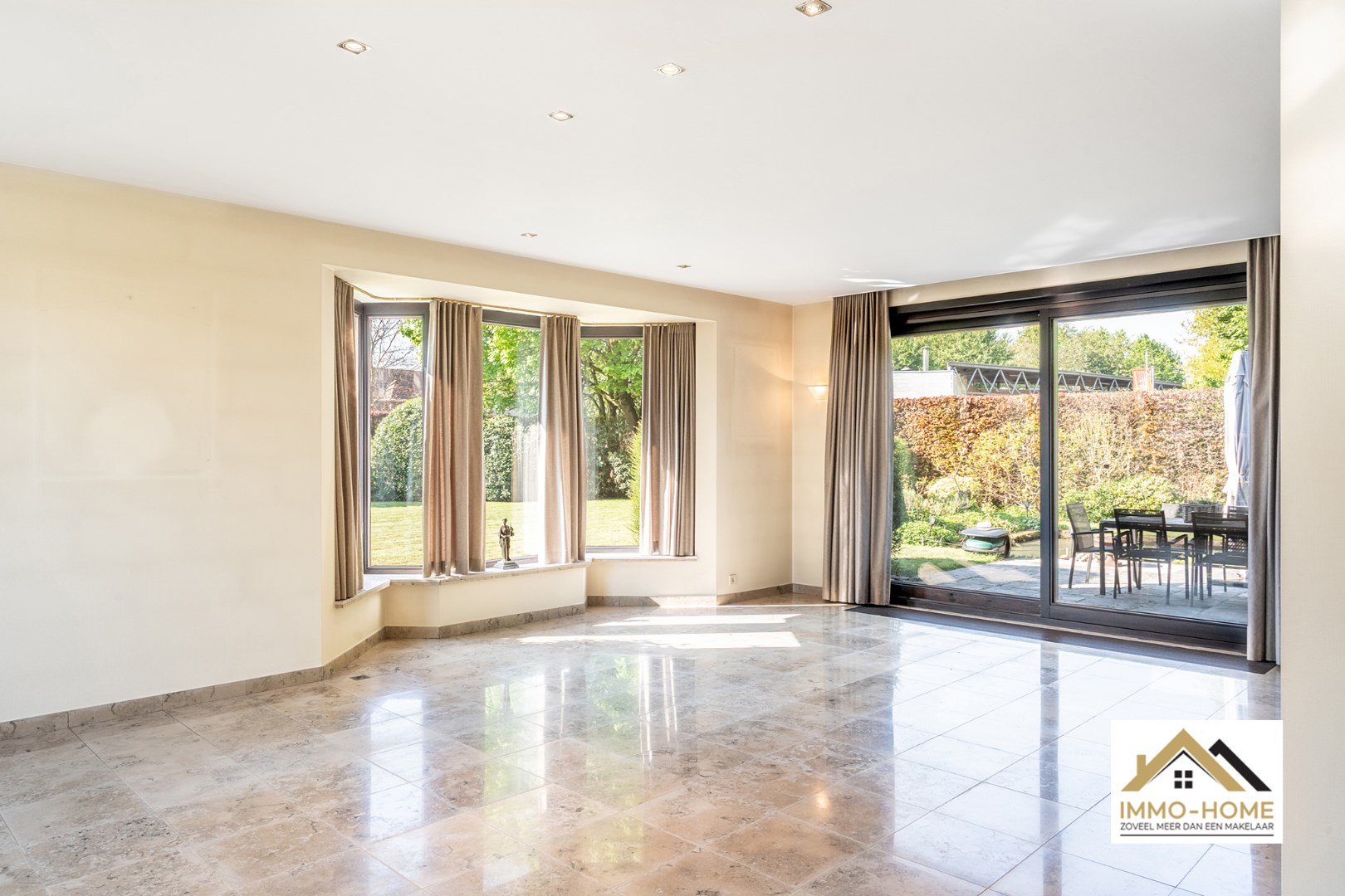Schrijf u inDeze statige woning ontvangt je in een ruime inkomhal met gastentoilet. Je merkt al meteen aan de indeling en de architectuur dat je in een bijzondere woning bent. De leefruimte is daar een mooi verlengstuk van : de vele raampartijen zorgen op een speelse manier voor een aangenaam gevoel, zowel naar ruimtelijkheid als qua lichtinval. De ruime eethoek en de aanpalende keuken gaan verder op hetzelfde elan : veel licht en overal geborgenheid. Het extra zithoekje in de leefkeuken, met zicht op het terras en de tuin, voelt aan als een knusse tuinkamer. Verderop kom je in een ruime wasplaats (met toegang tot de tuin), inclusief ingemaakte kasten en een bijhorende eerste badkamer (met douche en toilet). Vooraan de woning is er voorzien in een riante bureel- of praktijkruimte, met zicht op de oprit en de tuin. Een grote dubbele garage vervolledigt het gelijkvloers. Op de eerste verdieping is er rond de zeer grote overloop plaats voor vier heel ruime slaapkamers, waarvan één met rechtstreekse toegang tot de badkamer met ligbad (deze is ook vanuit de overloop bereikbaar). Bovenop dit alles bevindt zich een heel ruime zolder, waar nog zonder probleem meerdere extra kamers kunnen ingericht worden. Genieten van het buitenleven die je in de prachtig aangelegde en onderhouden tuin, en dit zowel op het mooie terras als in de gezellige lounge. Inschrijvingen via mail naar tommy@immo-home.be, geen telefonische inschrijvingen! Volg ons op Fb en Insta. Voor meer info: www.immo-home.be. GRATIS SCHATTING GRATIS FINANCIEEL ADVIES