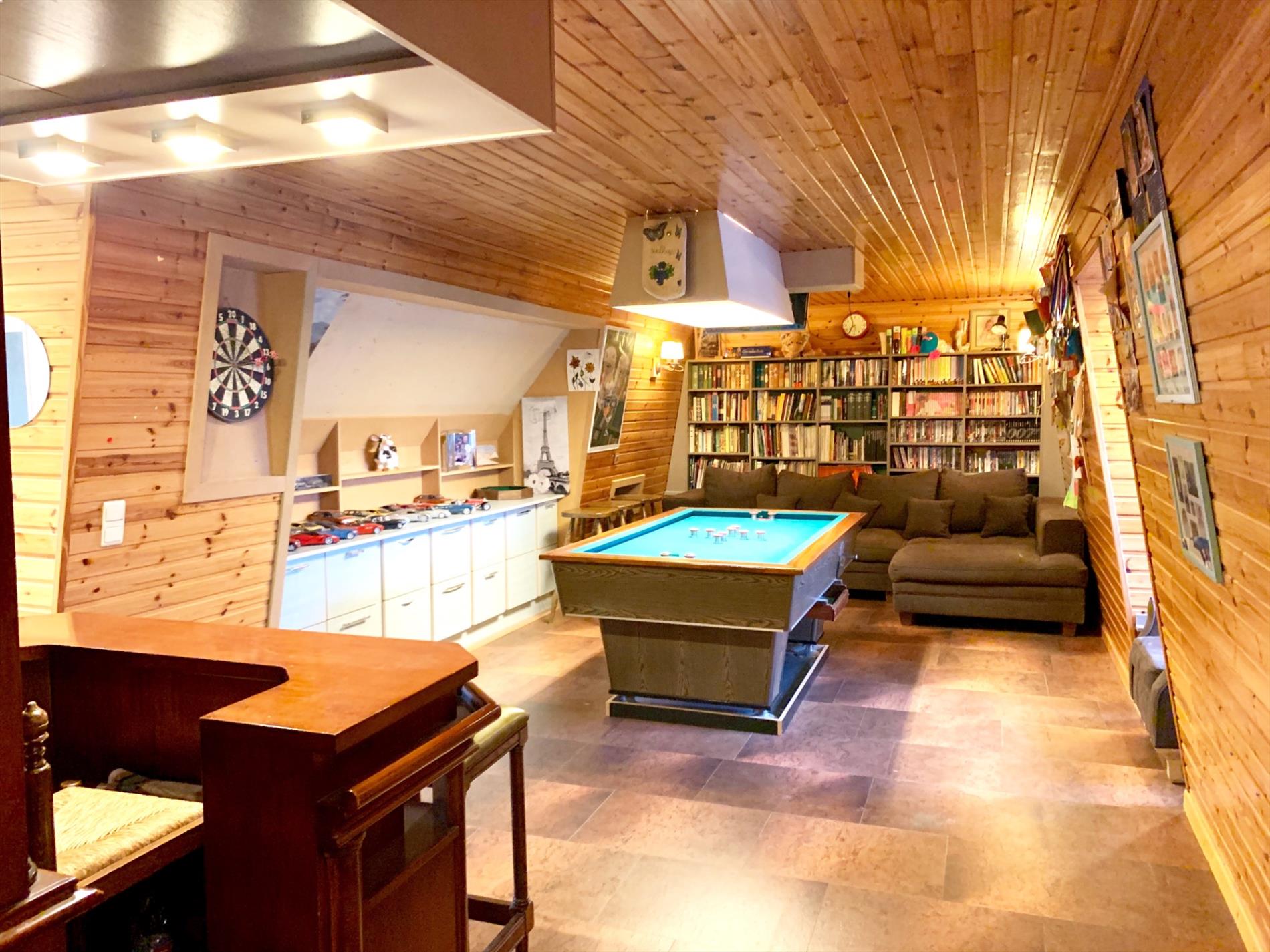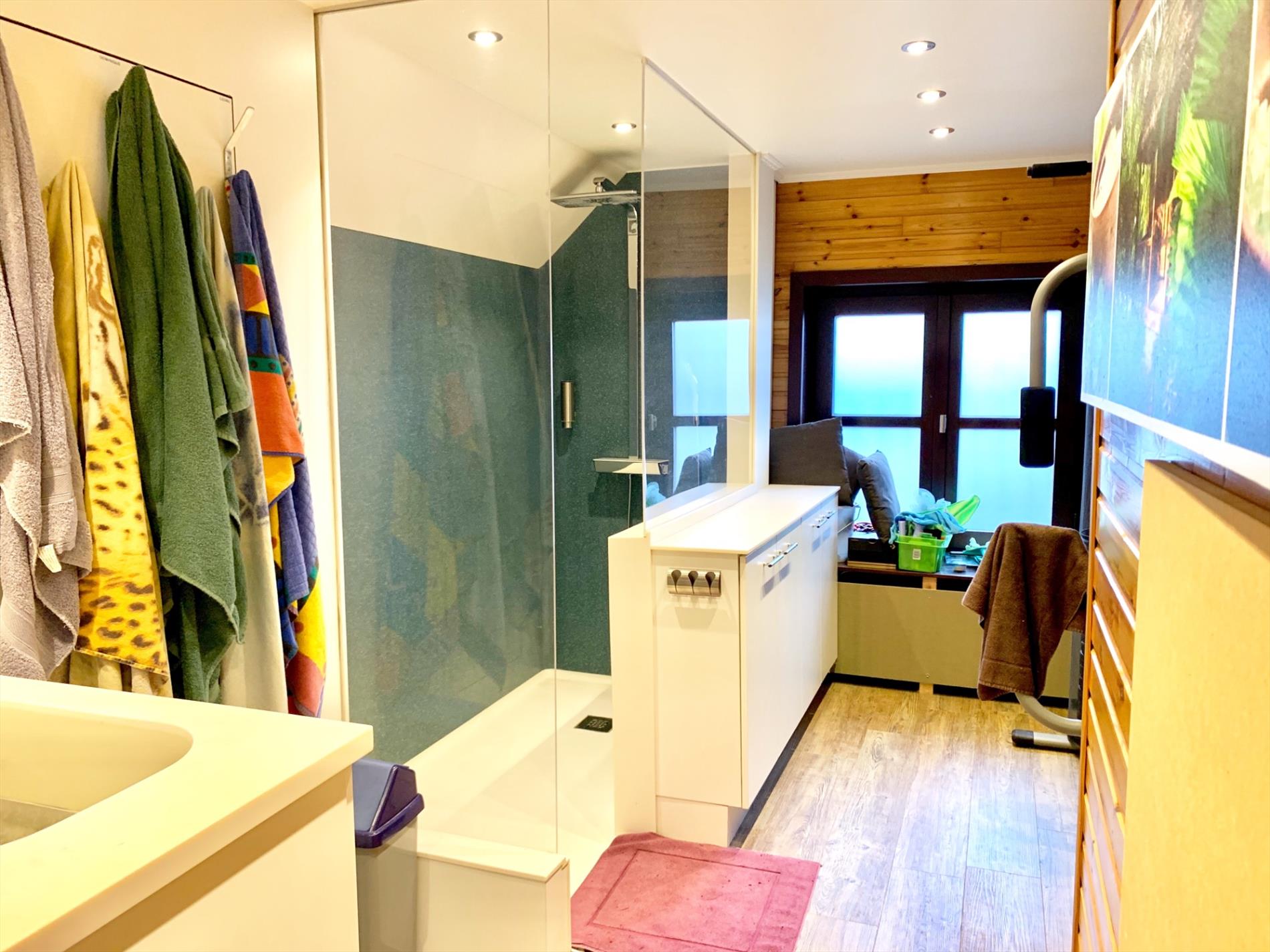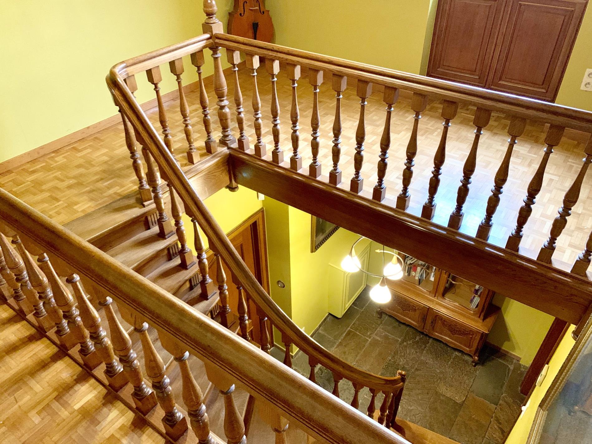 Op de bovenverdieping bevinden zich de badkamer met dubbel lavabomeubel en een massagebad voor 2 personen en 5 slaapkamers. De eerste 4 zijn allemaal voorzien van ingemaakte kasten en bureau’s. De 5de slaapkamer is meer een afgewerkte studio met aparte badkamer met inloopdouche en lavabo, sauna en relaxruimte. Kleine zolder.