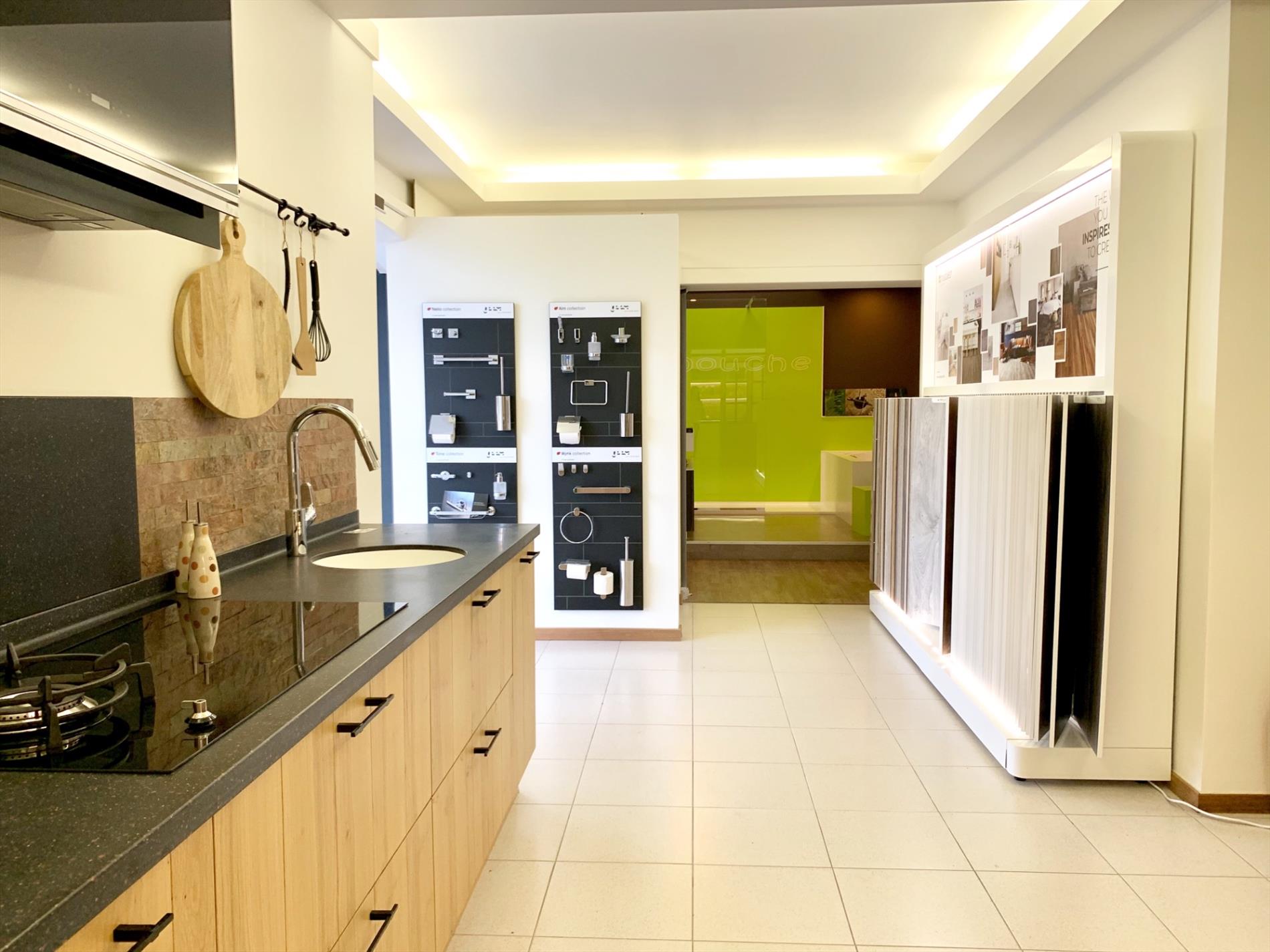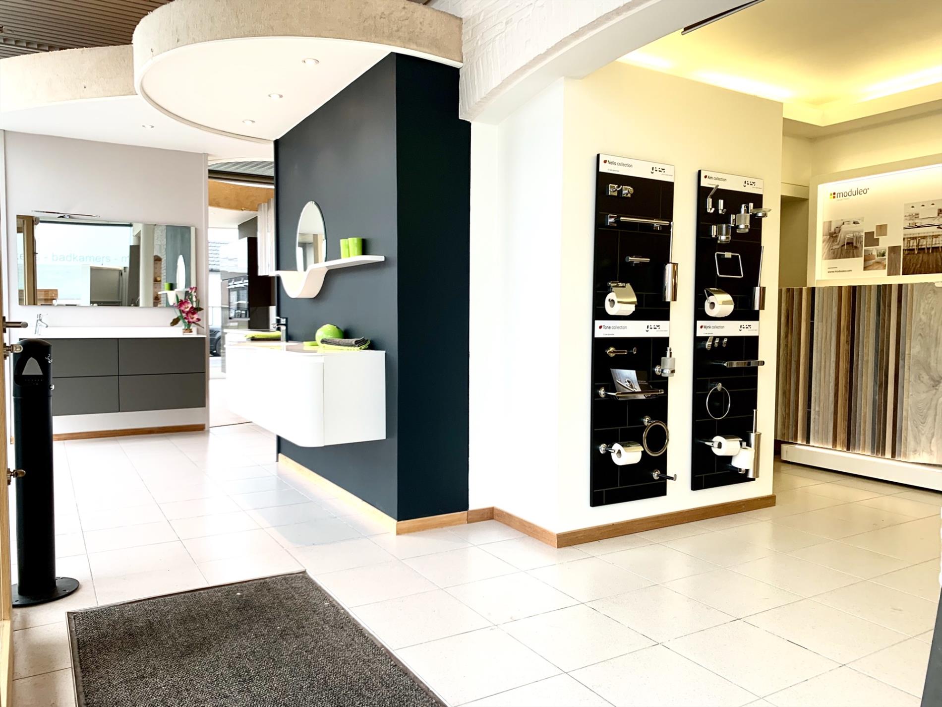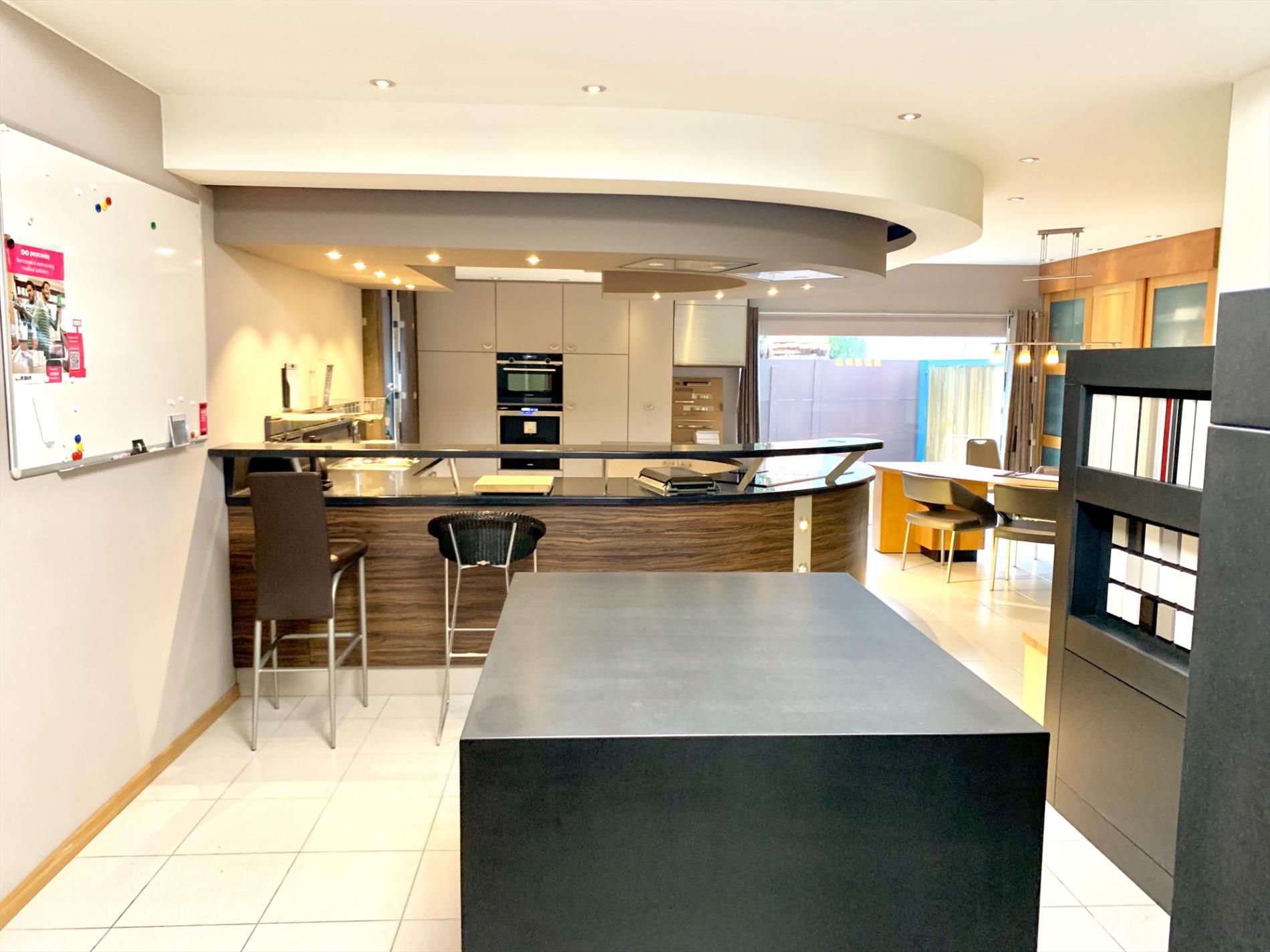 De villa (bew opp 560m2) is zeer praktisch ingericht. Momenteel is de ingang langs de zijkant, maar achter de showroom zit nog steeds de voorgevel-&deur.