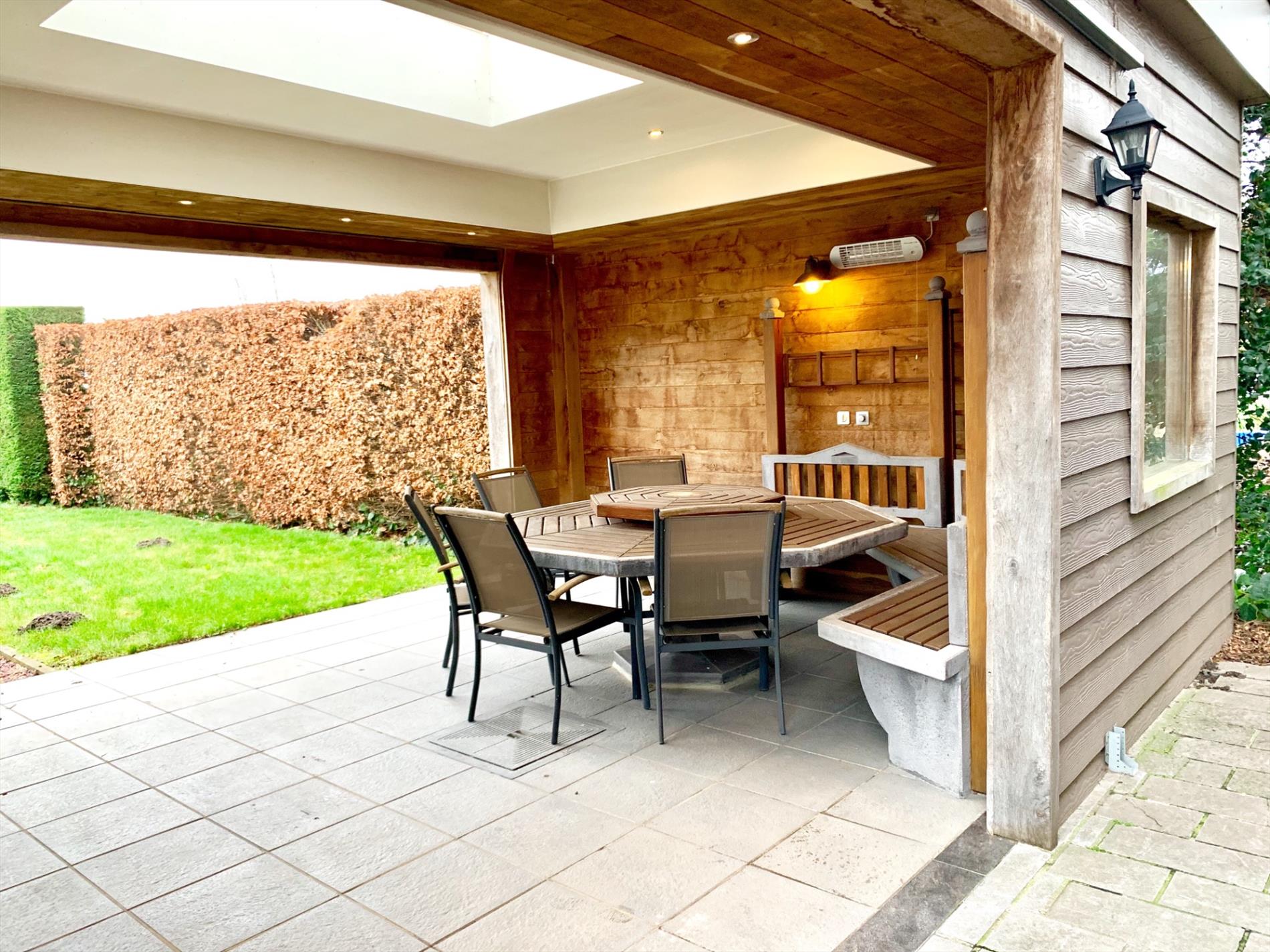De tuin ligt tussen de prachtige lounge en de tuinberging/serre.