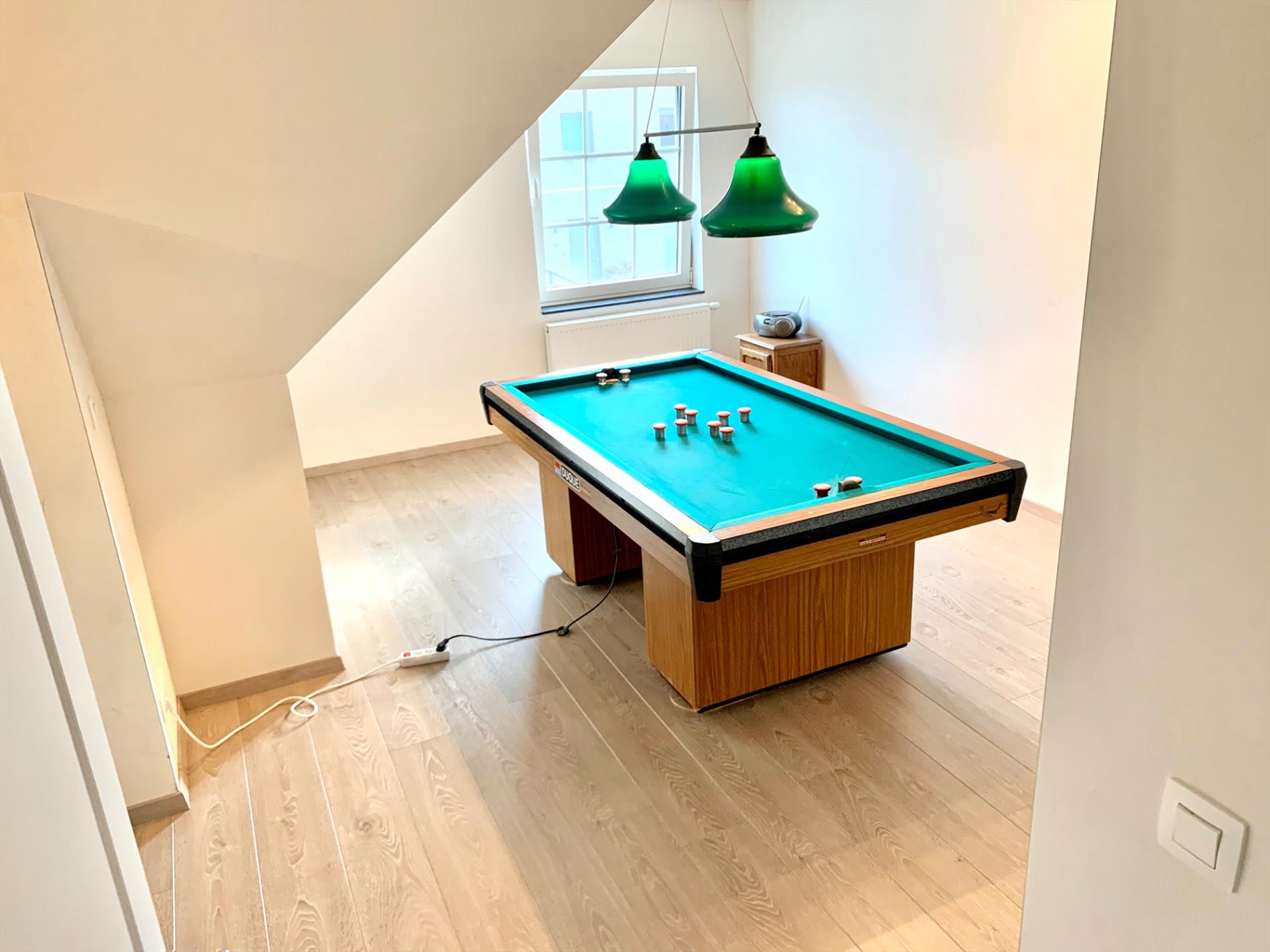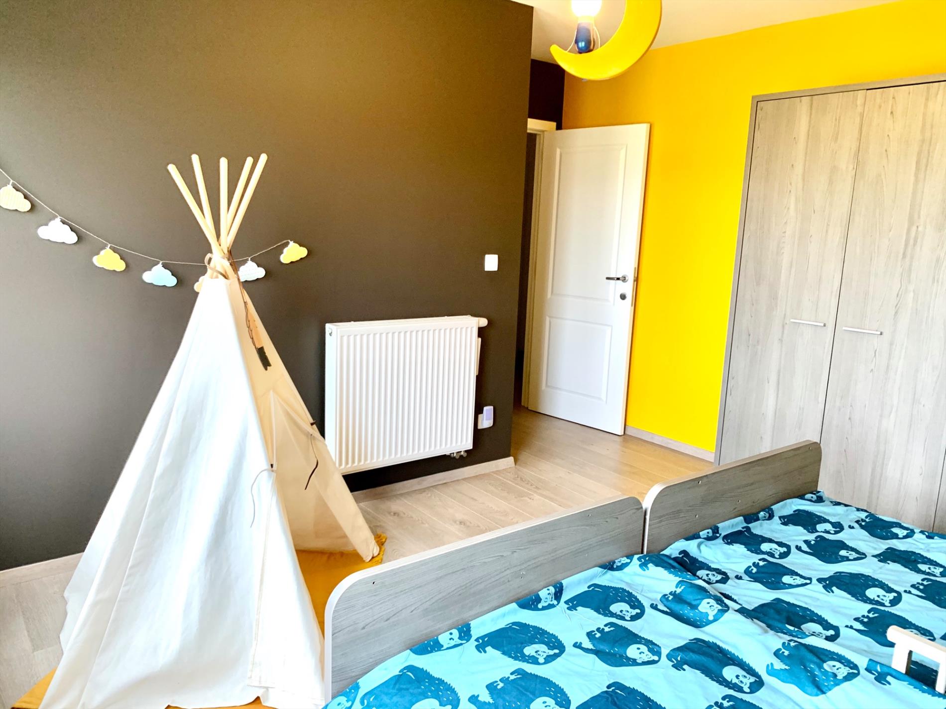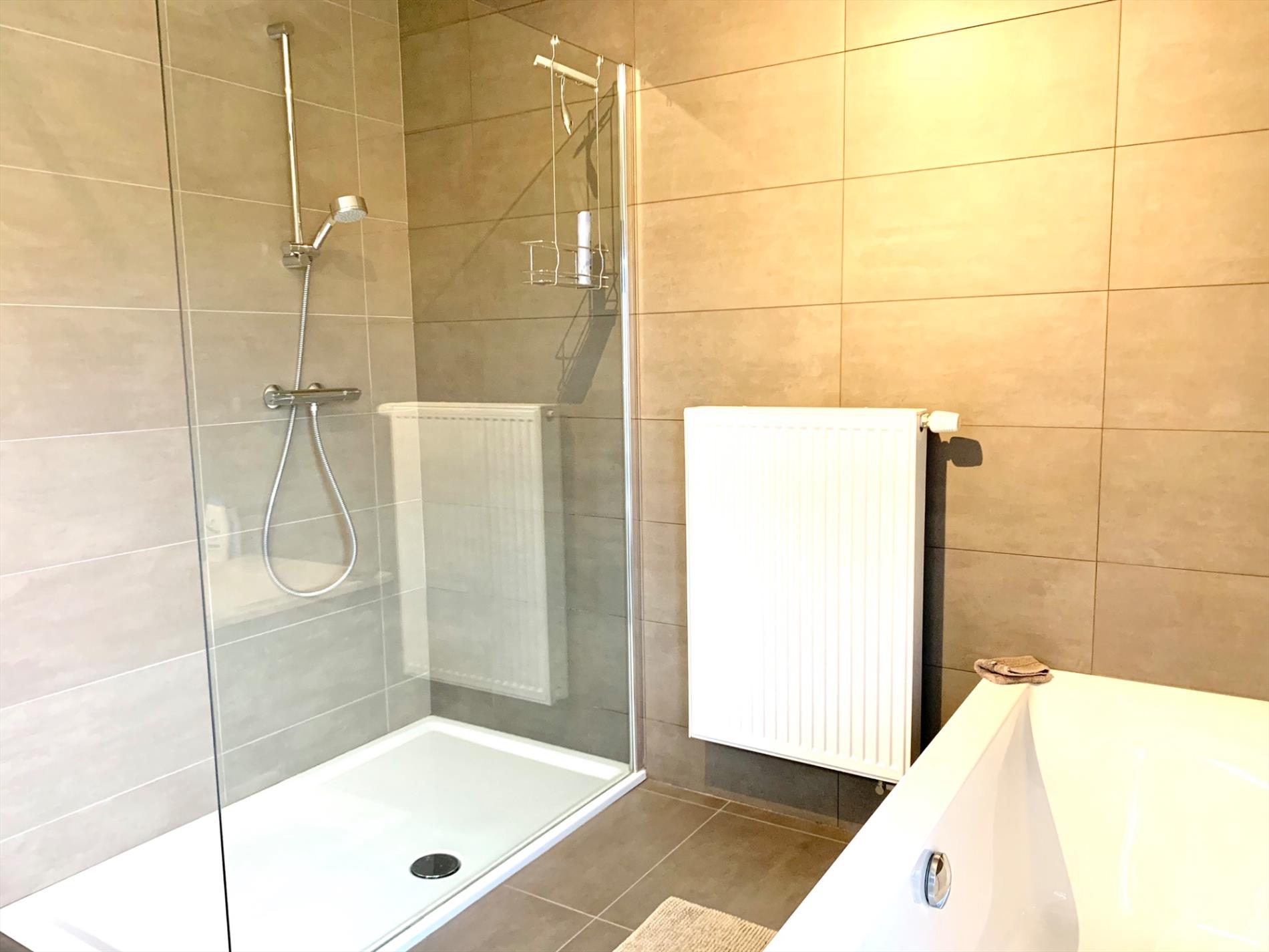 Op de eerste verdieping zijn 3 zeer ruime slaapkamers (waarvan 1 met speelruimte/dressing) , een moderne, strakke badkamer met inloopdouche, ligbad en dubbel lavabomeubel met kolomkast. De aparte dressingroom is voorzien van inbouwkasten, deze ruimte kan ook dienen om een vaste trap te plaatsen naar de enorme, perfect geïsoleerde zolder waar u ook nog 1of 2 slaapkamers kan creëren.
